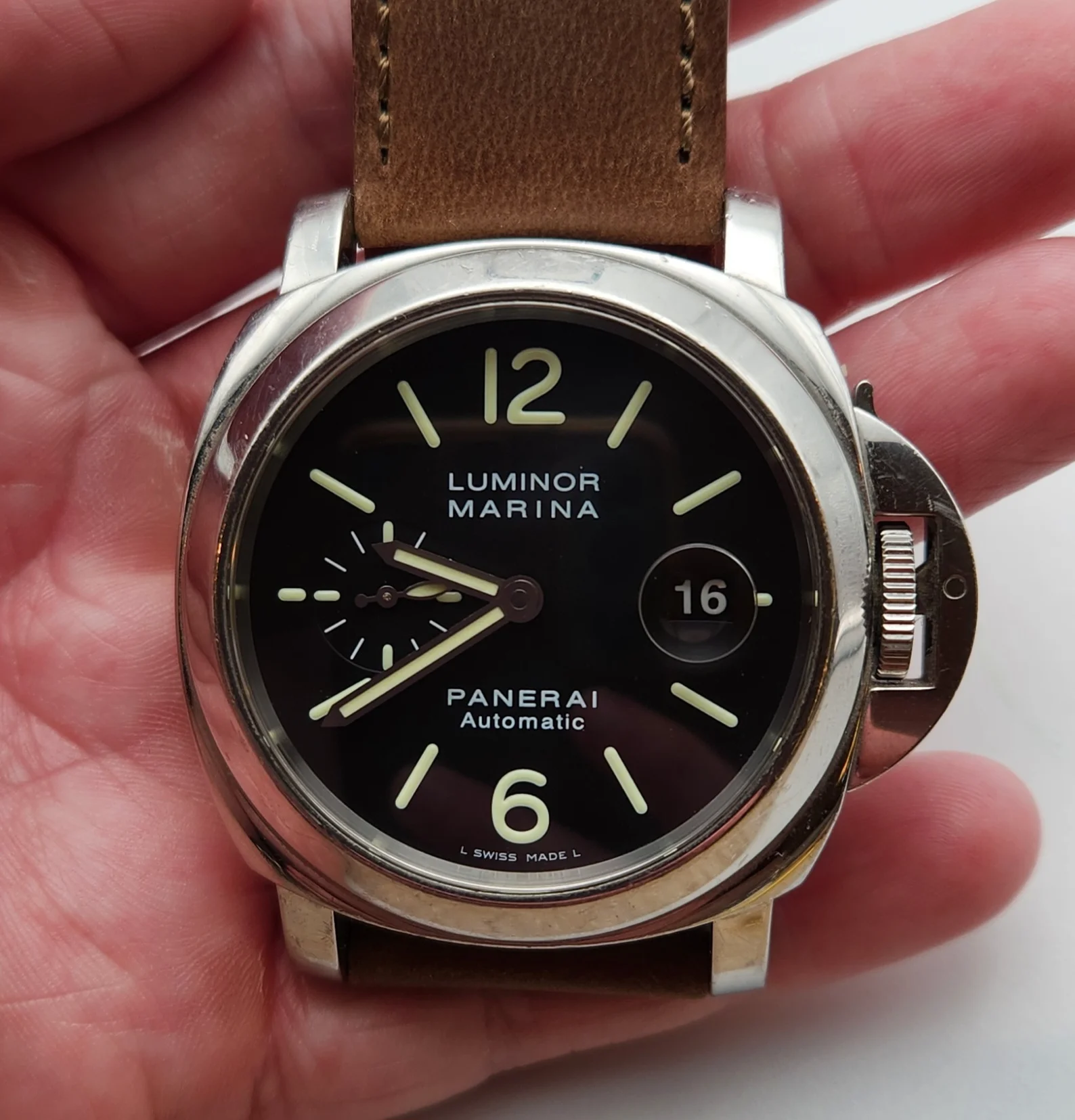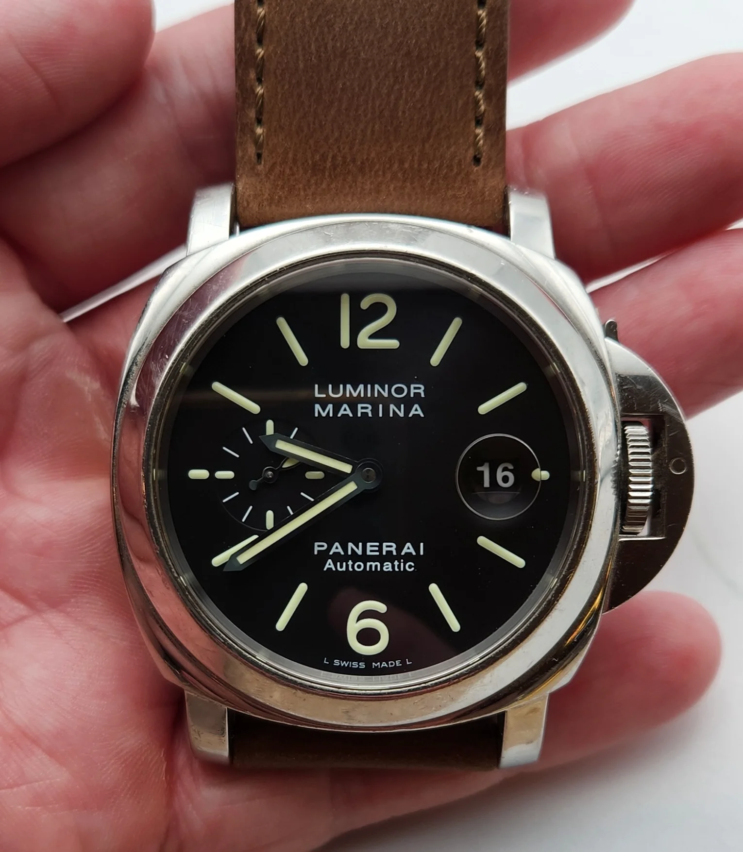 Here's what I know about it, its a 2007 OP 6693 PAM104, 44mm diameter. Here's another online https://everywatch.com/panerai/luminor-marina-automatic/op6693/watch-2433071 Heres another with good photos https://shop.hodinkee.com/products/...CPQ3dCCI3qKSxq9WNoghHD51F1x0XAKta9oJK7QRlVWPQ