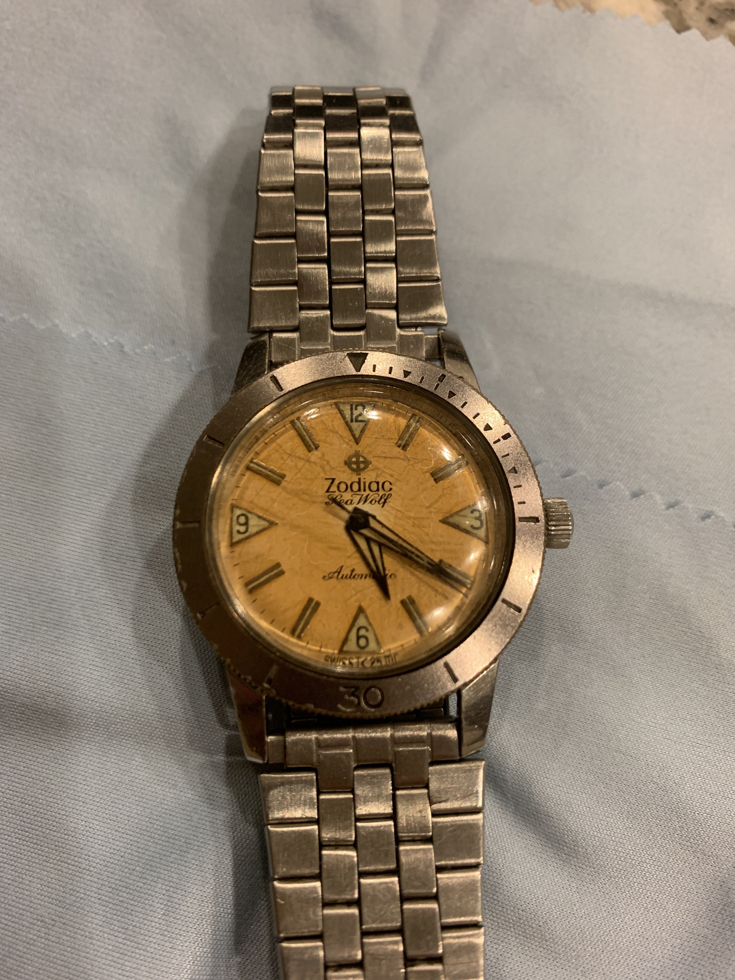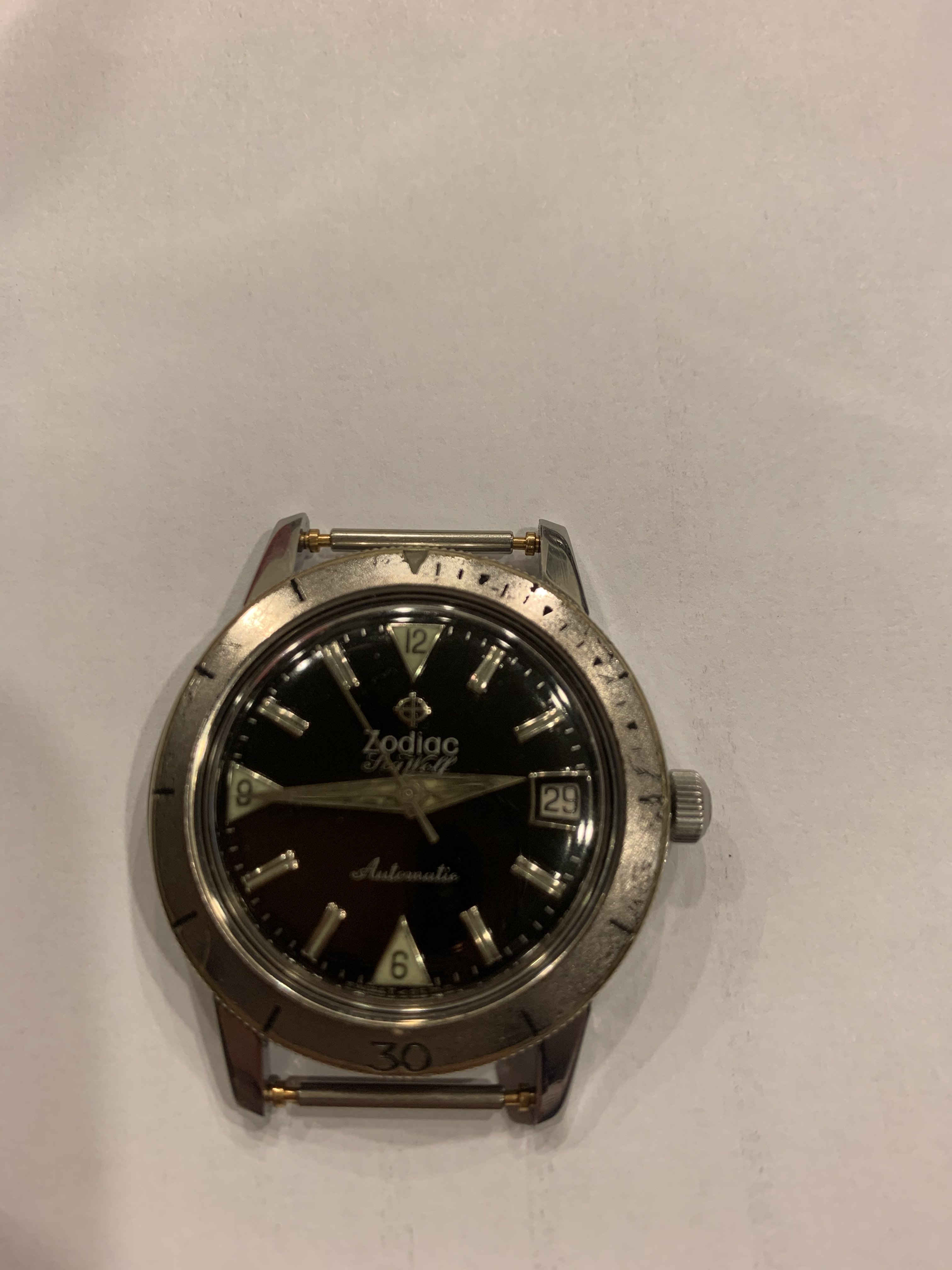 A skilled watchmaker can clean up the dial and hands, even the moldy lume. My white one was pretty dusky on the lume and a small section on the hour hand was missing, but a proper clean-up got most of the funk off the dial and lume plots and the compromised hand was filled and stabilized.