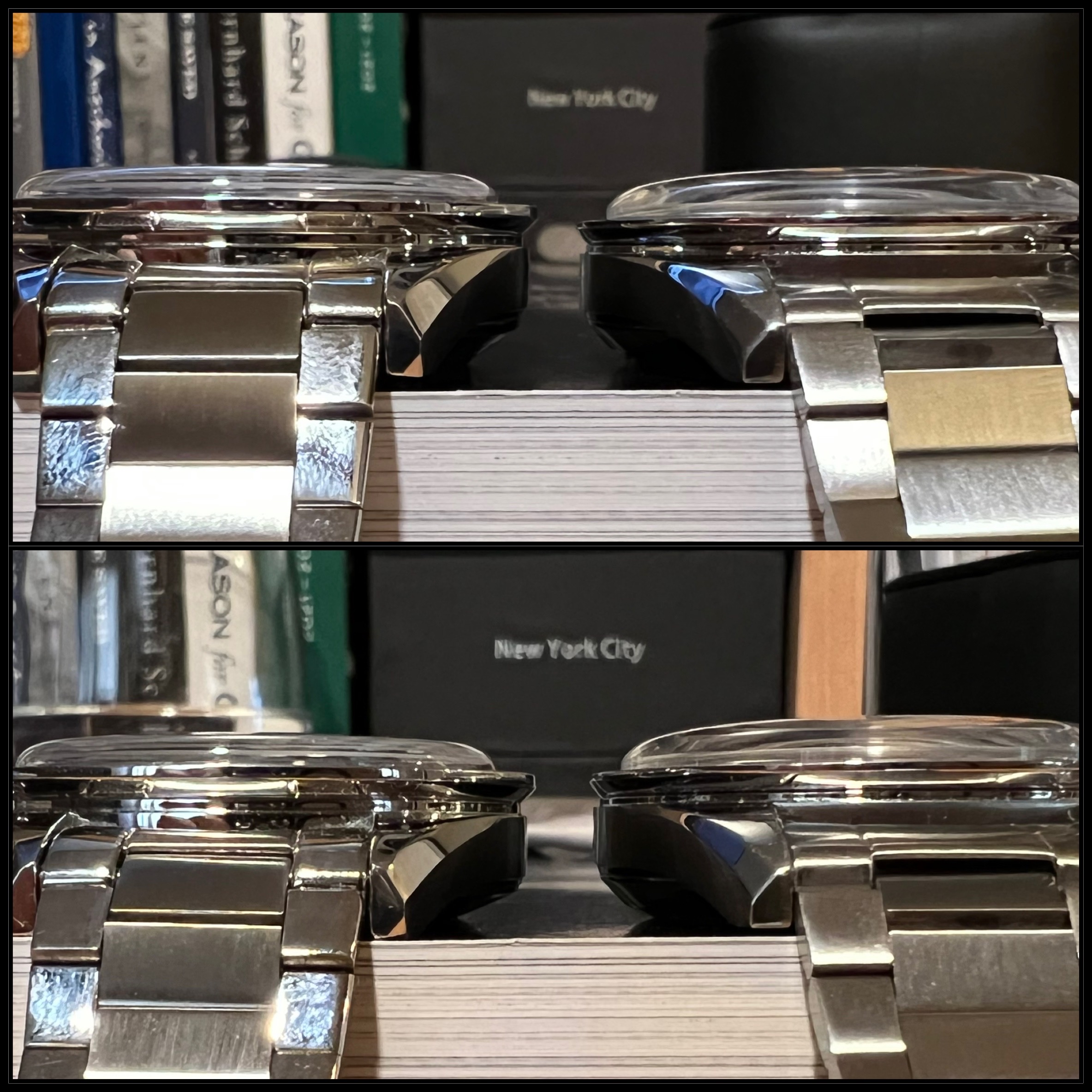Overall, I do really like this version two caseback. I like the design of it and it feels like it belongs on the Speedy. The design of Thomas Priek caseback stands out a bit. The slimness of this back is noticeable on the wrist. It is definitely very low profile. I am happy with the purchase. Still, I think I prefer Thomas Priek's a little more. His feels more robust. Anyways, here are some photos comparing the two...