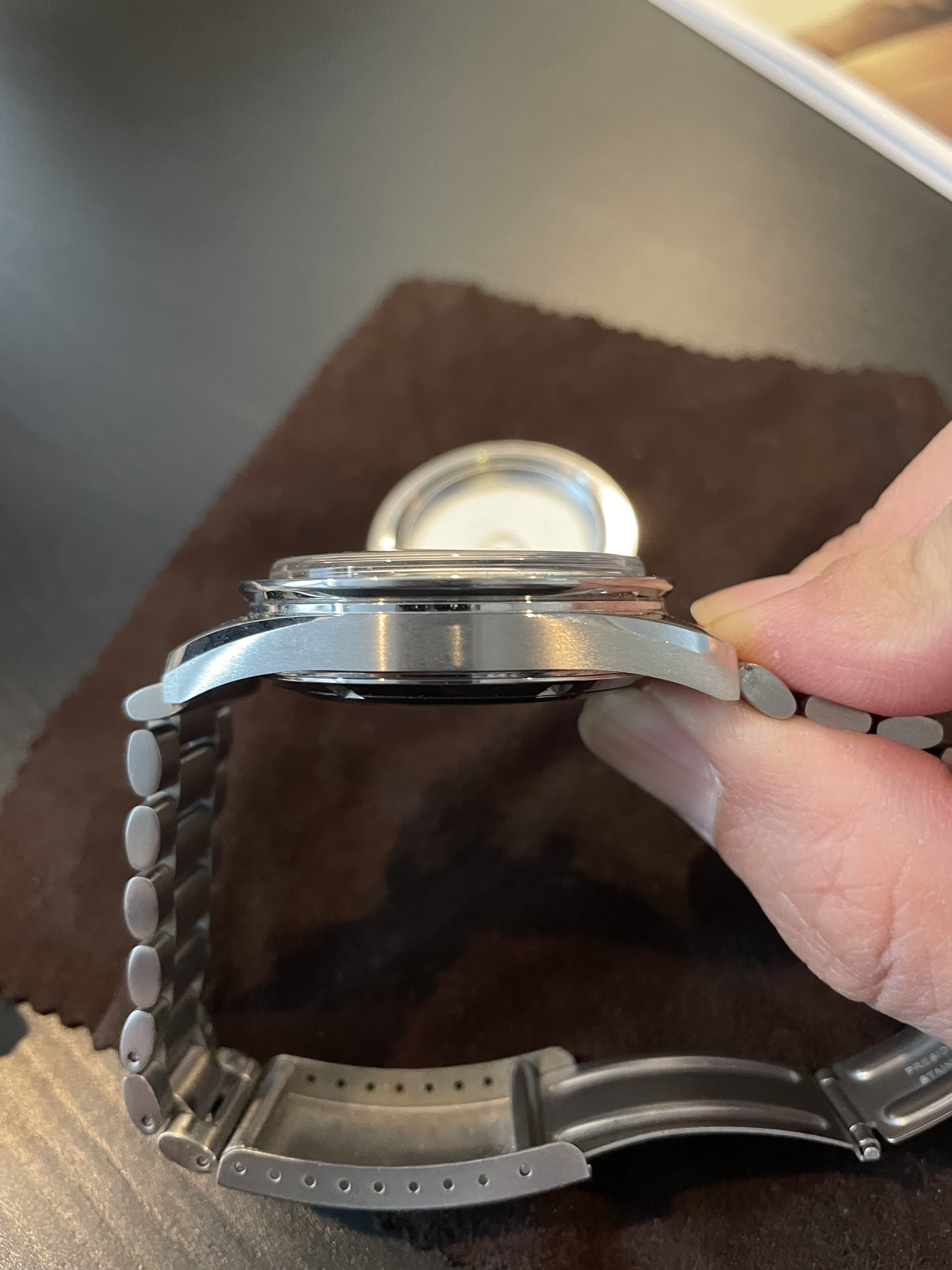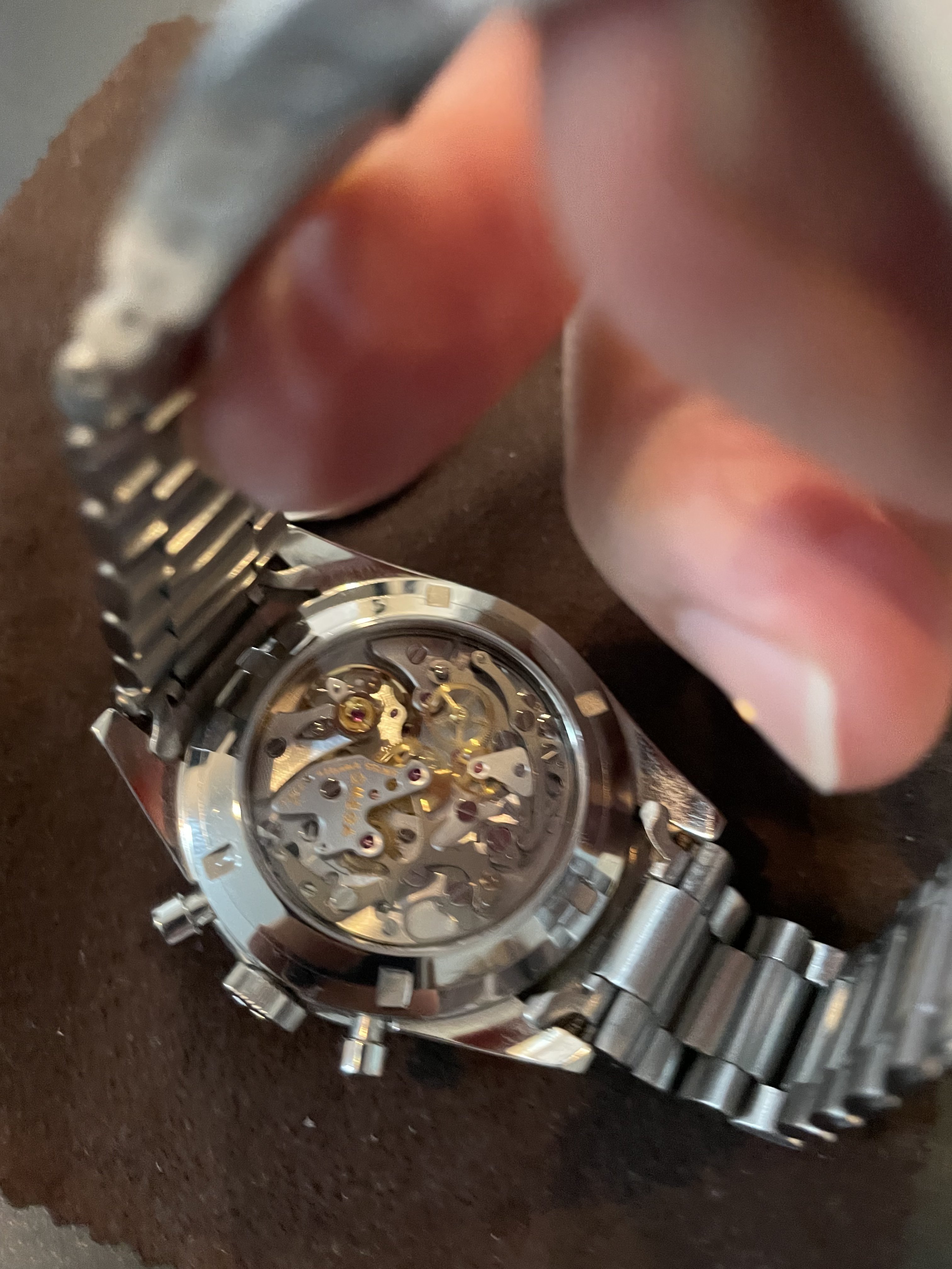 Overall, I do really like this version two caseback. I like the design of it and it feels like it belongs on the Speedy. The design of Thomas Priek caseback stands out a bit. The slimness of this back is noticeable on the wrist. It is definitely very low profile. I am happy with the purchase. Still, I think I prefer Thomas Priek's a little more. His feels more robust. Anyways, here are some photos comparing the two...