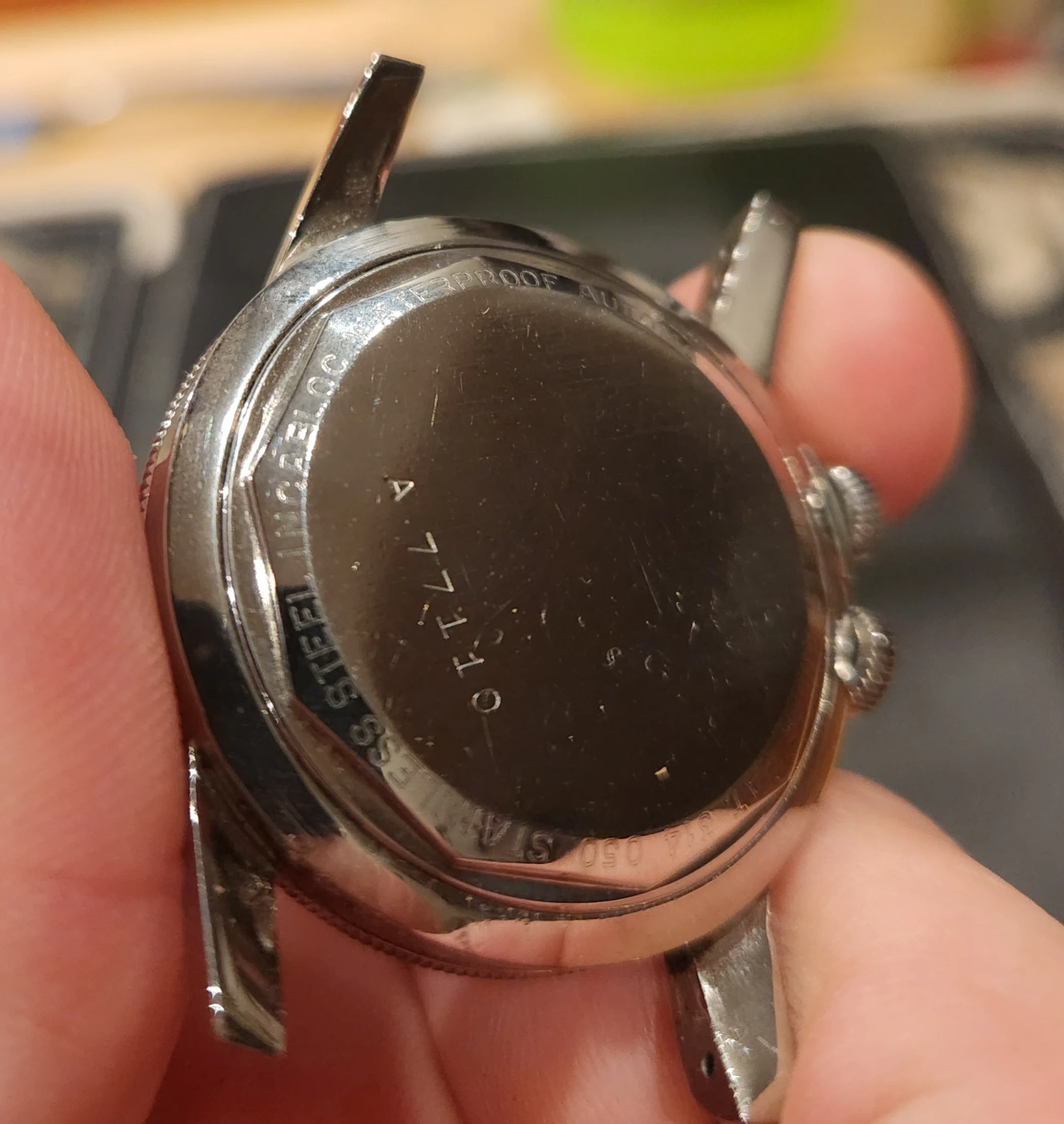 Some notable differences from later models include a screw down caseback, unmarked crowns, a seconds hand with no lume, arrow 12 and 24 hour markers, radium, a silver date frame, red date, Felsa 692 movement, and a small dot under each hour on the bezel.