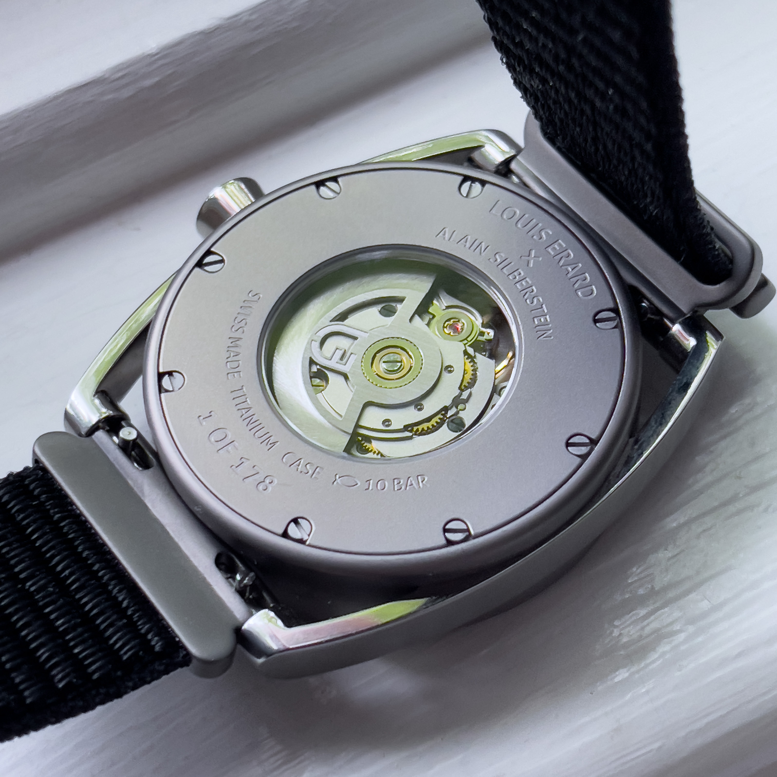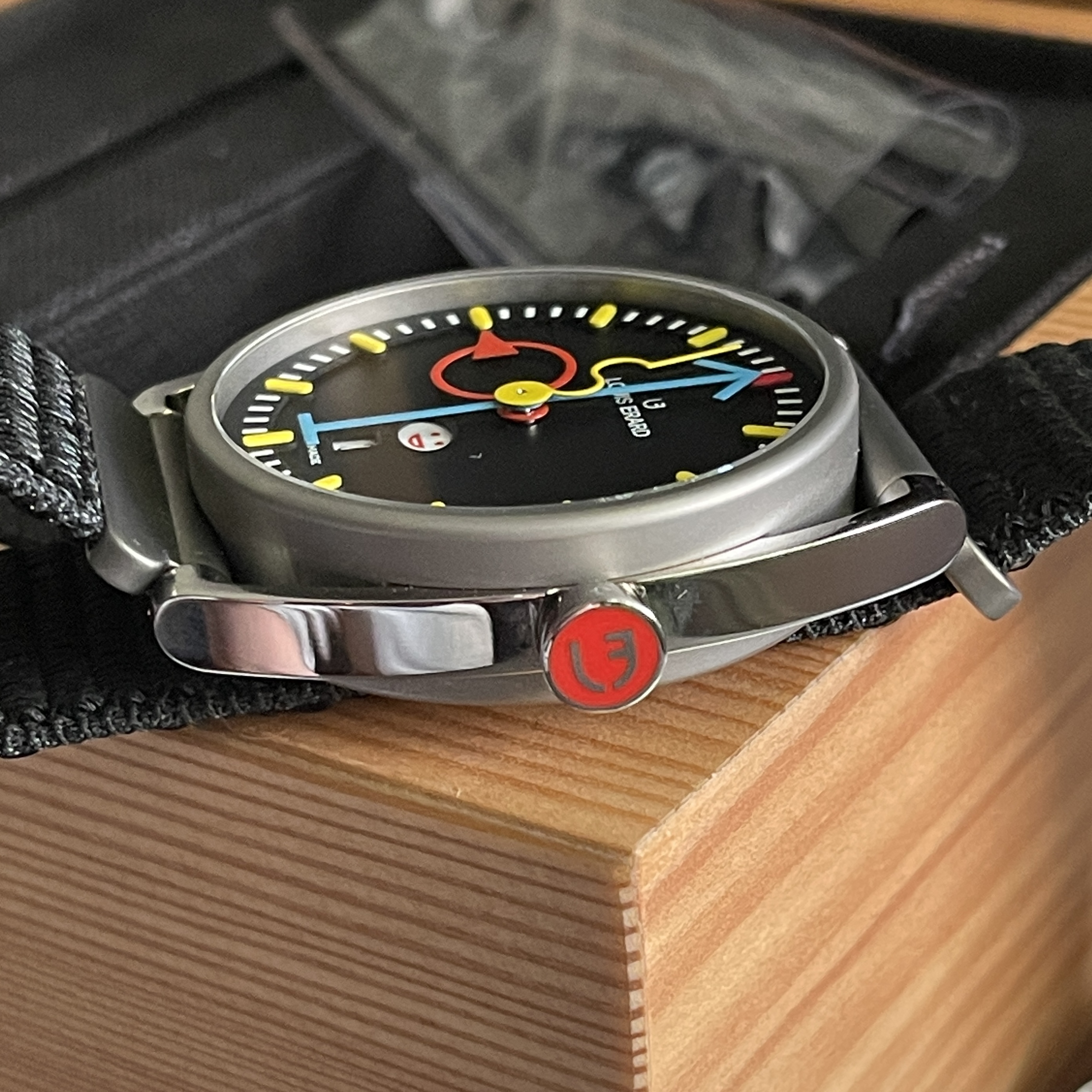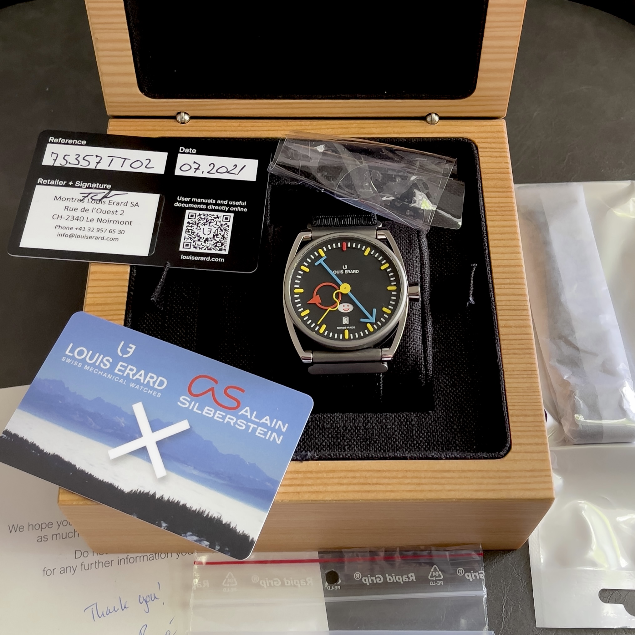 The watch comes with the box and all documentation from Louis Erard and is covered by the remainder of a three year warranty. Also included in the sale is an extra OEM quick-release strap and a spare OEM crystal, which I purchased at the same time as the watch.