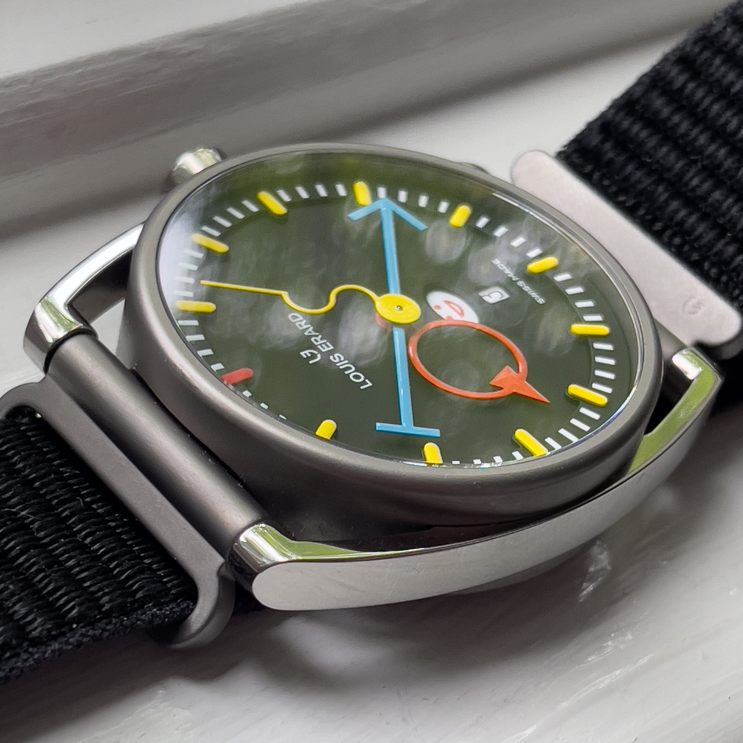 ·Up for sale is the La Semaine, a result of a recent collaboration between Bauhaus-inspired architect and watch designer Alain Silberstein and the manufacturer Louis Erard. The official reference number is: 75357TT02.BTT88