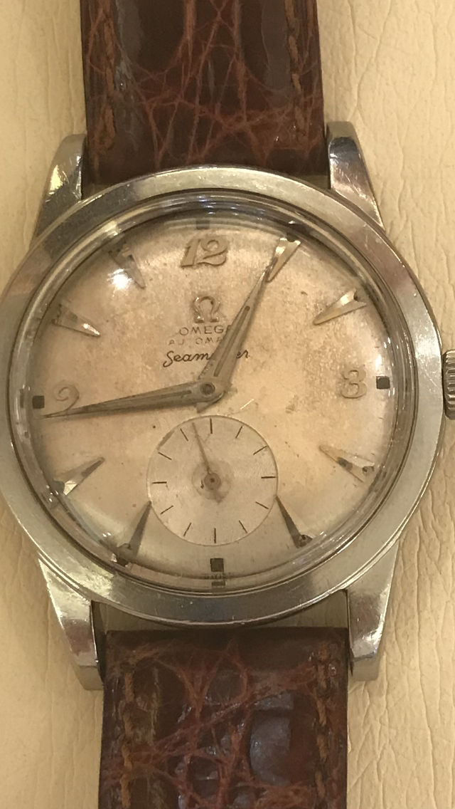 Look at this mid-1950's Seamaster Calendar I purchased a few years ago for about $400. It's not perfect, the case has a few dings, BUT - the dial is original. Yes it has some age, but I think it also gives it some character.