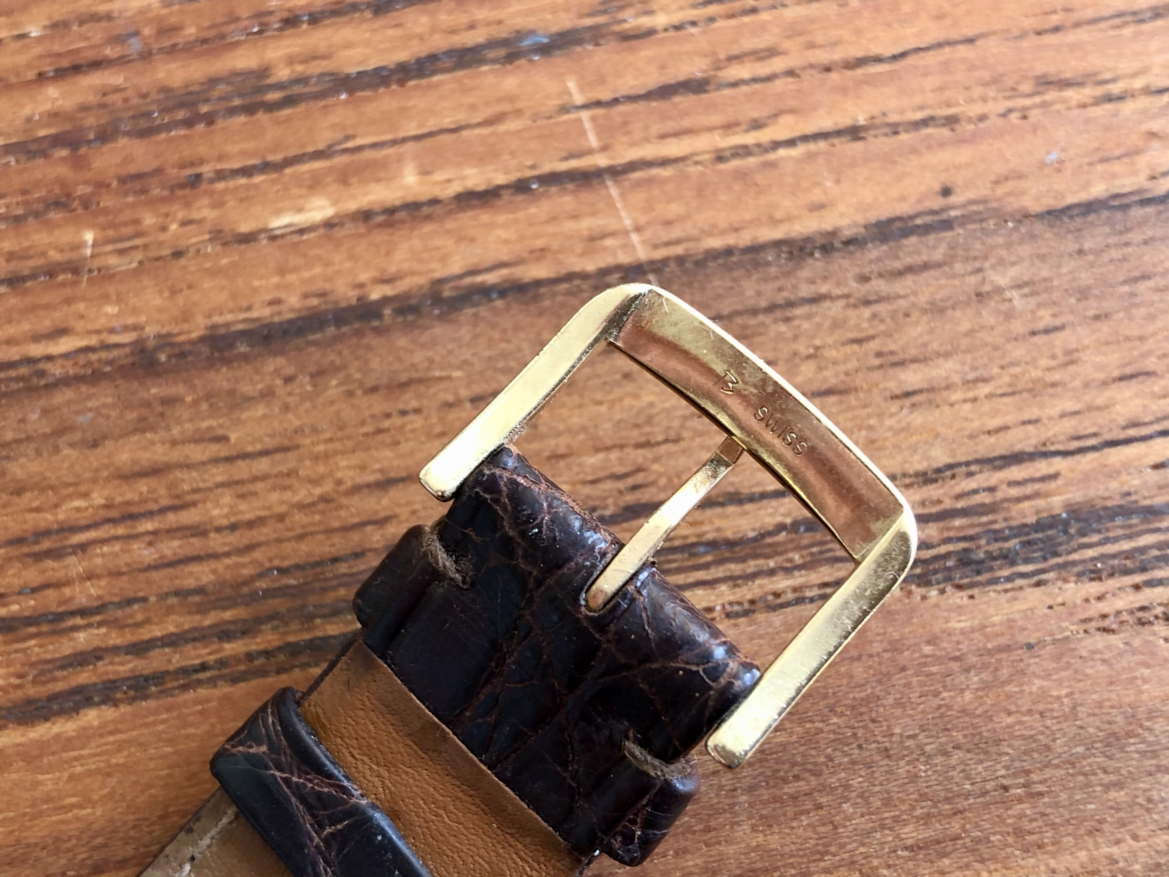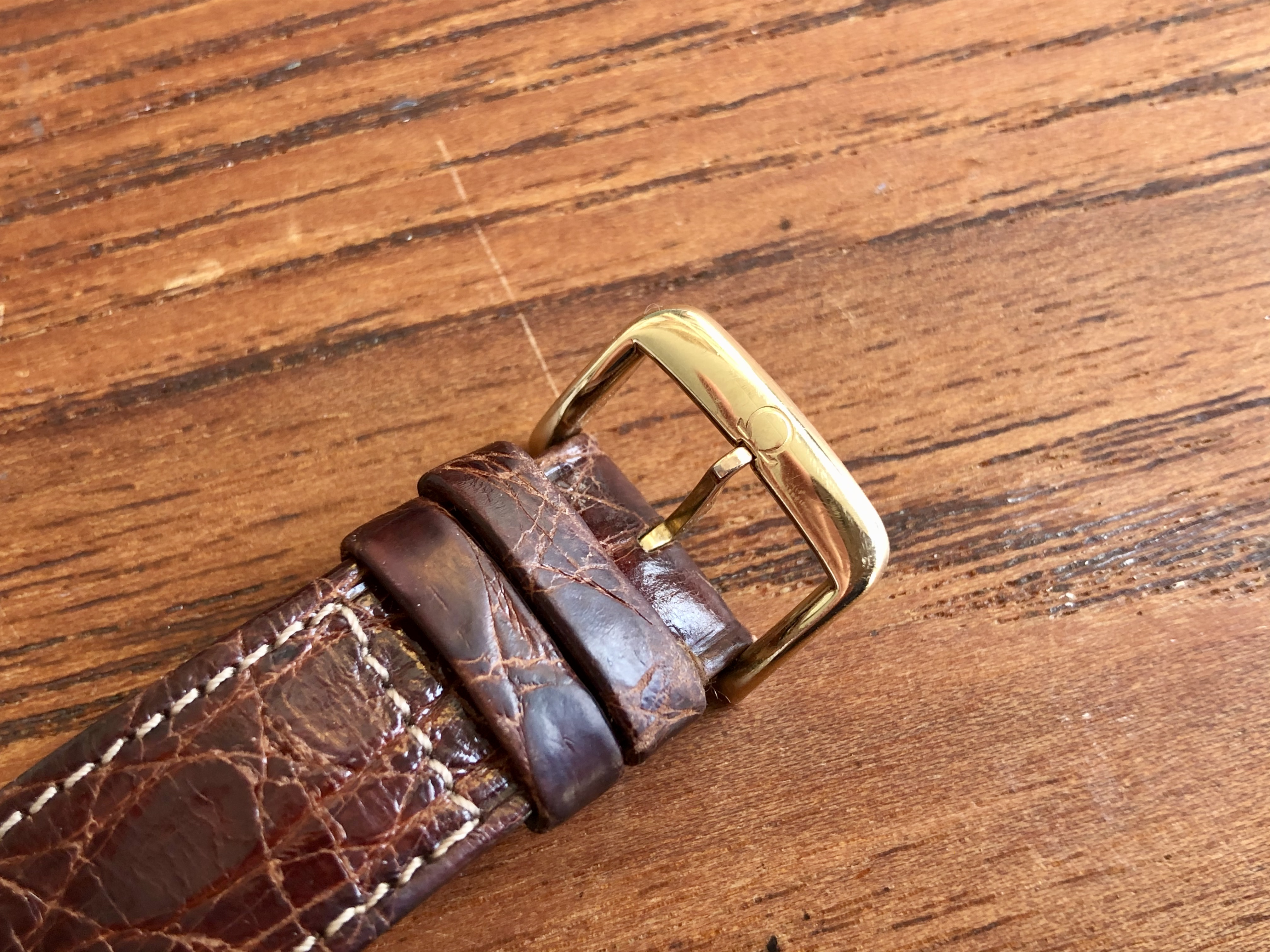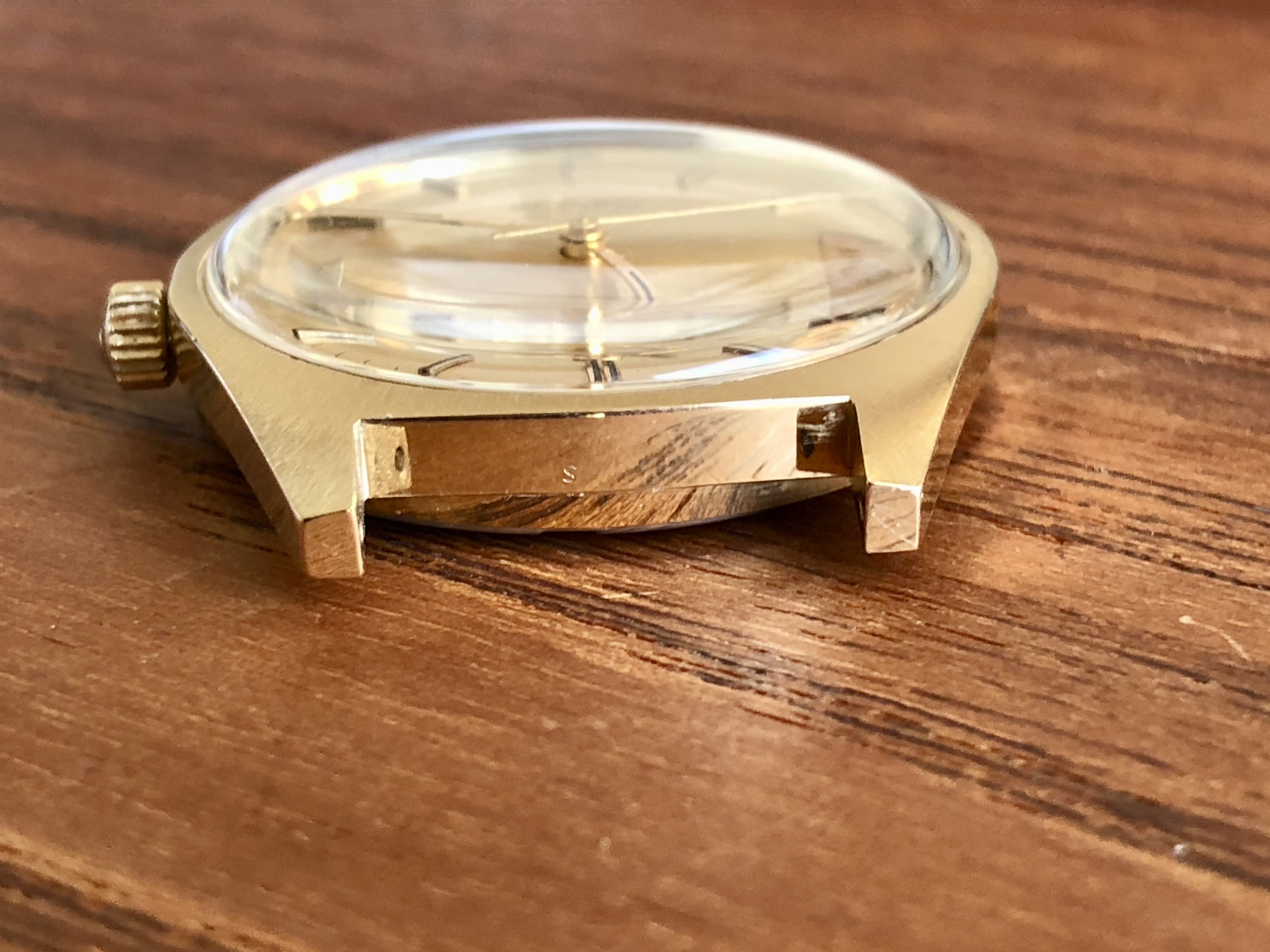 The watch is in great condition and features original Omega signed glass, crown, strap and buckle. The case is one of the sharpest gold plated cases I have ever seen and I almost dare calling it NOS. The sunburst finish on the front is clearly visible and the back cover is also unpolished.