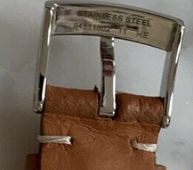 But what arrived this morning? Well, the strap was right (very nice, in fact) but the underside of the buckle just said "Stainless Steel" -- and centred, so not even in the same position as the genuine article.