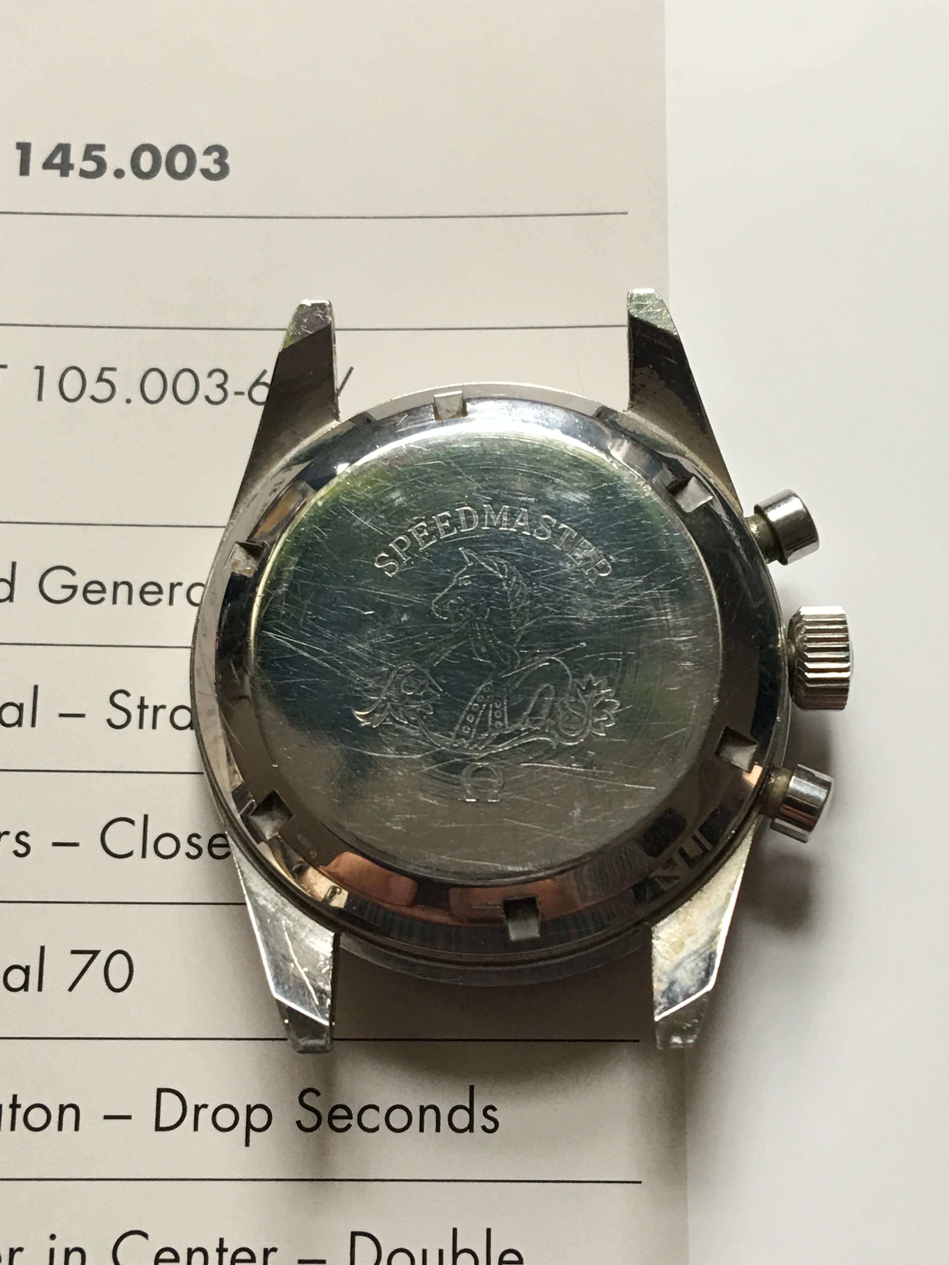 A 105.003-65, 24m serial. Turned out ok and the patina is just right for my liking, with just a subtle hint of brown around the subs (impossible to show in photos), pushers look original shape, replacement crown, but to my surprise I don't think the watch has seen a polishing wheel. The chamfers are soft but visible.