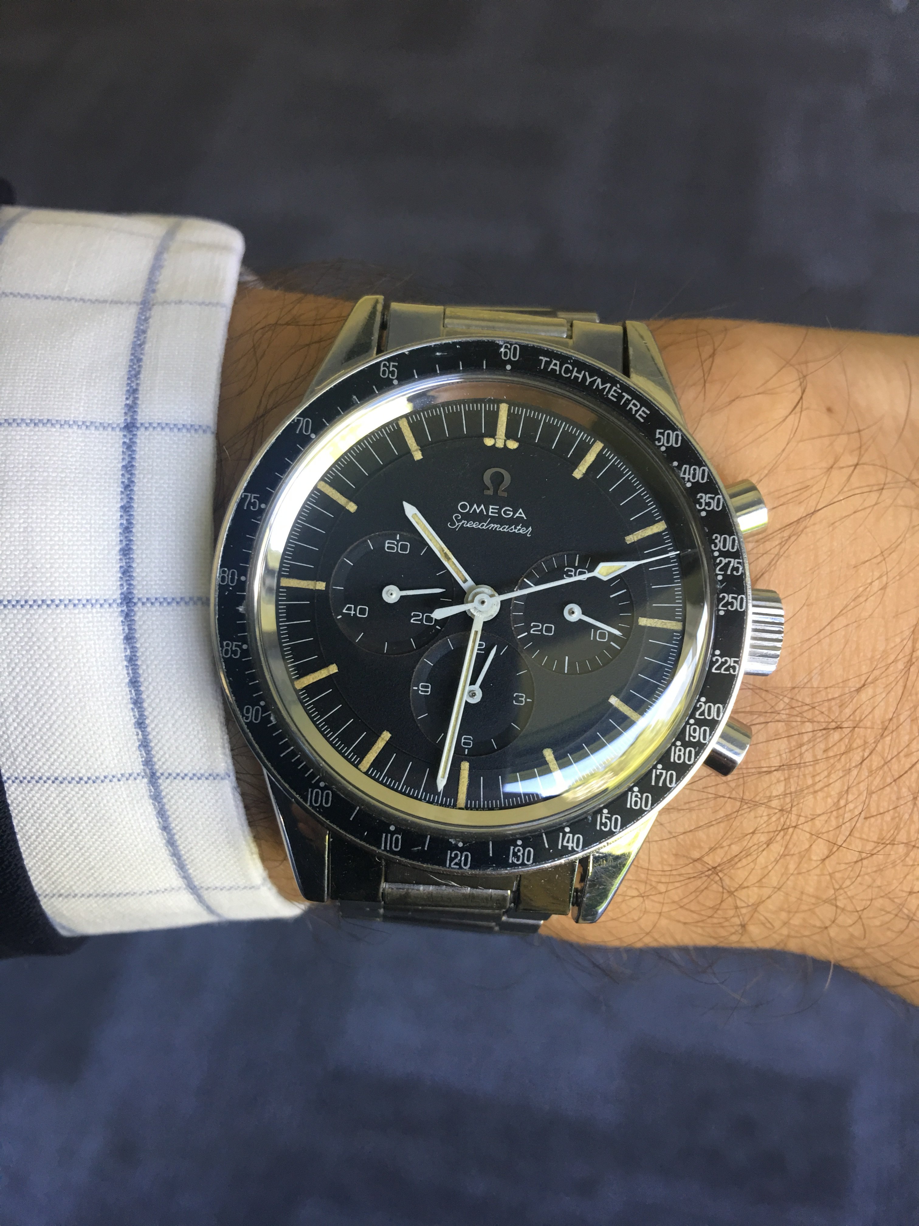 Just to follow up and conclude the thread, it arrived back to me yesterday. Couldn't be happier, there is something very special about these straight lug speedies. The size is PERFECT, and after a new Crystal there is a hint of brown to the dial in sunlight. Makes me love it even more! Thanks all for the combined knowledge shared here, without it I would never have had the confidence to buy this one. And mounted on my 1035/506.