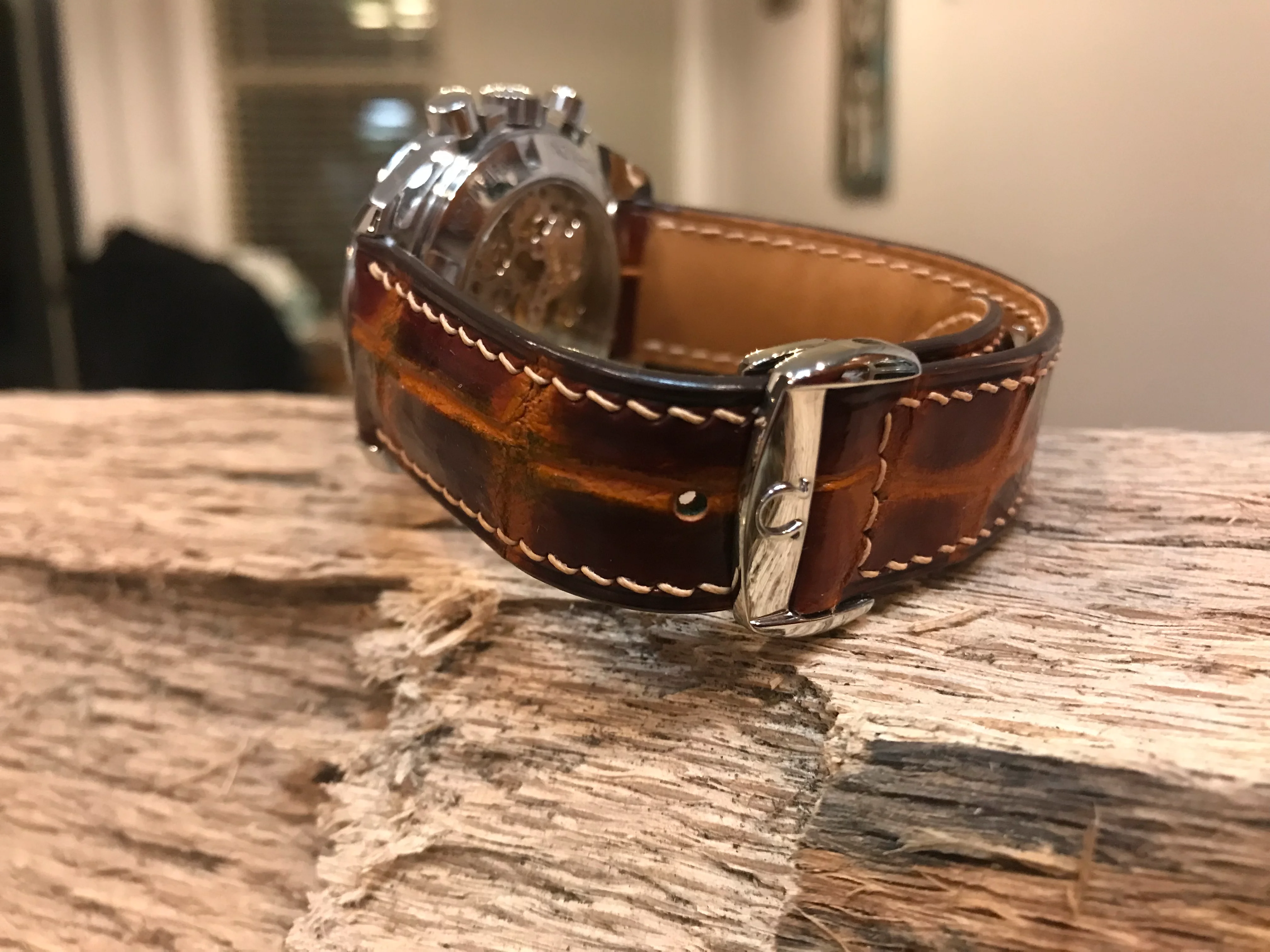 I bought this strap from my usual manufacturer. In the past, their alligator straps have been absolutely great and very durable. In this one, however, I’m trying to figure out what I see with possible splitting or is it just normal creasing? I’ve only worn the strap twice. Further down, I’m showing two other alligator straps from them that I’ve owed much longer and they seem to be more durable.