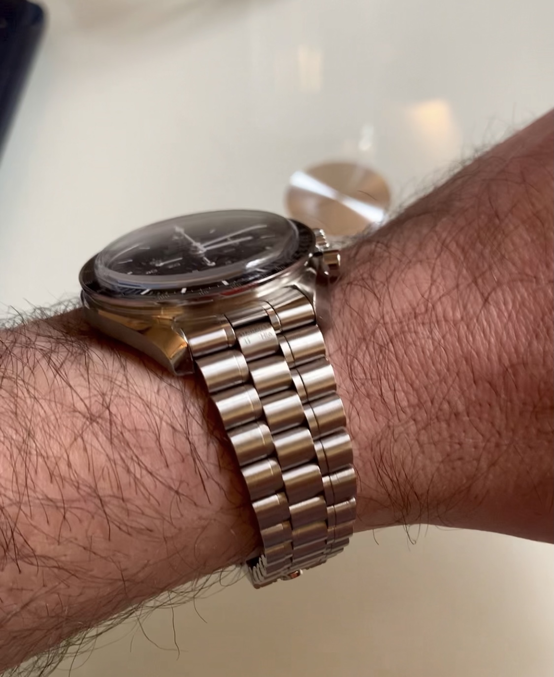 ·The bracelet of the new version of the sapphire moonwatch has polished small center links on external side ... but brushed on internal side.