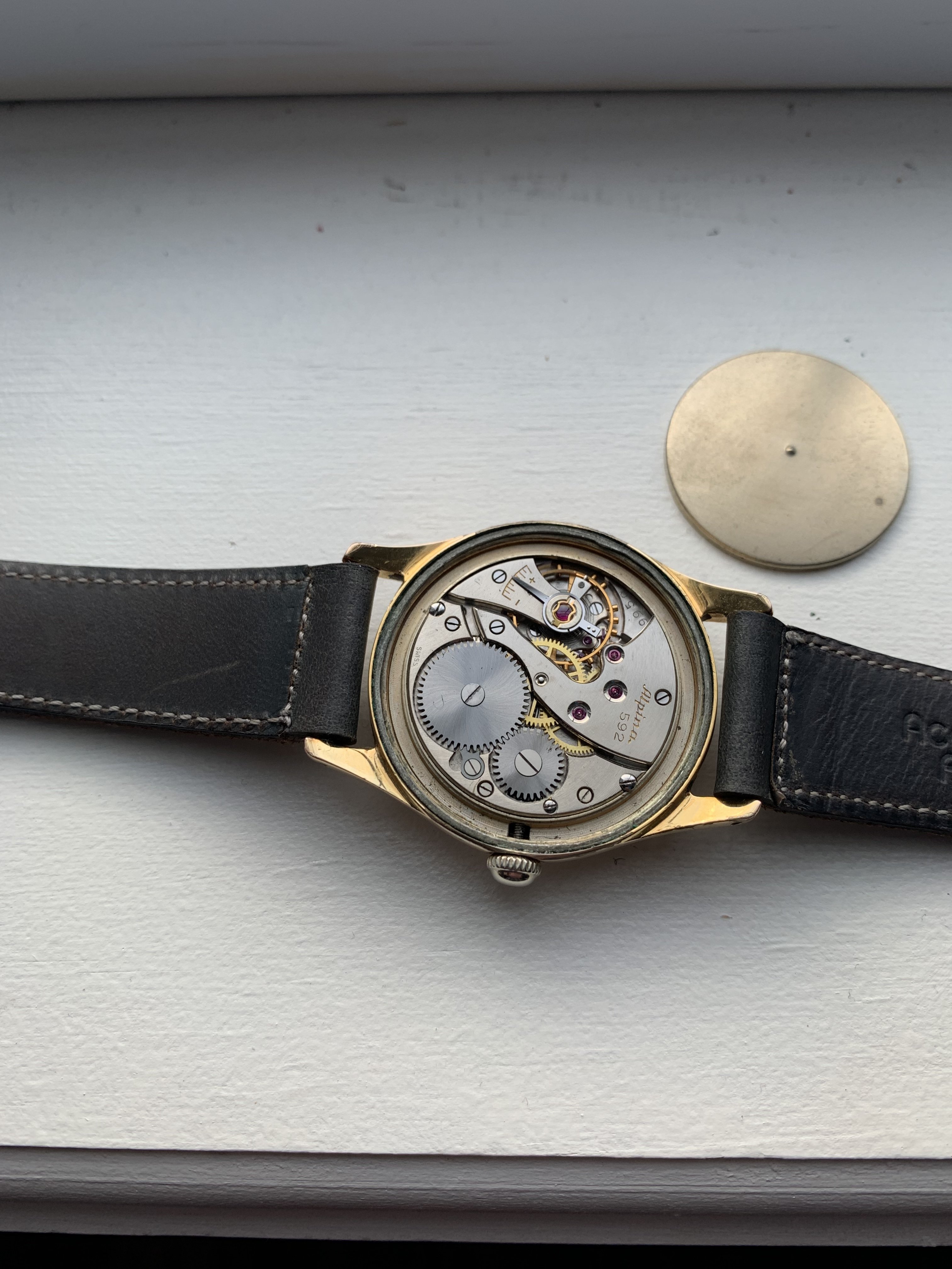 -Movement 592. No service history. Service is recommended for daily use. Keeps excellent time.