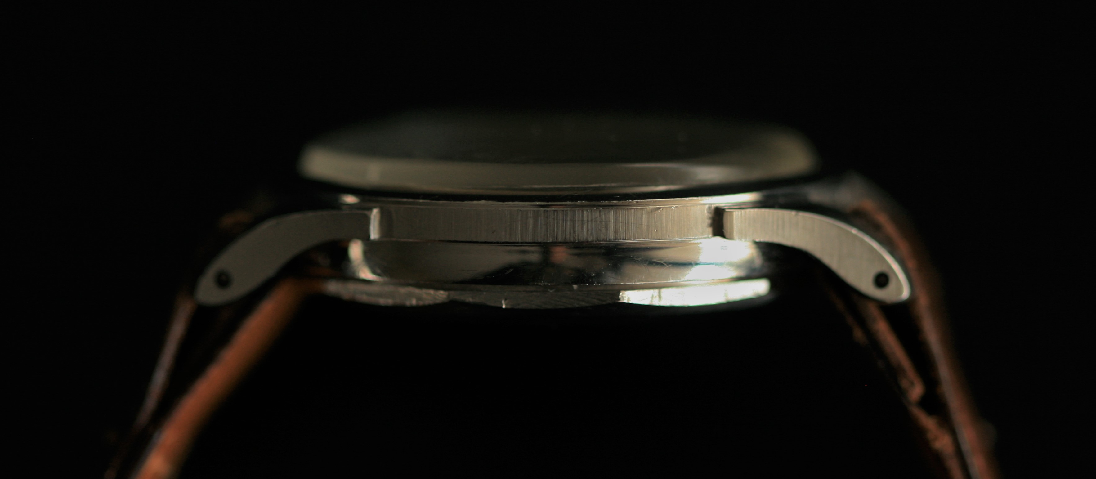 The waterproof steel case is manufactured by Taubert/Borgel and remains in great shape with the original vertical brushing still evident on the mid case sides. It has a distinctive ten sided screw back. I find the overall look very Omegaesque in its design.