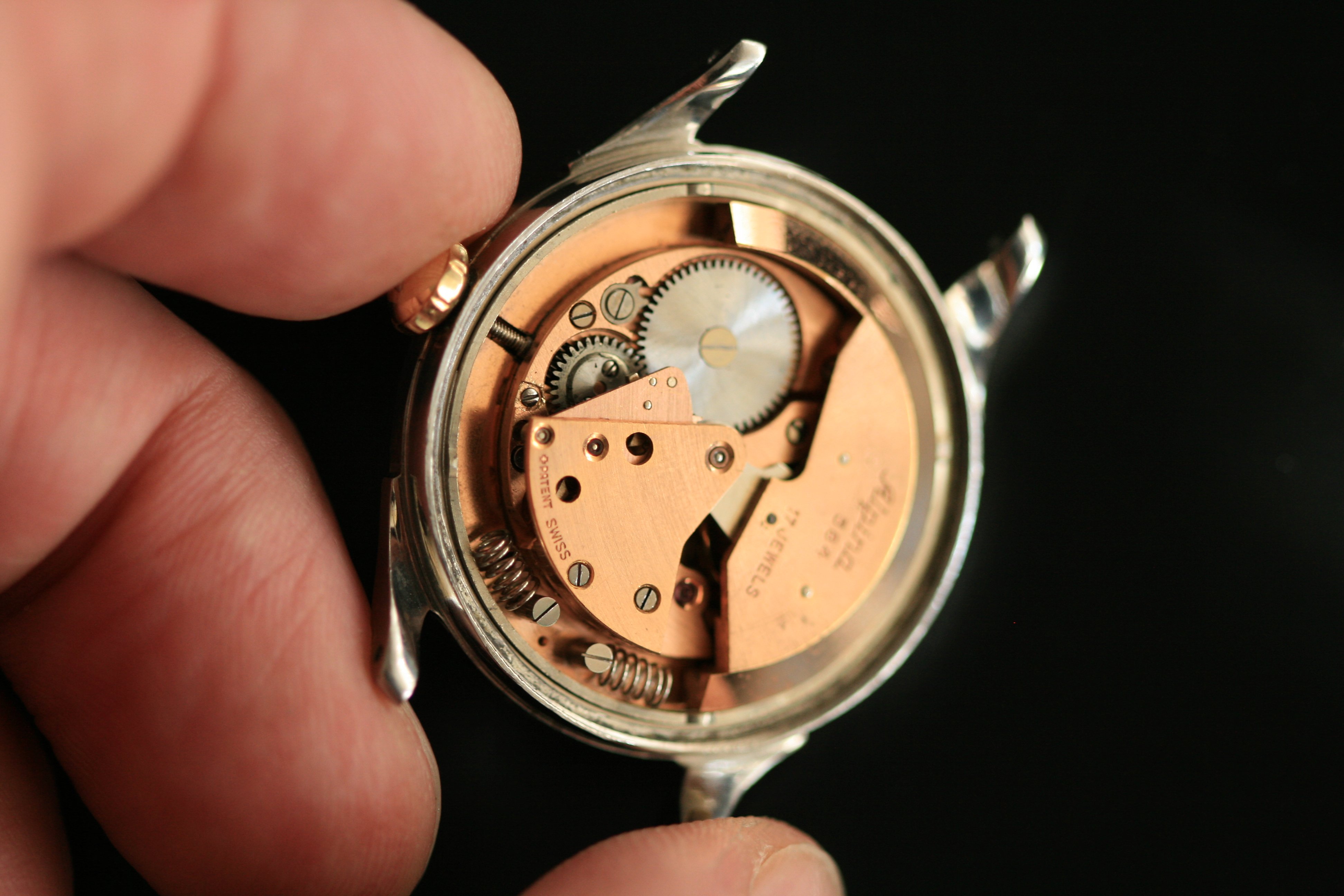 The bumper automatic calibre 584 is an attractive movement with its exposed springs. It is keeping decent time but I have no maintenance history for it and would recommend a service as the crown also slips a little when winding and setting.