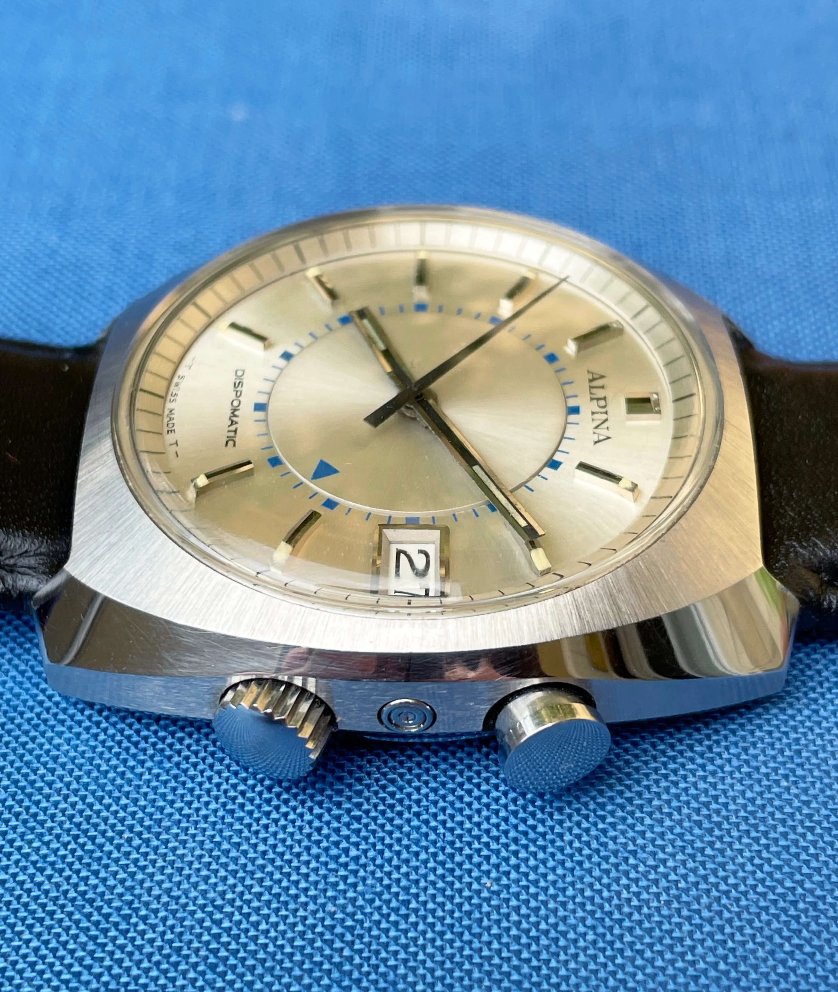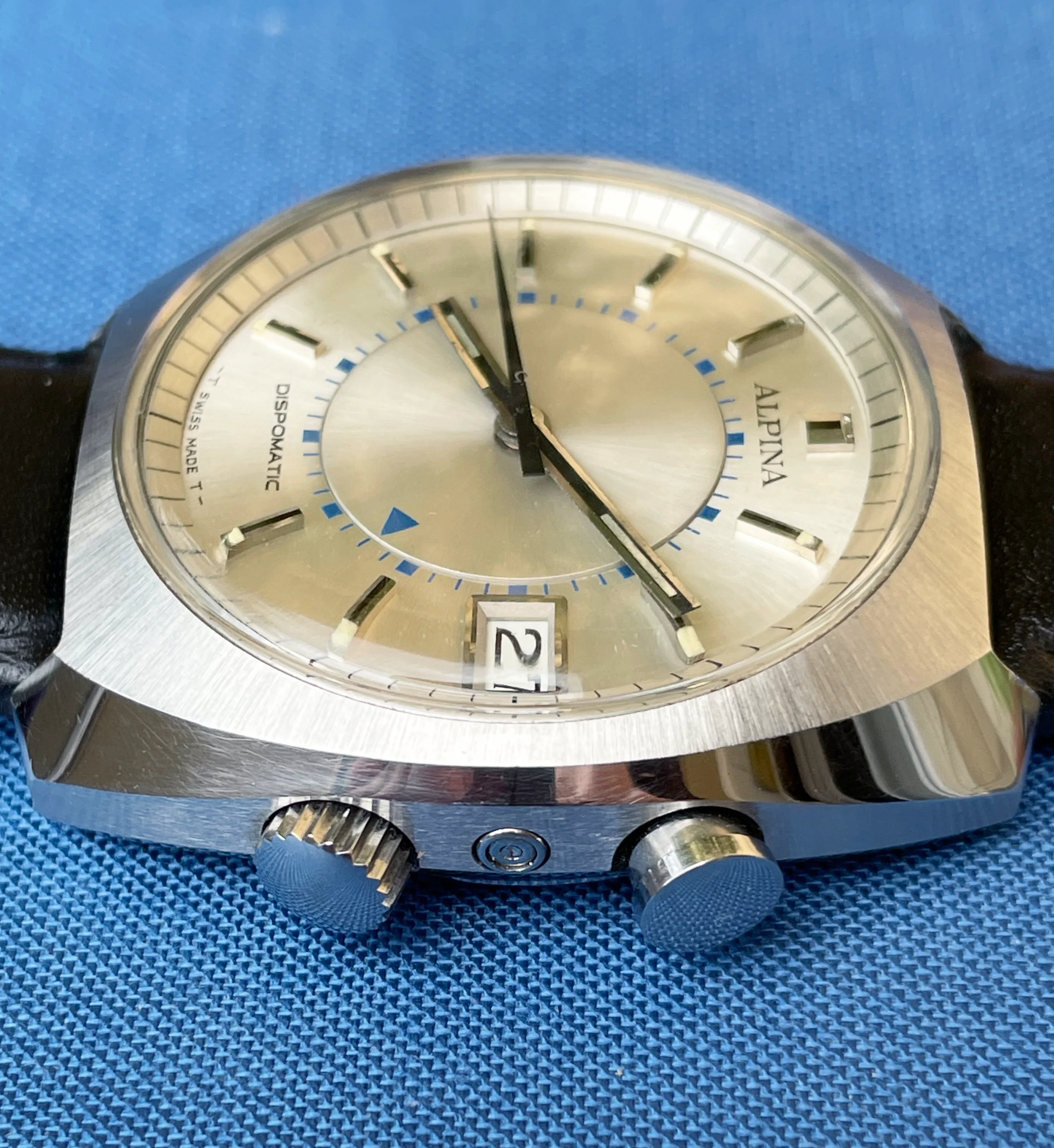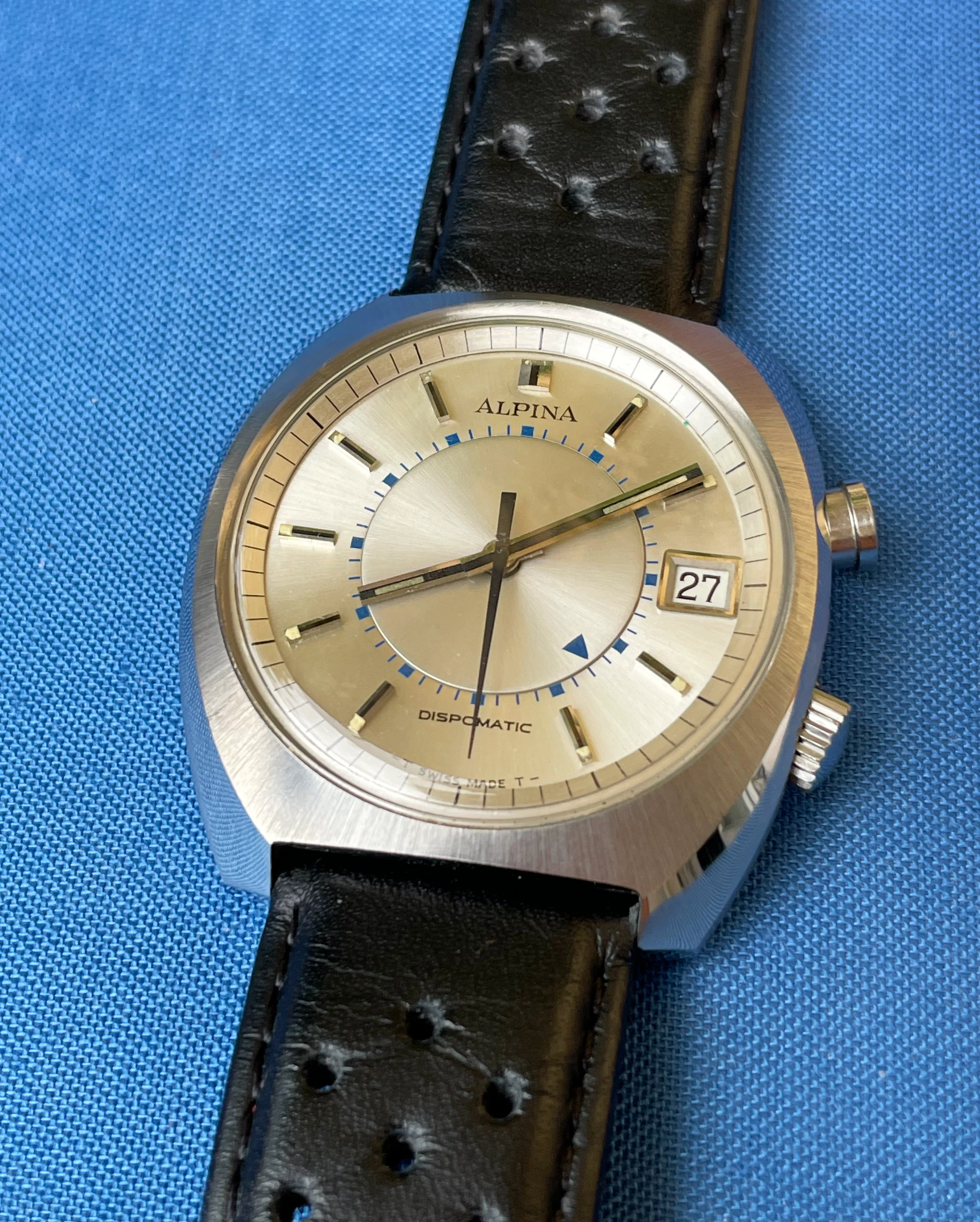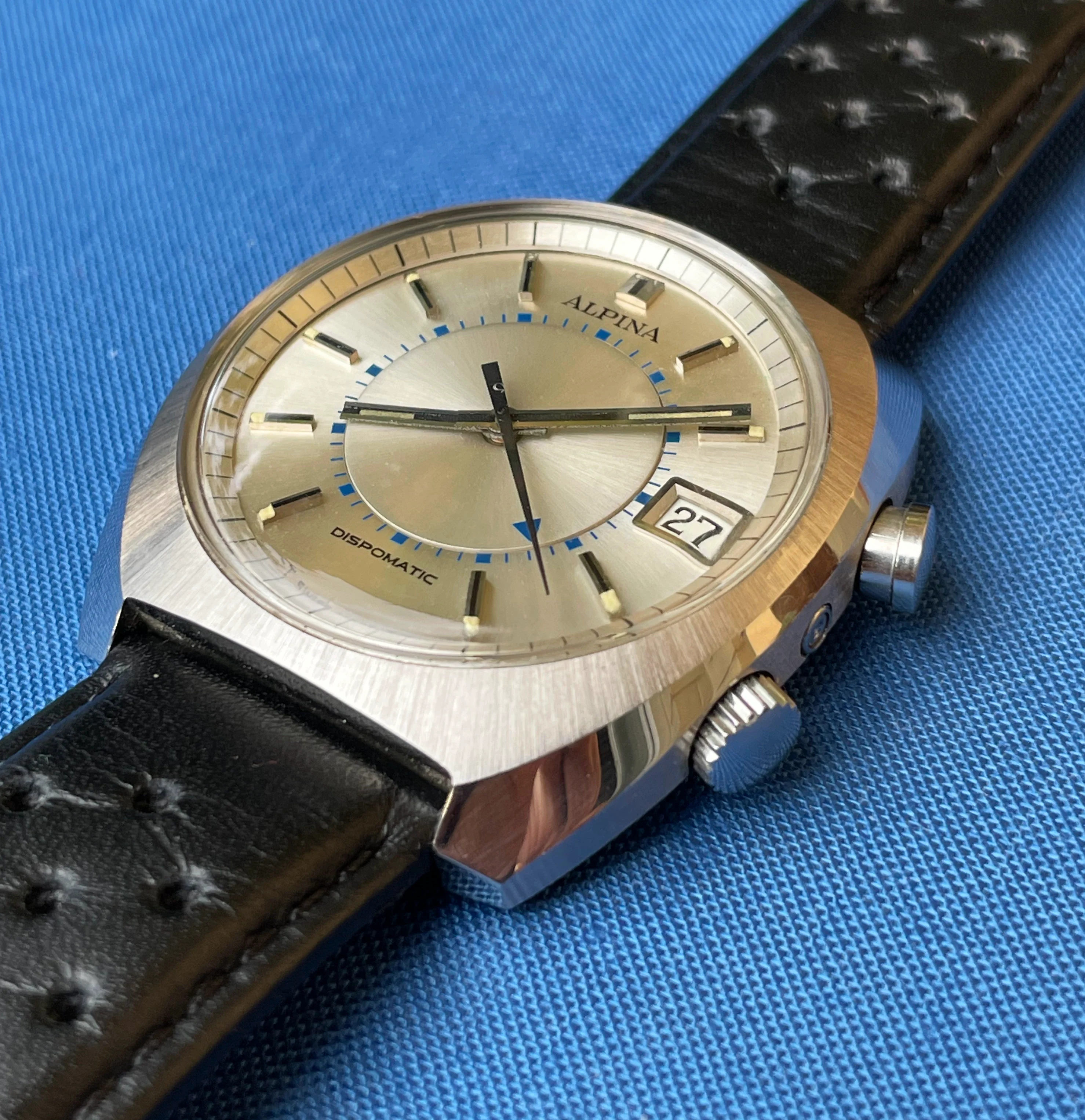 ·I'd like to offer my Alpina Dispomatic, an automatic Alpina with an alarm function. It is in excellent condition and runs (and rings) as it should. Apart from a few minor details, perhaps Storage marks, perhaps caused by careful wearing, it looks like it has just left the store. The caliber 2980 is very closely related to the Lemania 980, which Omega, Lemania's client, used in the “Memomatic.”