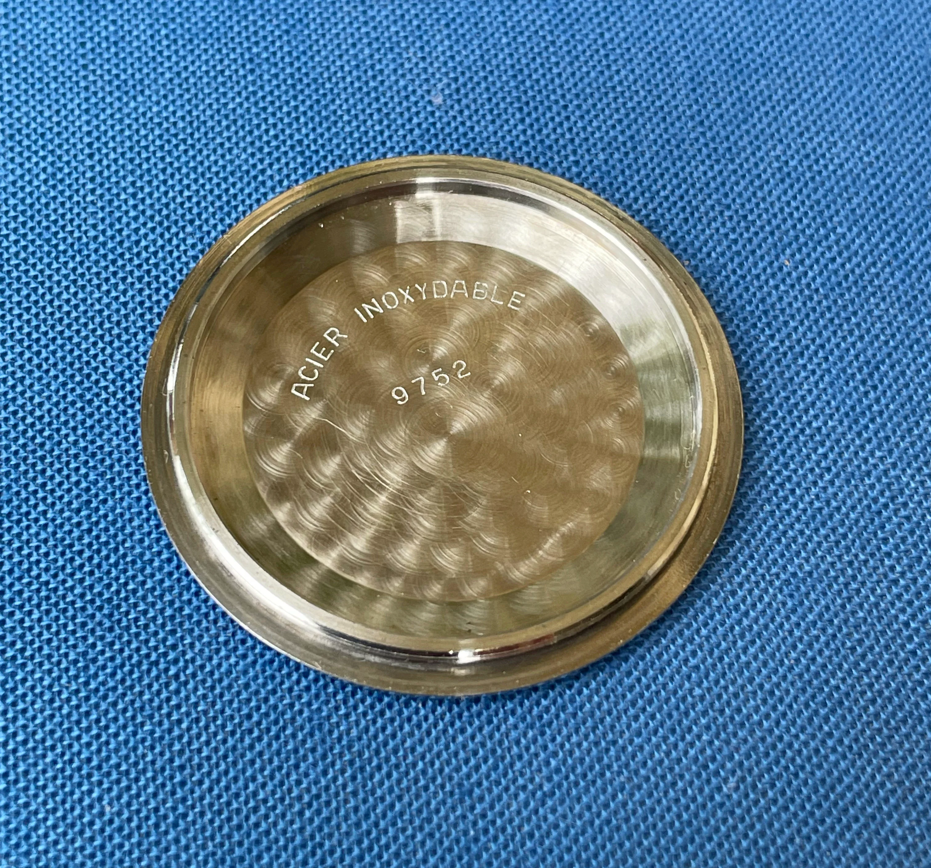 The steel case is quite substantial (approx. 40 mm in diameter), typical of the era, and the dial is classic with a truly beautiful reflection of light (the watch looks different depending on incidence of light, which I have tried to show in my photos).