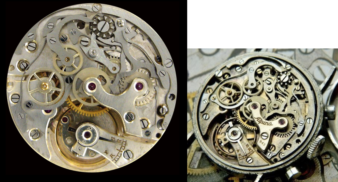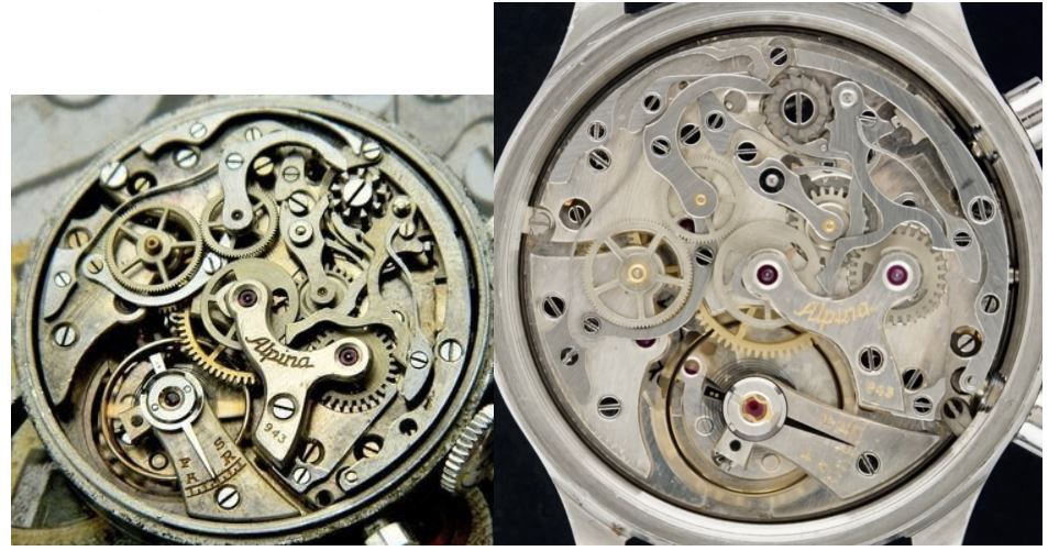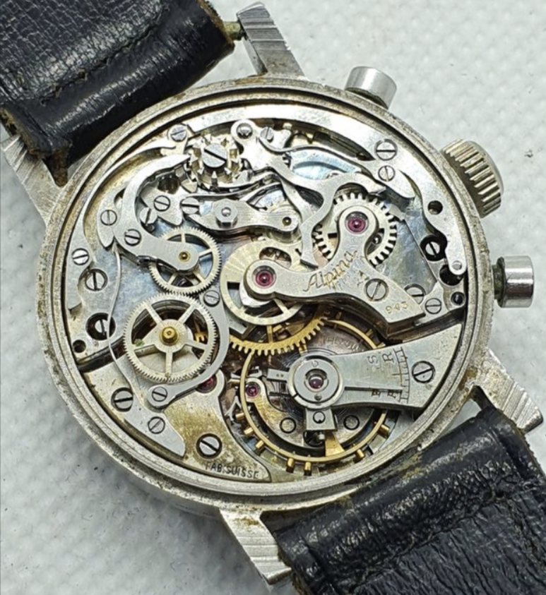 Below two pieces from my collection. A black Triangle logo dial Alpina with Angelus 215 and a very rare cased Alpina with 943 movement.