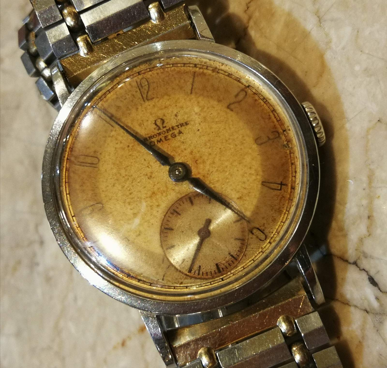 I appreciate everyone’s feedback. It’s keeping perfect time, which is pleasing! I cleaned the band up to wear it around today and see if I really want to keep it. I agree now that it’s definitely patina; but looks nice!