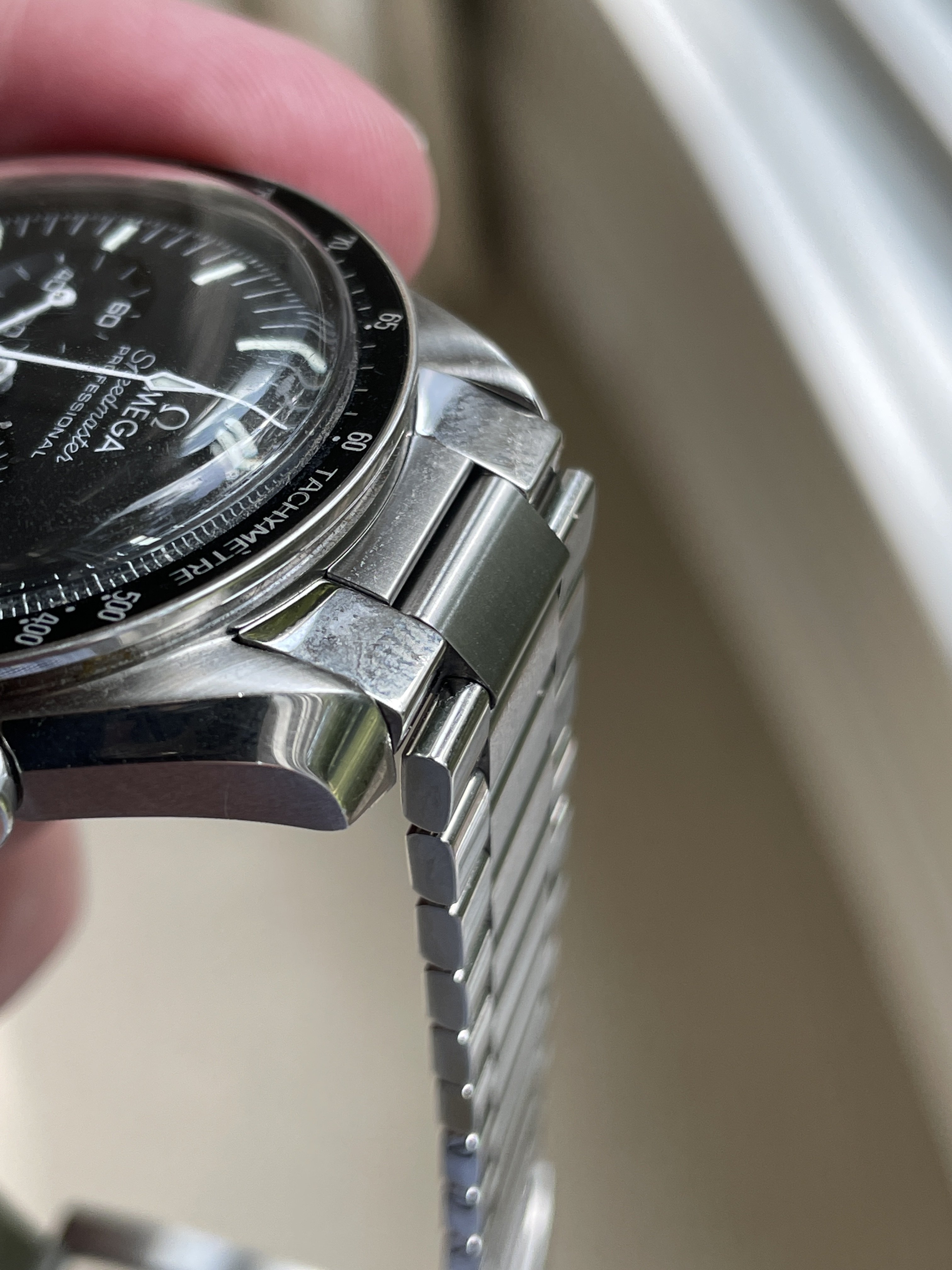 The pictures below show the Forstner end link at 6 o’clock and the standard from the Speedmaster ‘57 at 12 o’clock.