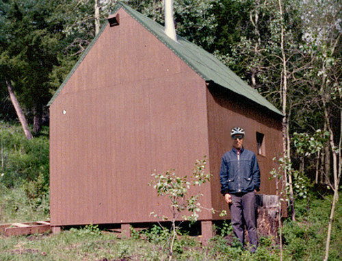 After a record 12 months, DougieDude (aka, Dougie Krazyinski) proudly stands next to his new house in the woods.