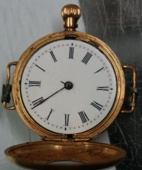 It went for four hundred quid!! For a watch with at the very least some likelihood of the new owner finding a glued-on dial for a pocket watch which has had the legs broken off? (what are those two protrusions on the collar just below the crown?)