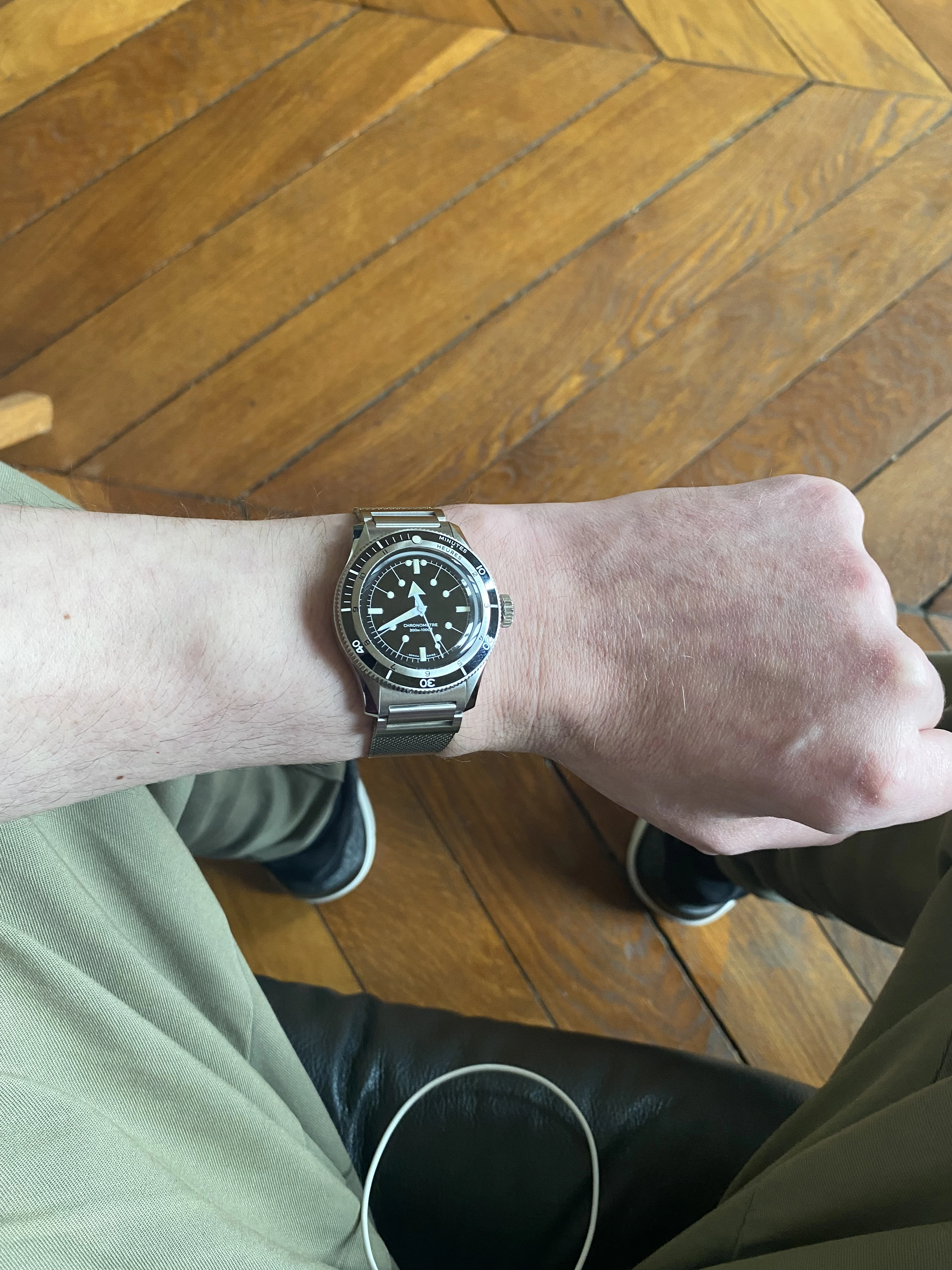 The dial is not really white but more of a silver, which is less appealing to me (yet I believe most people enjoy that white version as it is closer to the original version…)