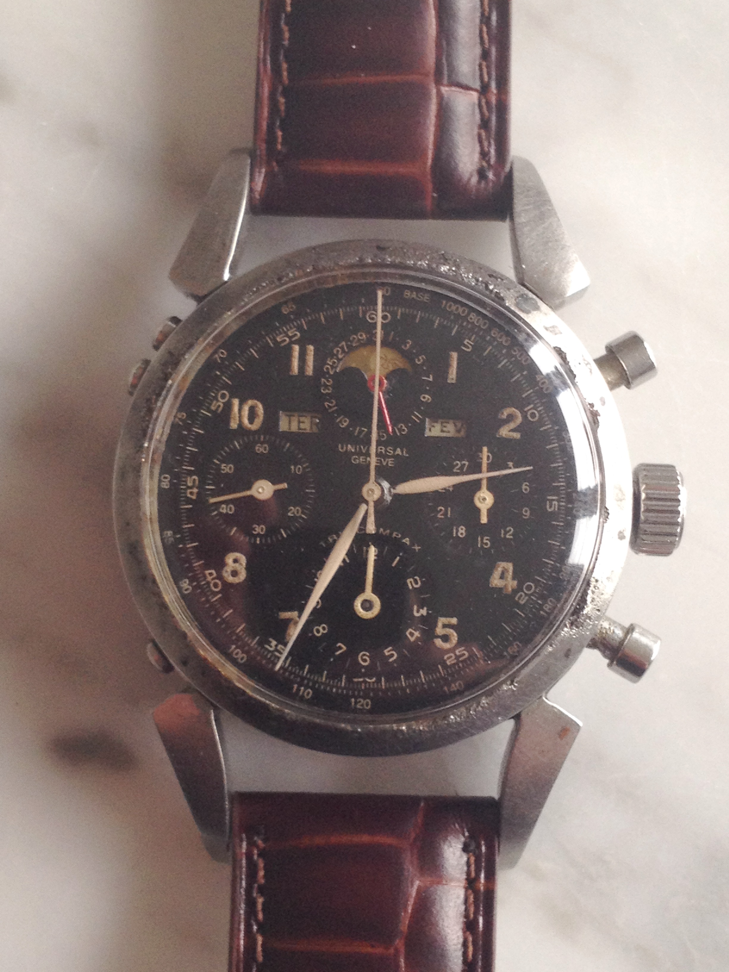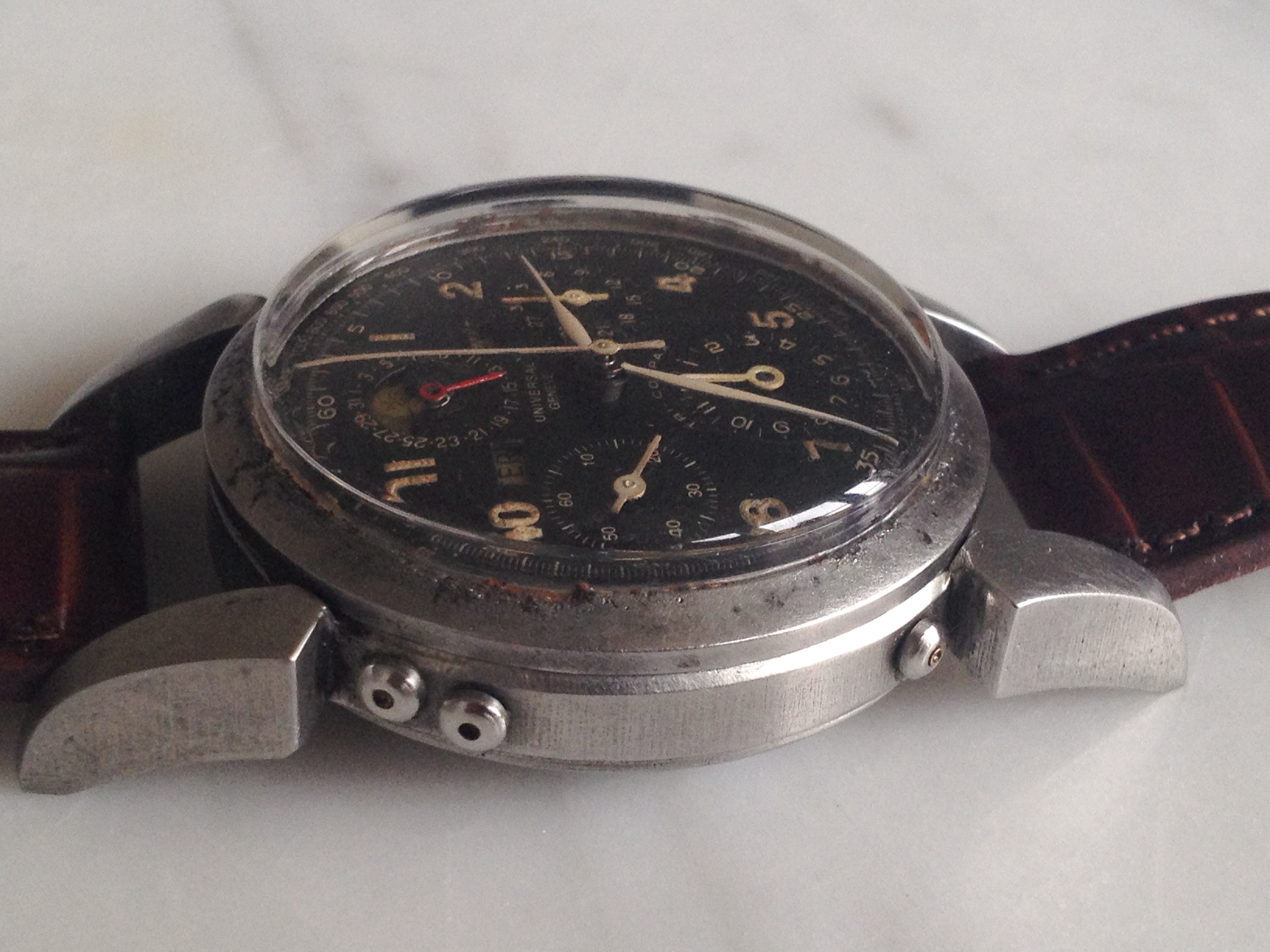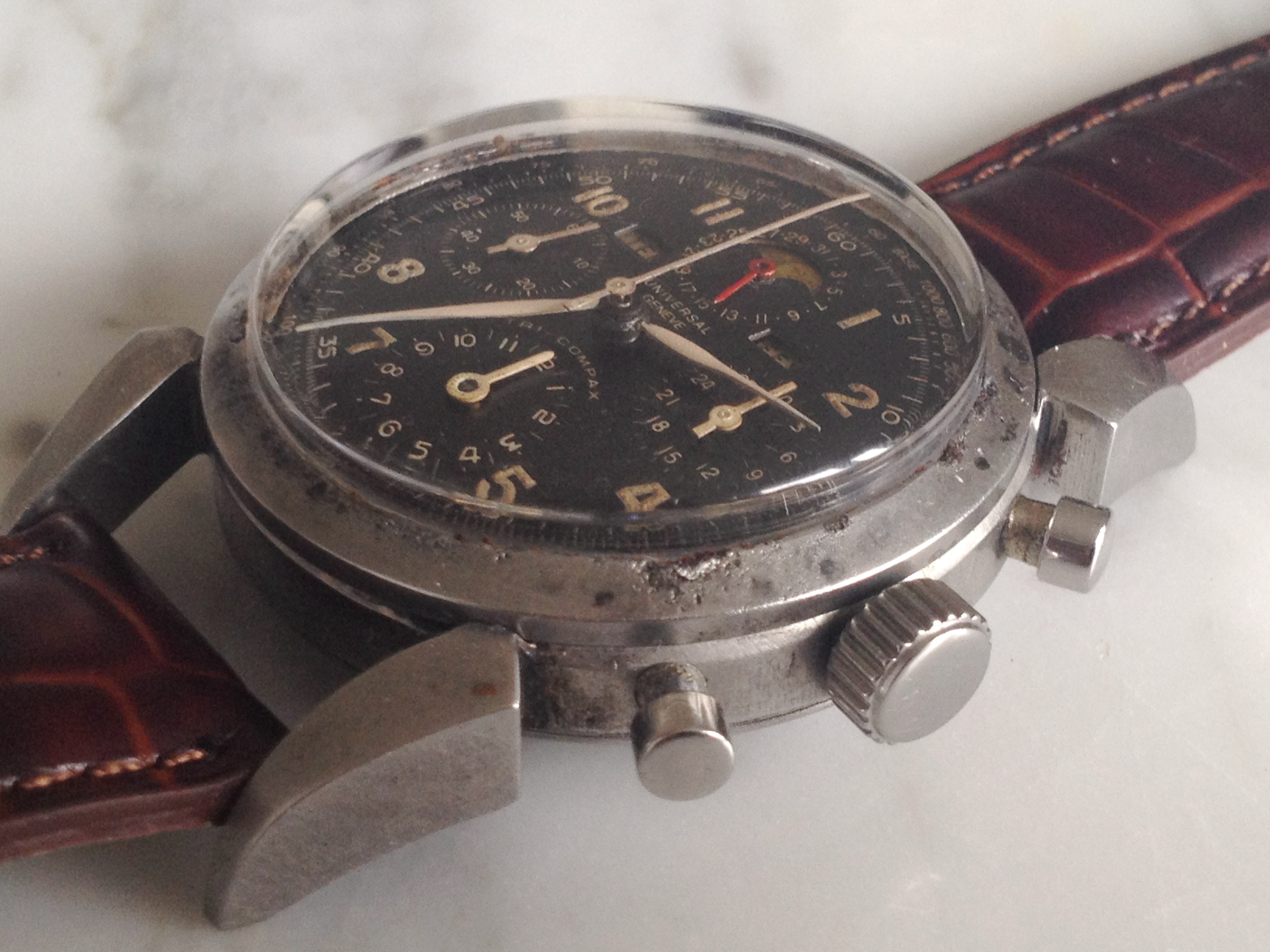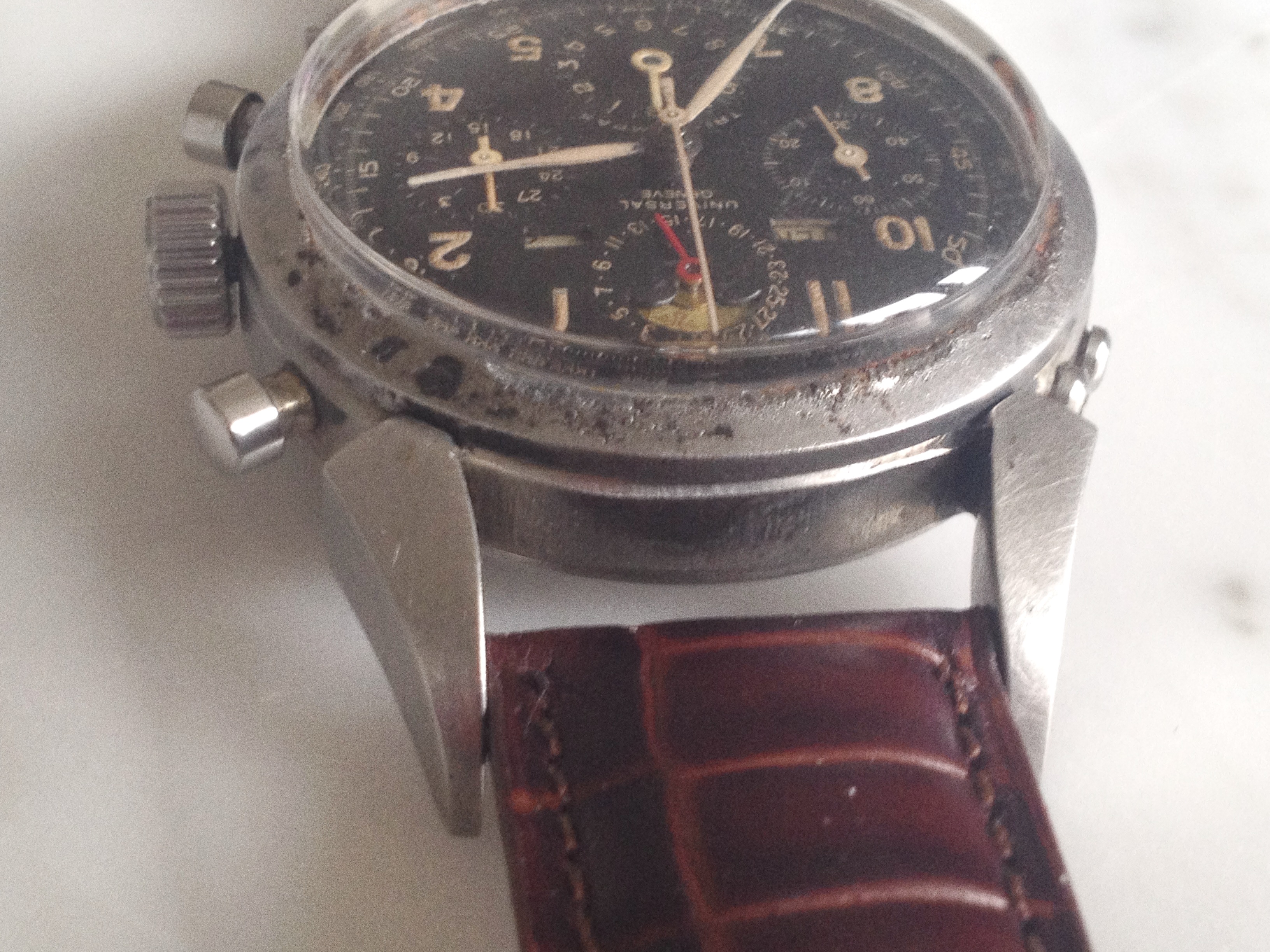 1) dull case finish full of swirlies, different from the vast majority of steel Tri-Compaxes that are demonstrably original.