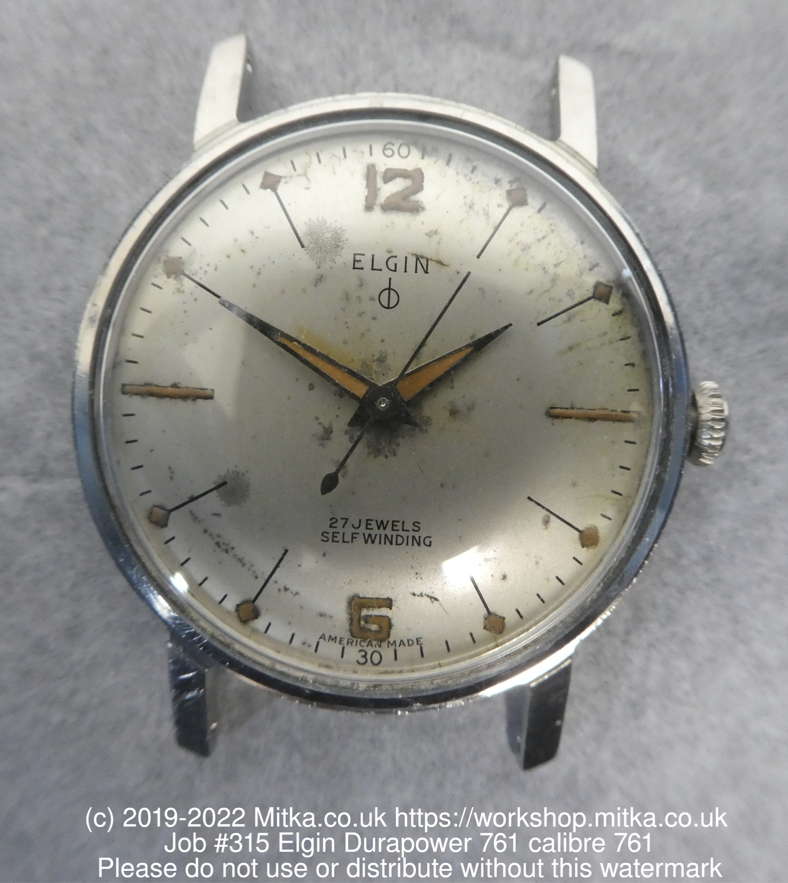 I was intrigued with the possibility of owning a true American automatic wristwatch when I read that Elgin had sold a series of watches in the late 1950s and early 1960s with their own calibre 760/761 movement. So I enthusiastically bought the first one I could find on eBay. I got lucky though, because it turned out to be a pretty clean example with no nasty hidden surprise.