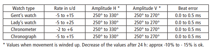 I do the same thing when I get a watch in - fully wind it and check the horizontal amplitude, just to get a feeling for how it's running, but this is different than a formal tolerance or factory specification.