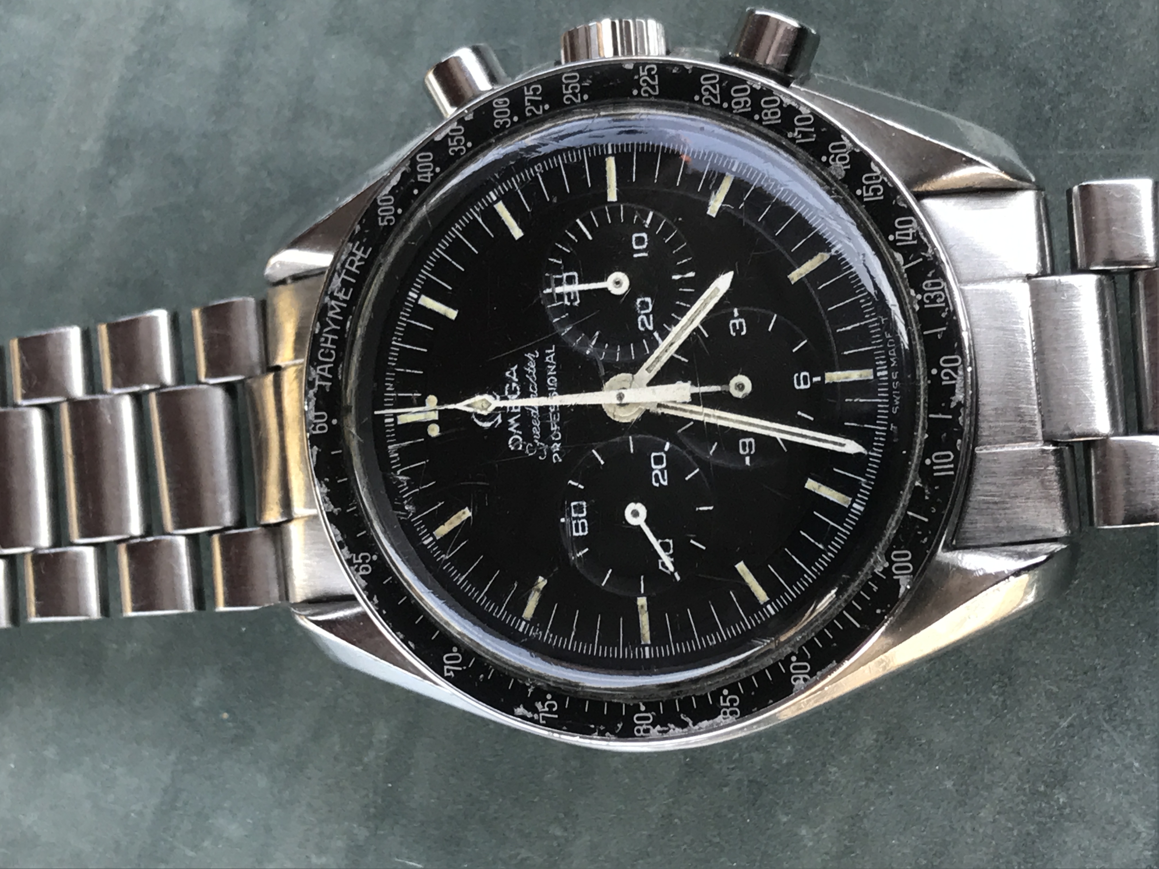 Since day one, this watch was serviced only two times, each time by Omega official .. each time crown and pushers were replaced, the originals were deliverd to the owner and he still has those. Each time the watch was cleaned and lightly polished, the crystal replaced.