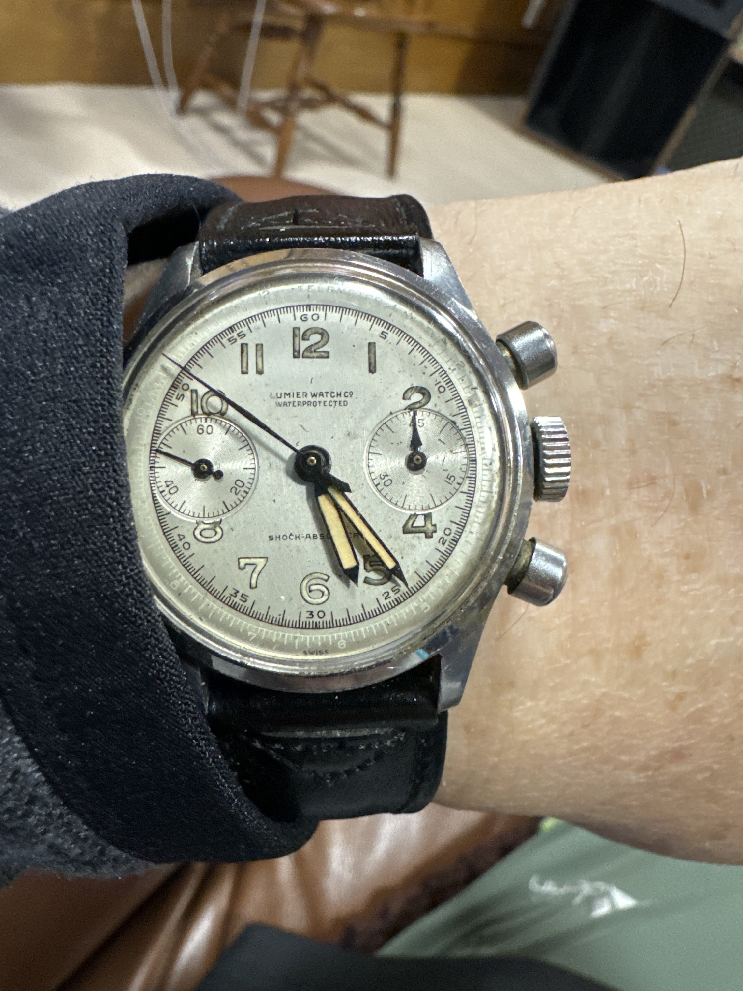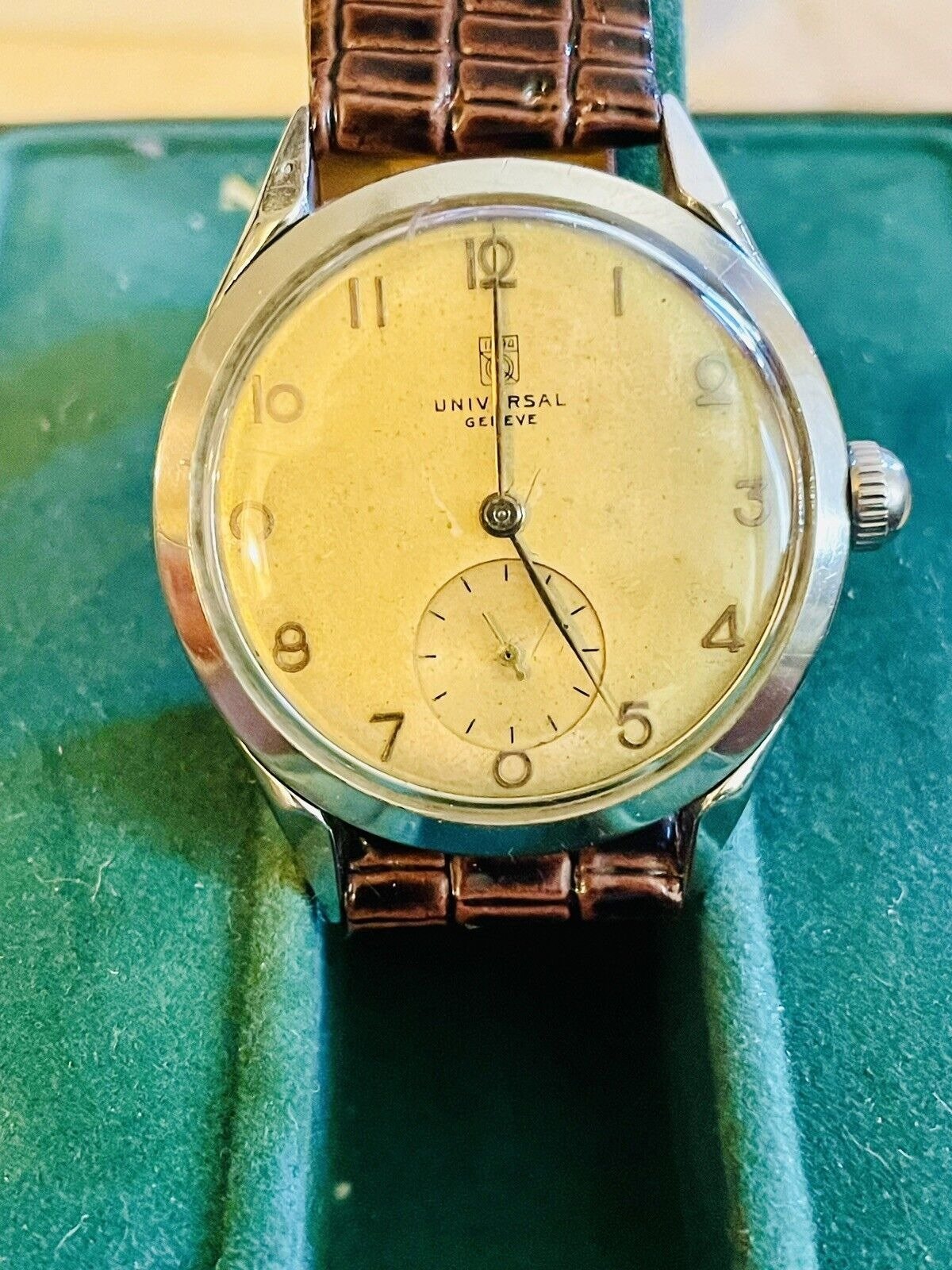 Posts 6,499 Likes 10,179 Mark020 ·Apr 6, 2024·not the sharpest pencil in the ΩF drawer Poor pic but the description mentions it https://www.worthpoint.com/worthopedia/universal-geneve-gents-swiss-vintage-519058990