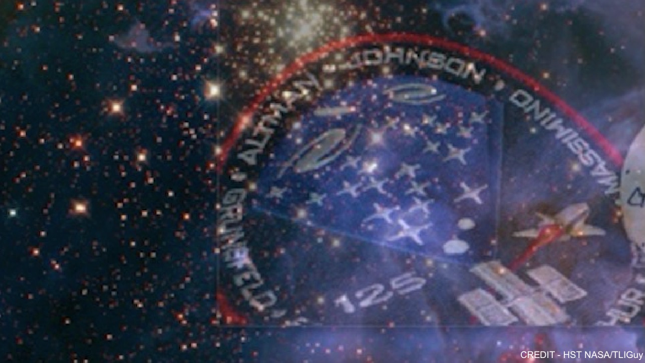 In the final image Neil picked off the stars in the original embroidered patch leaving the texture in place. When the actual Hubble image is layered under it, it allows the image to bleed through so the image appears to be embroidered like the original patch.