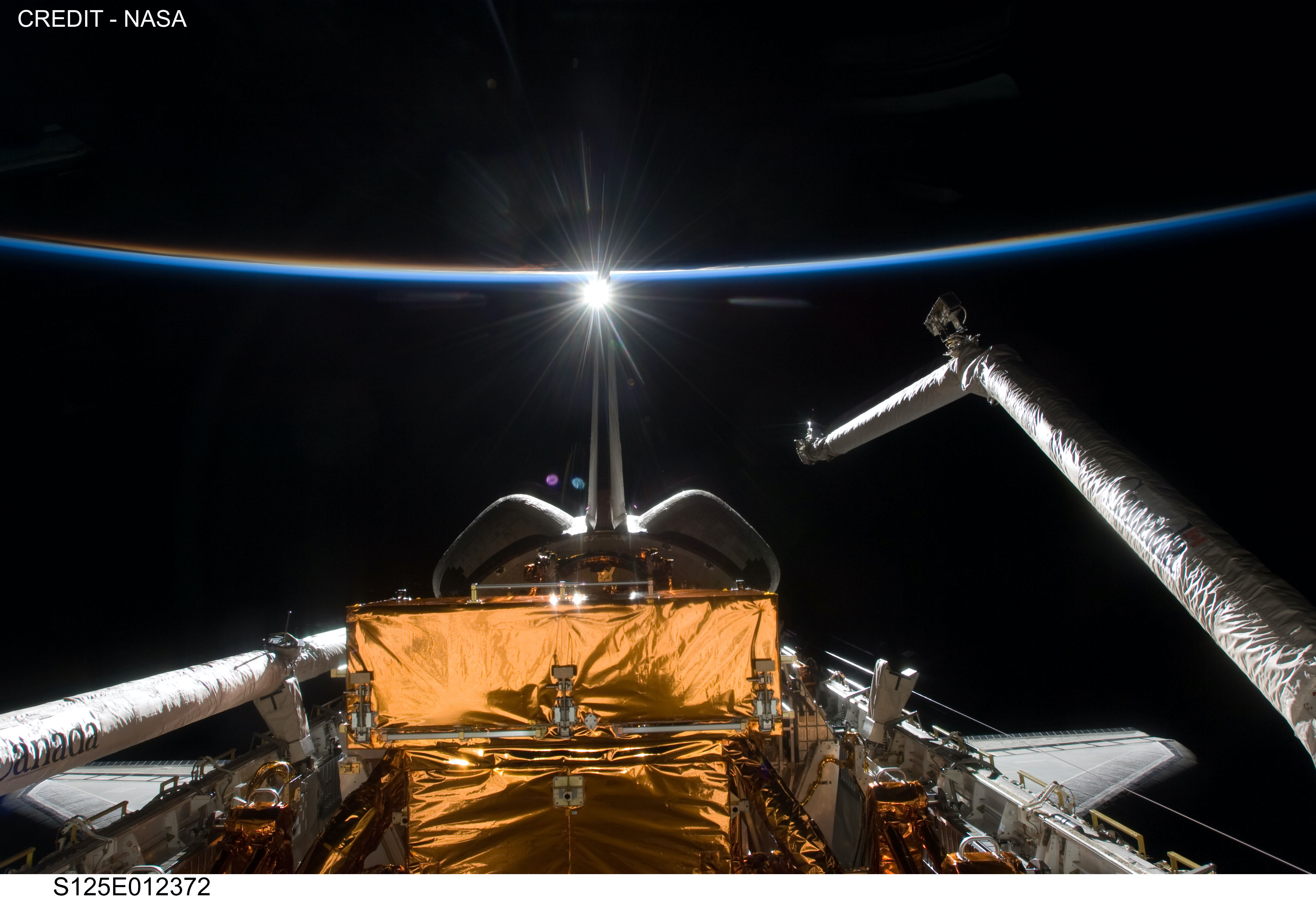 For this piece I though it would be an interesting idea to incorporate an actual image taken by the Hubble Space Telescope after the new cameras were added to Hubble during the STS-125 mission. From the hundreds of images I settled on the Star-Forming Nebula NCG-3603 because I thought it made a nice replacement for the actual embroidered telescope spectrum field in the patch. The dark blues in the image were a perfect replacement and fit well.