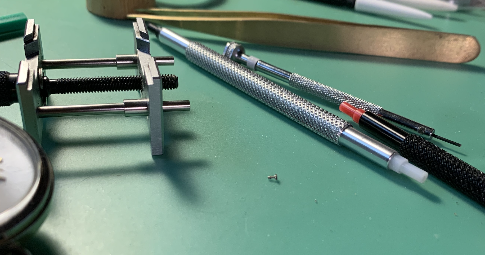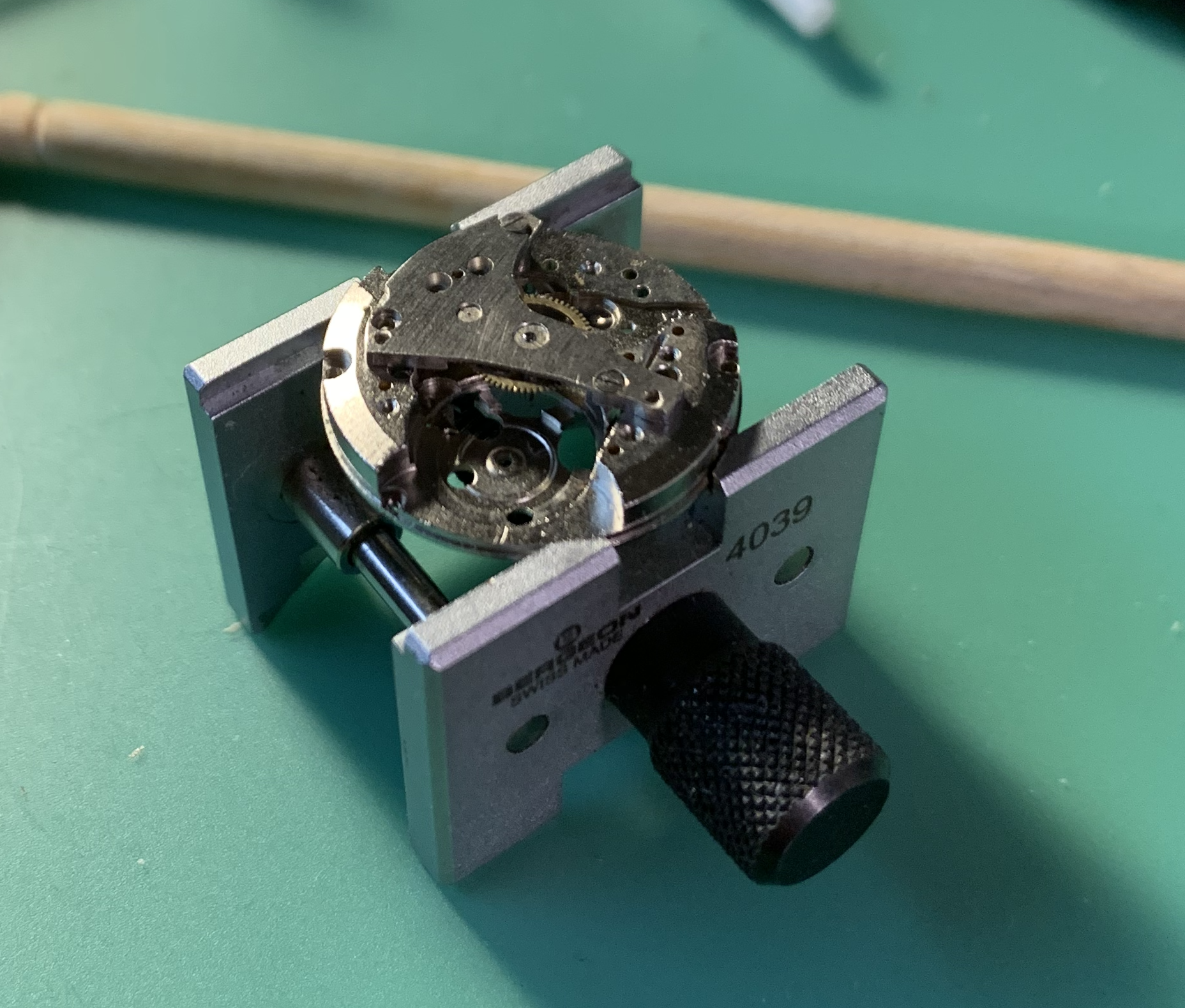 I have other Rhonda watch movements, but those have the weird setting mechanism. Most are missing stems and balances. Can not see how those 'improvements' really saved on costs. Service wise, there is no real difference in time spent. These cheap pin levers can actually take more time than a more desirable watch.