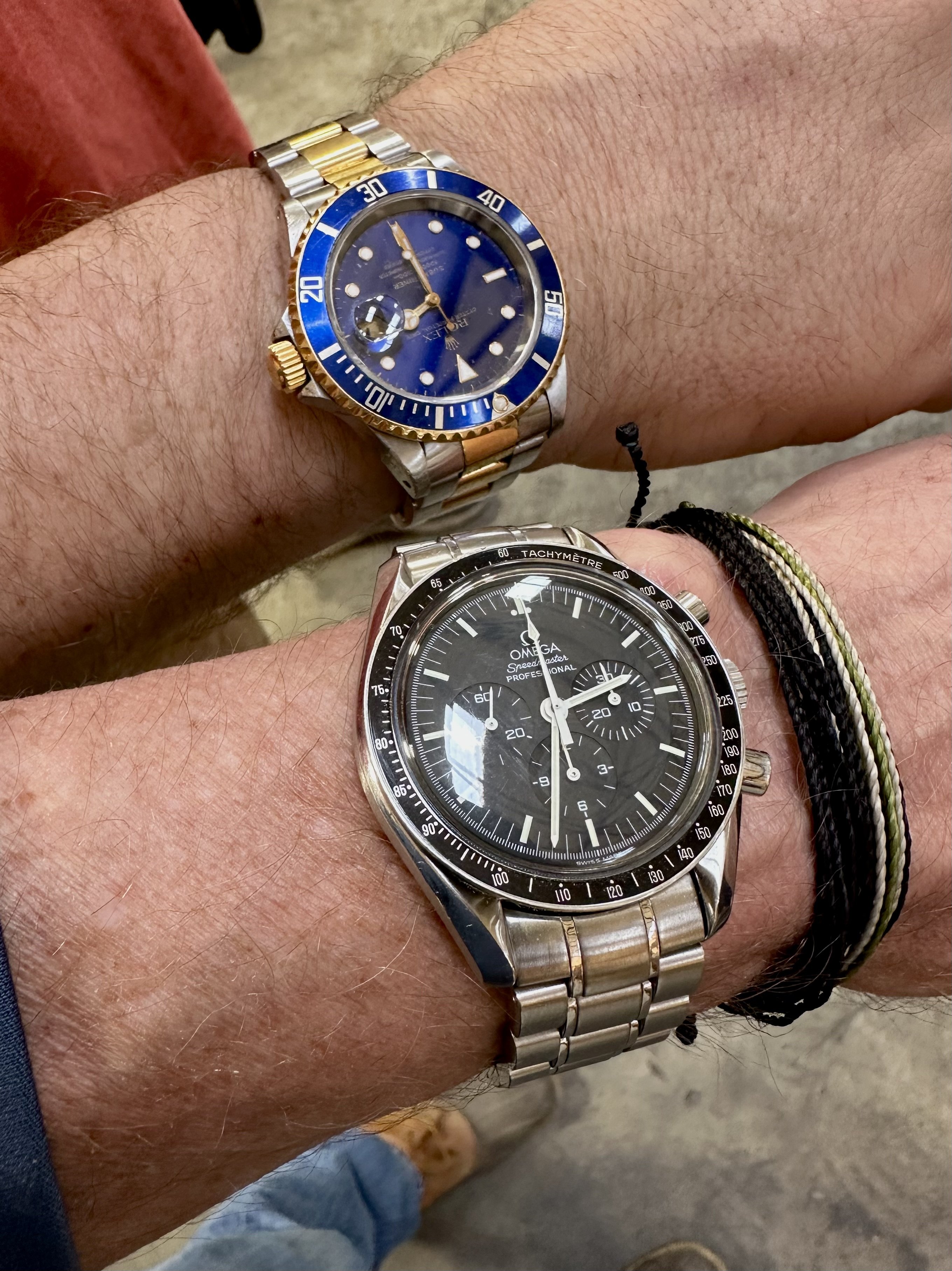 ·Picked up a few things from the local building supply company for the major house renovation project I’ve got going. Owner was there and I spotted his Submariner. That led to a nice conversation…and one in which he revealed he had never heard of, or seen, a Speedmaster. He said, Man, that’s a sexy watch. Winner? Speedmaster by a mile in my book.