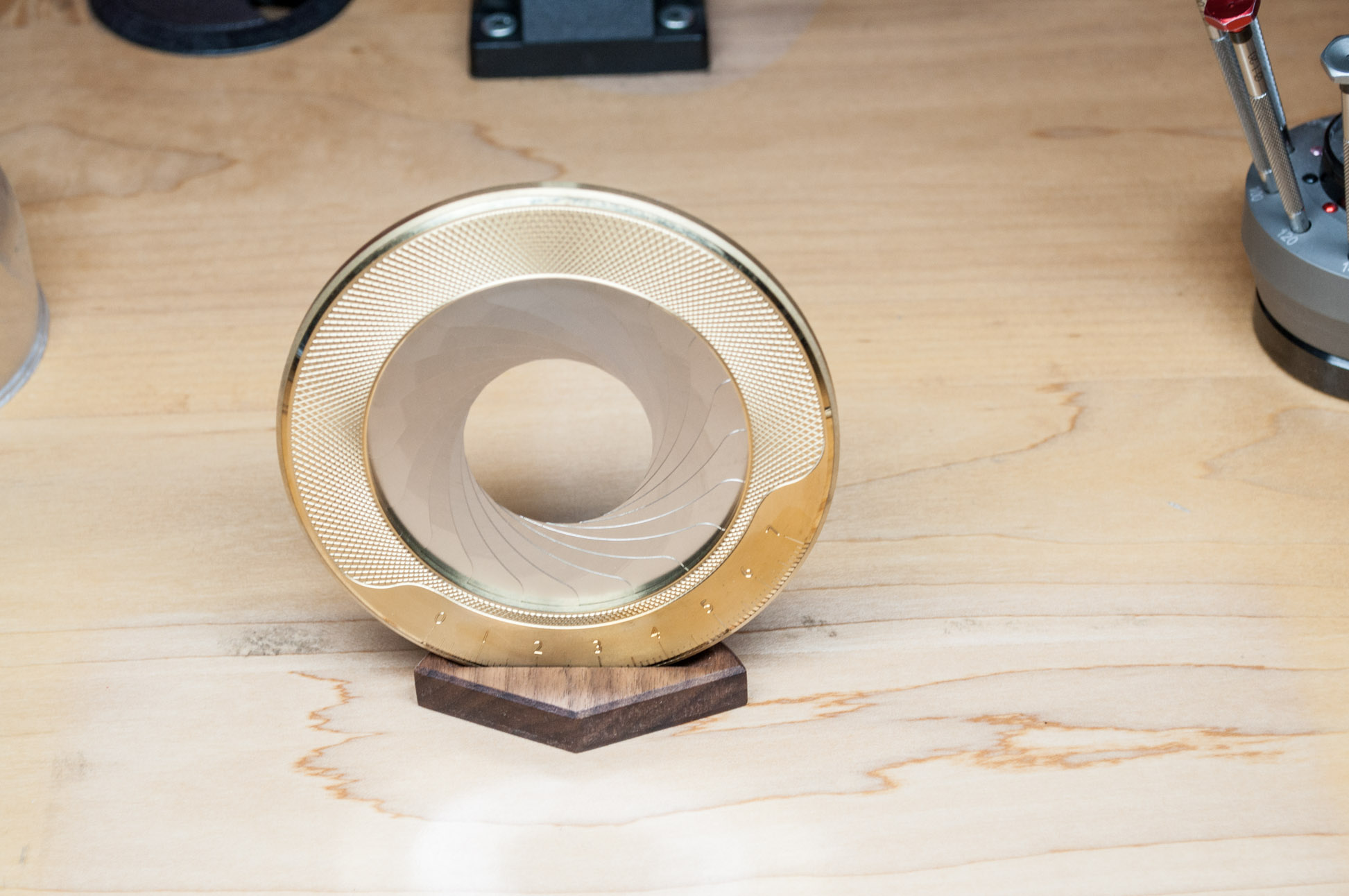 Based on the posts above, I first thought it was a coin, then maybe a brake rotor. But now I'm stumped. Something to do with photography? Looks kind of like an iris.