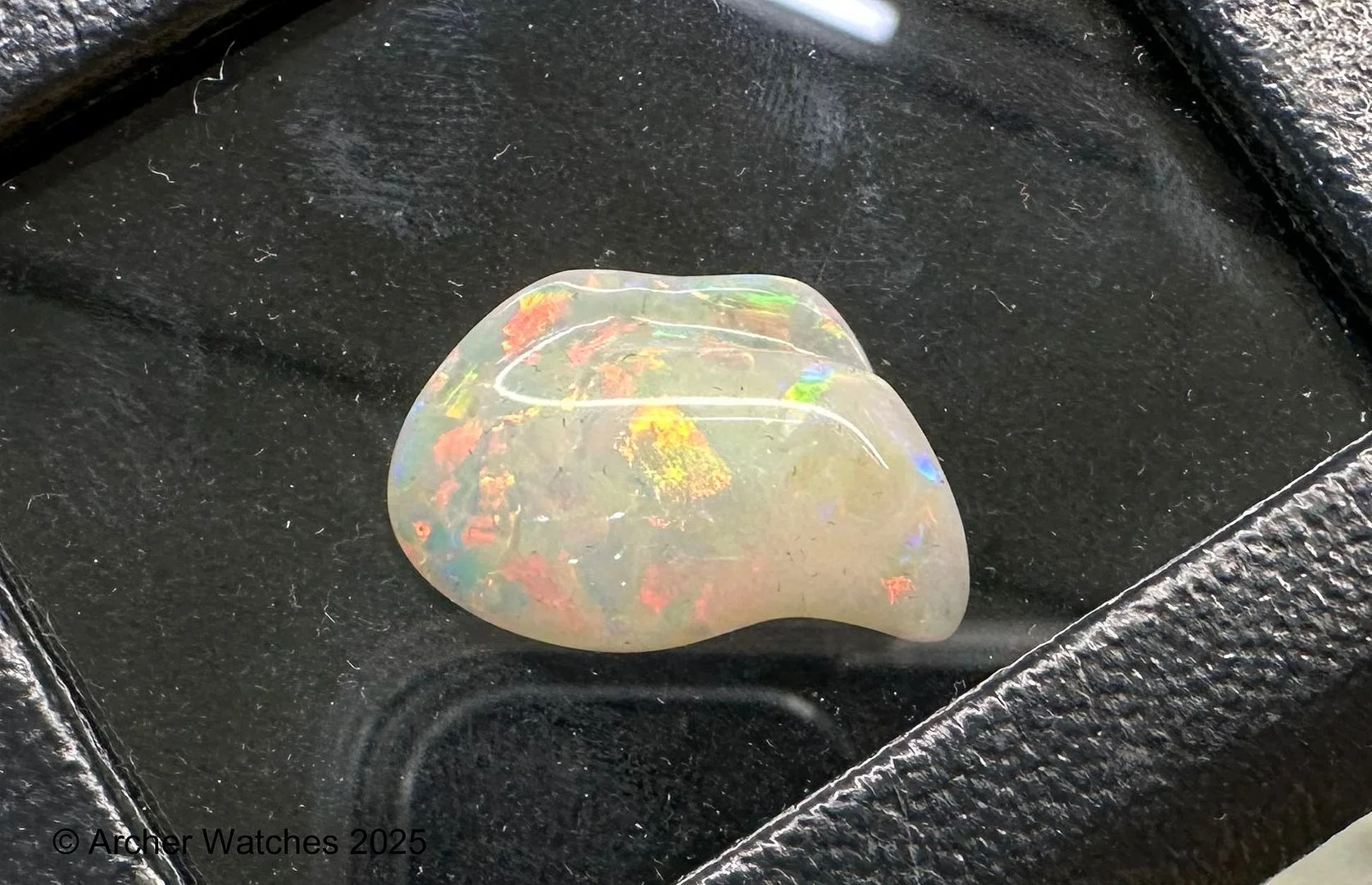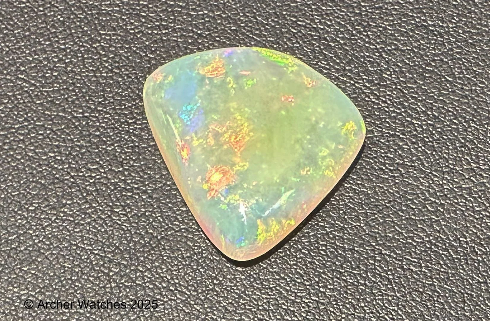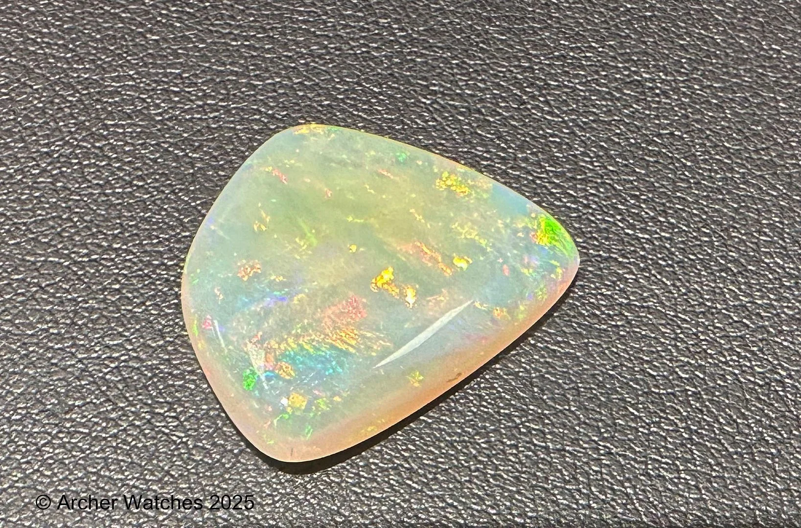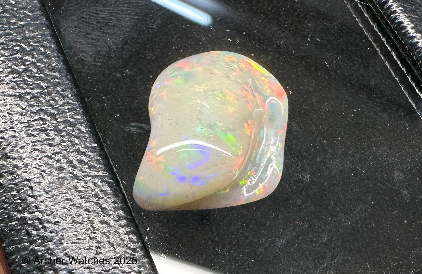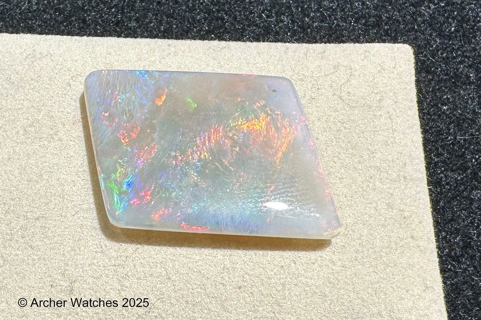 In the past I've chased a lot of "red on back" opals, but this time I wanted a big, bright stone with a lot of flash. Not necessarily prioritizing red (the most expensive colour flash) just wanted it bright. I was looking for a nice big crystal opal as a result, and I found a couple of good candidates. Here's one: