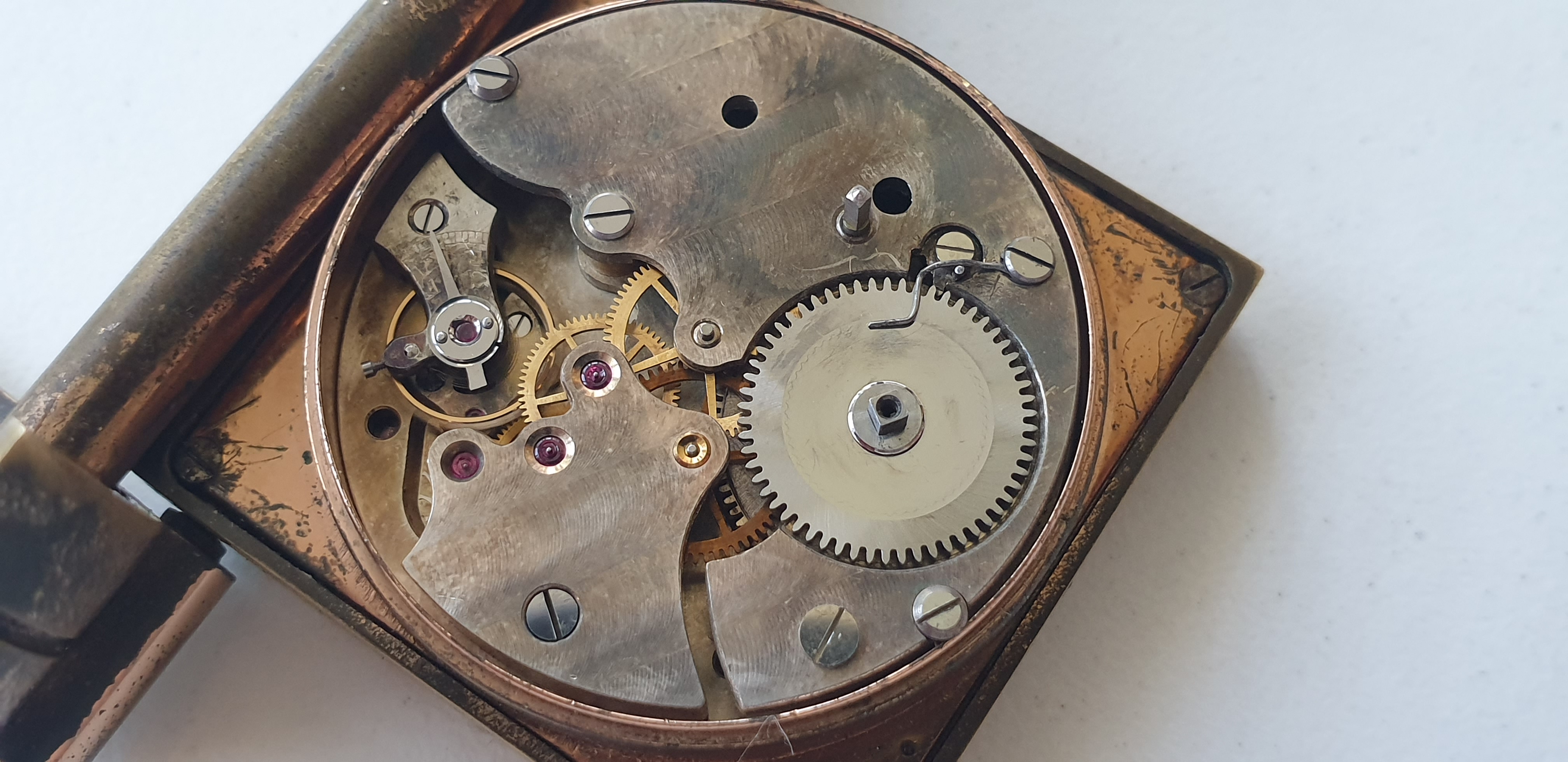 I recently bought this Angelus 8 days. From my research it is from the first 8 days mechanisms produced from 1936 to 1939. It is known by the type of regulator. It went through my watchmaker and now it works exactly. For the second day without a deviation. A friend gave me an idea to make a wristwatch. Winding and adjusting will remain the same. It will still be once a week! The mechanism is 35 mm, 6 mm high. The square is 40x40 mm. I want it to be round of course. I will soon take it to some watchmakers who make it from pocket to hand. How do you see this idea? It is very important for me that everything in a watch is original, but I would compromise on this one!