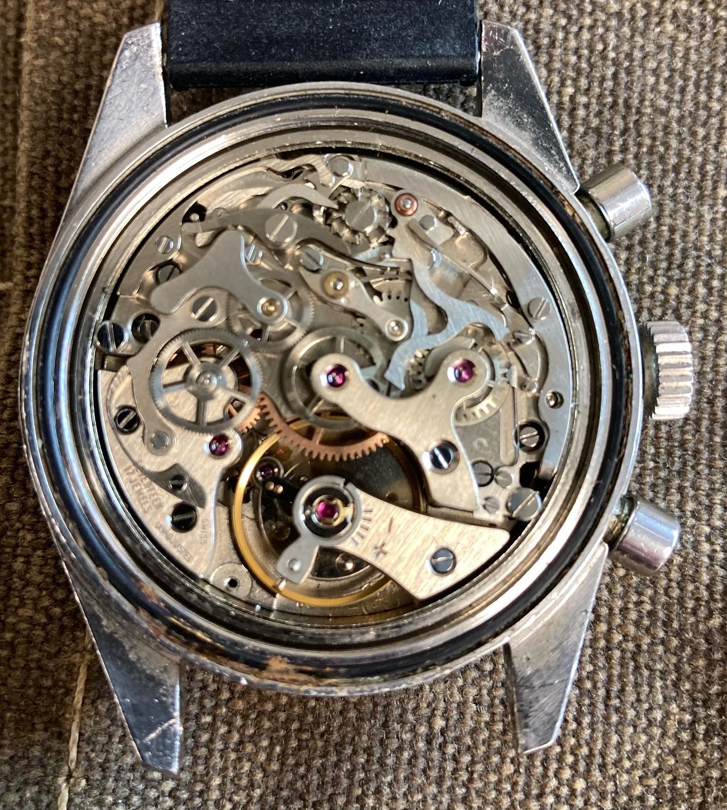 Movement: Valjoux 72, recently serviced, running well, resets to zero. Unsigned movement.
