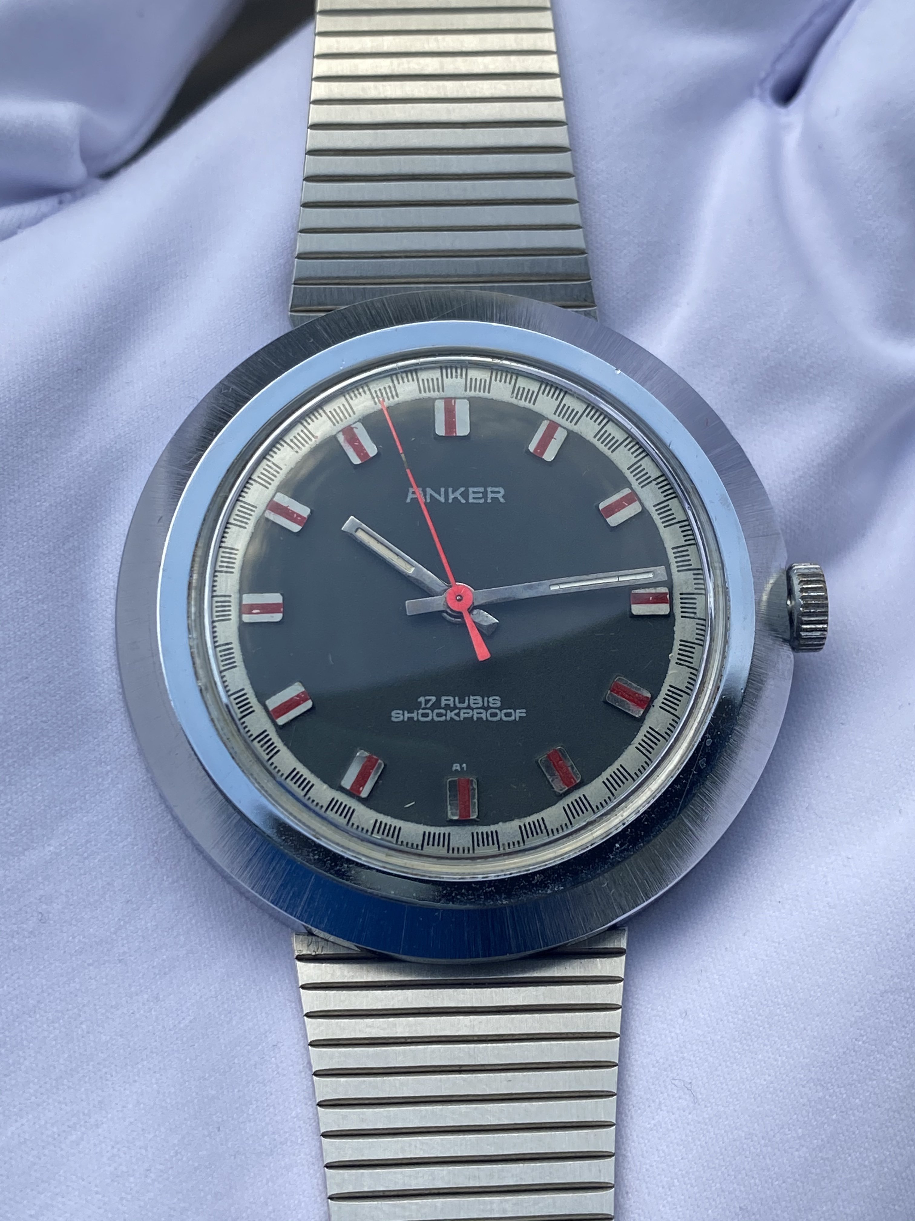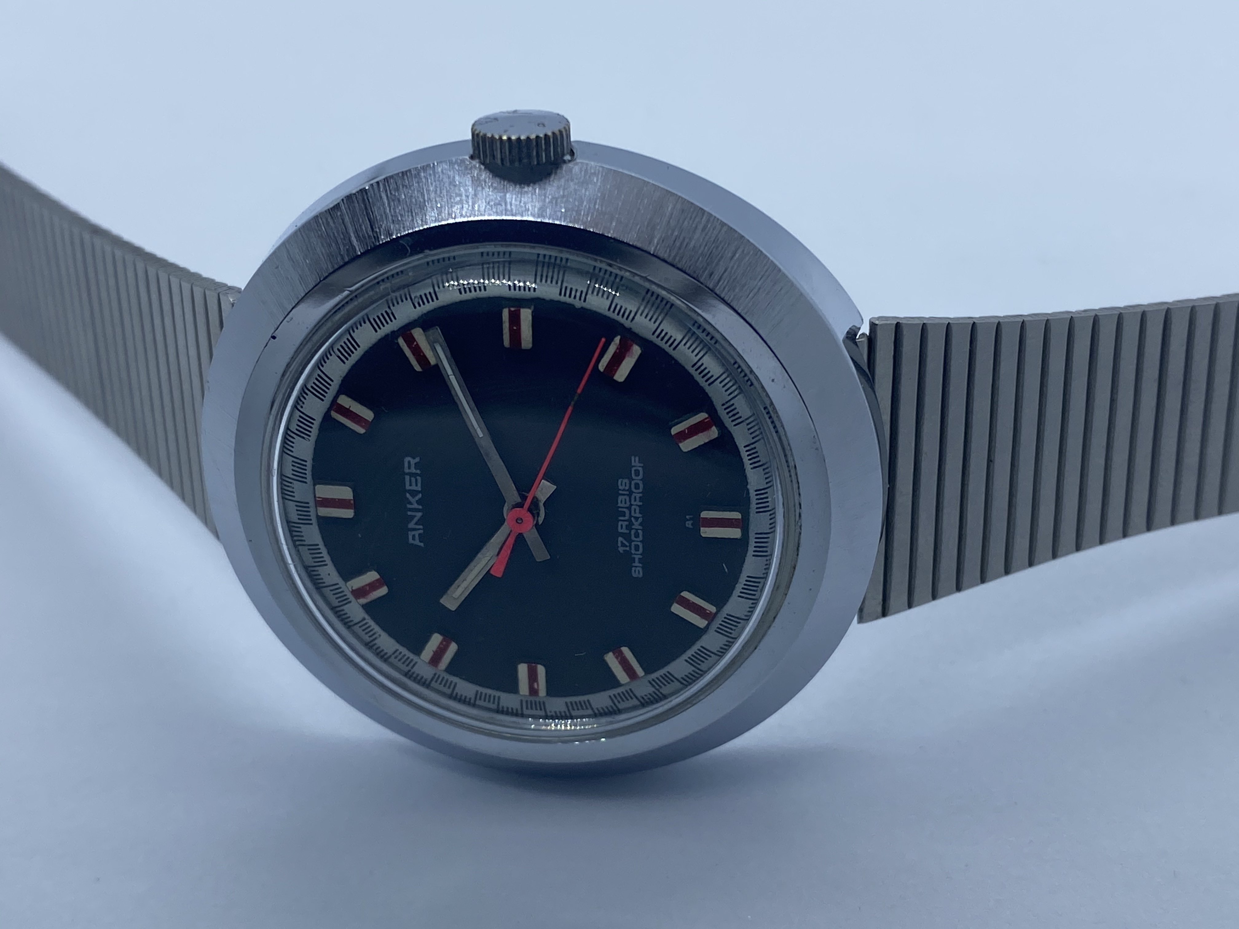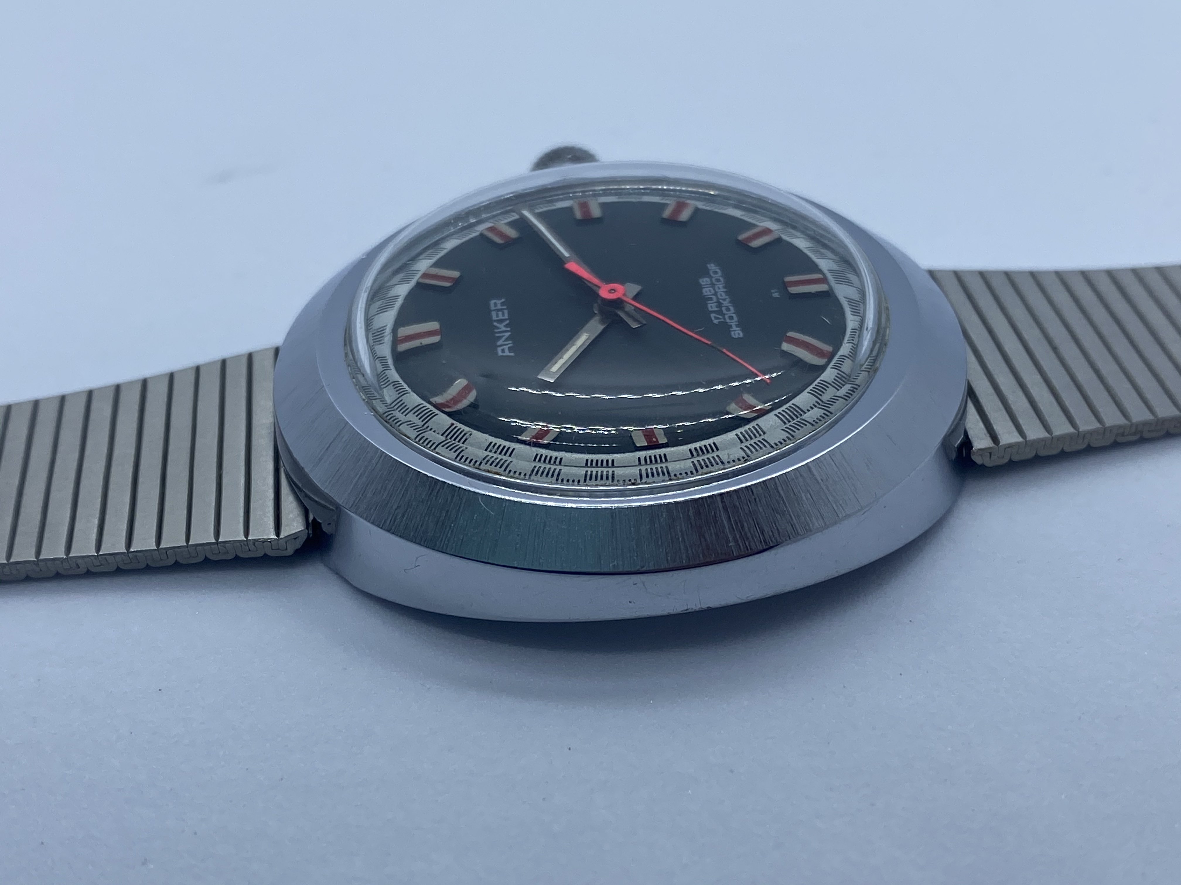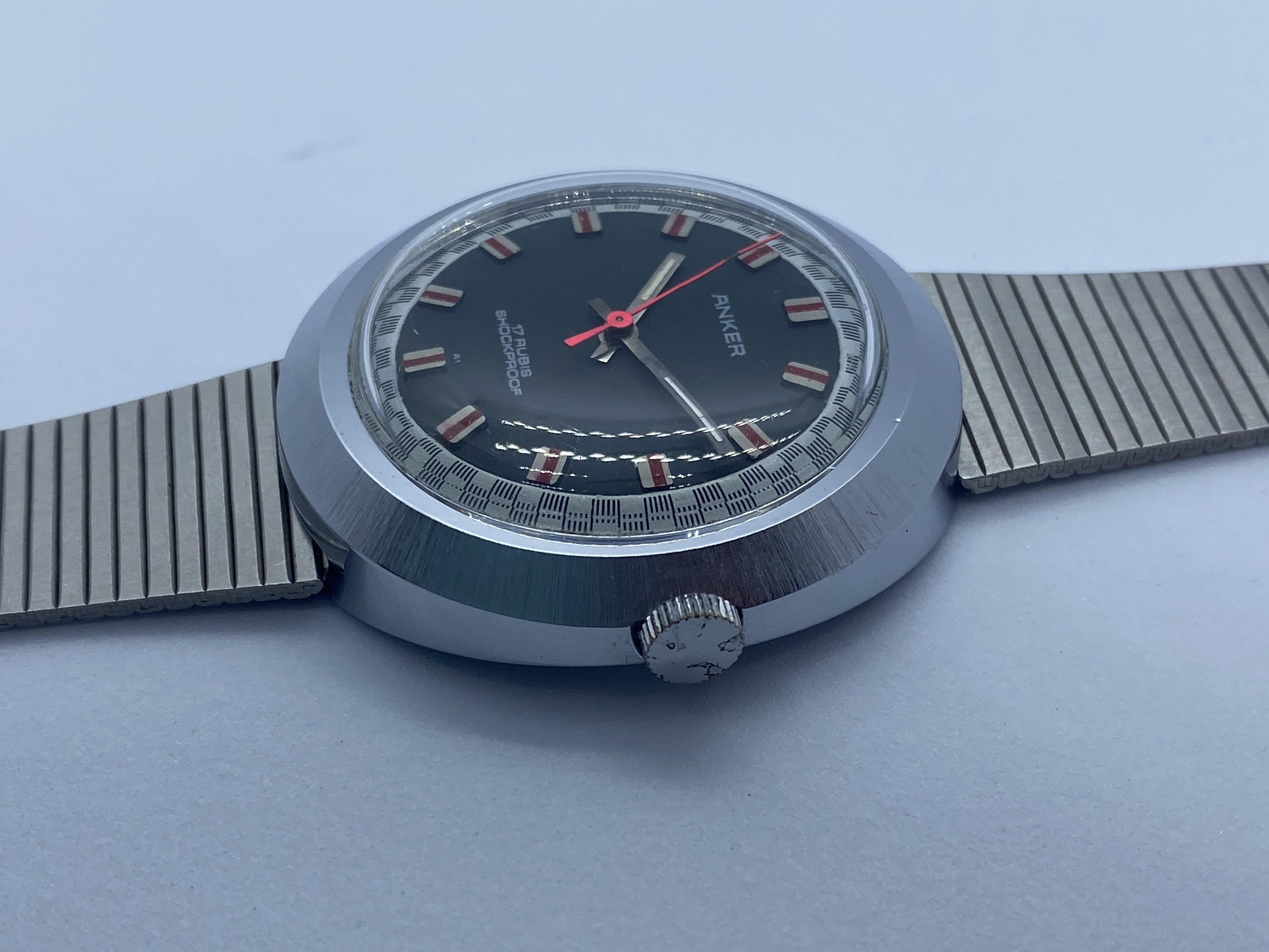 It's made by Anker, a small German company that ceased to exist ages ago. The movement is a manual, 17 rubis, and most importantly: It's 70s as f... ...Farrah Fawcett in Charlie's Angels. I mean, look at this dial: