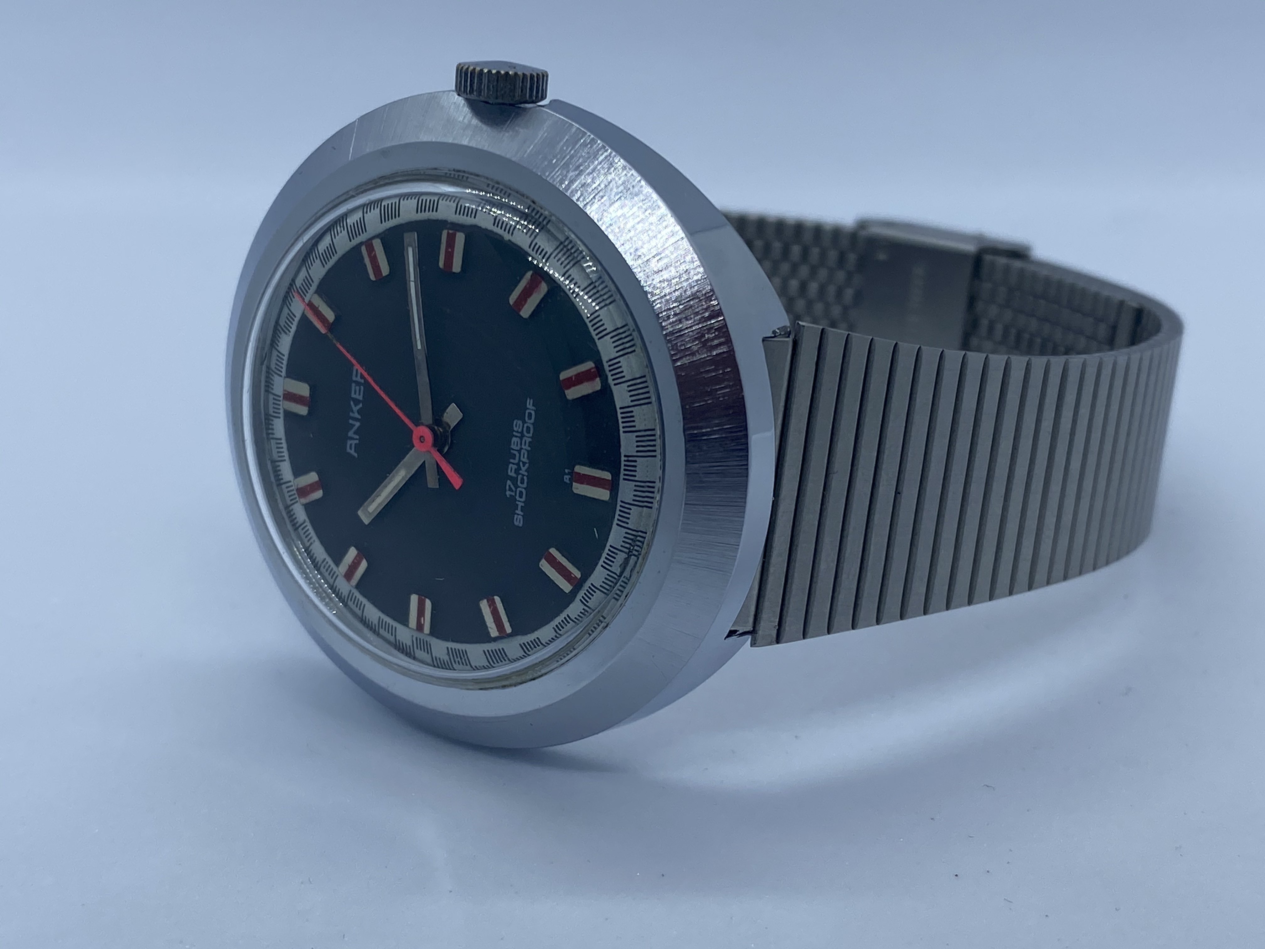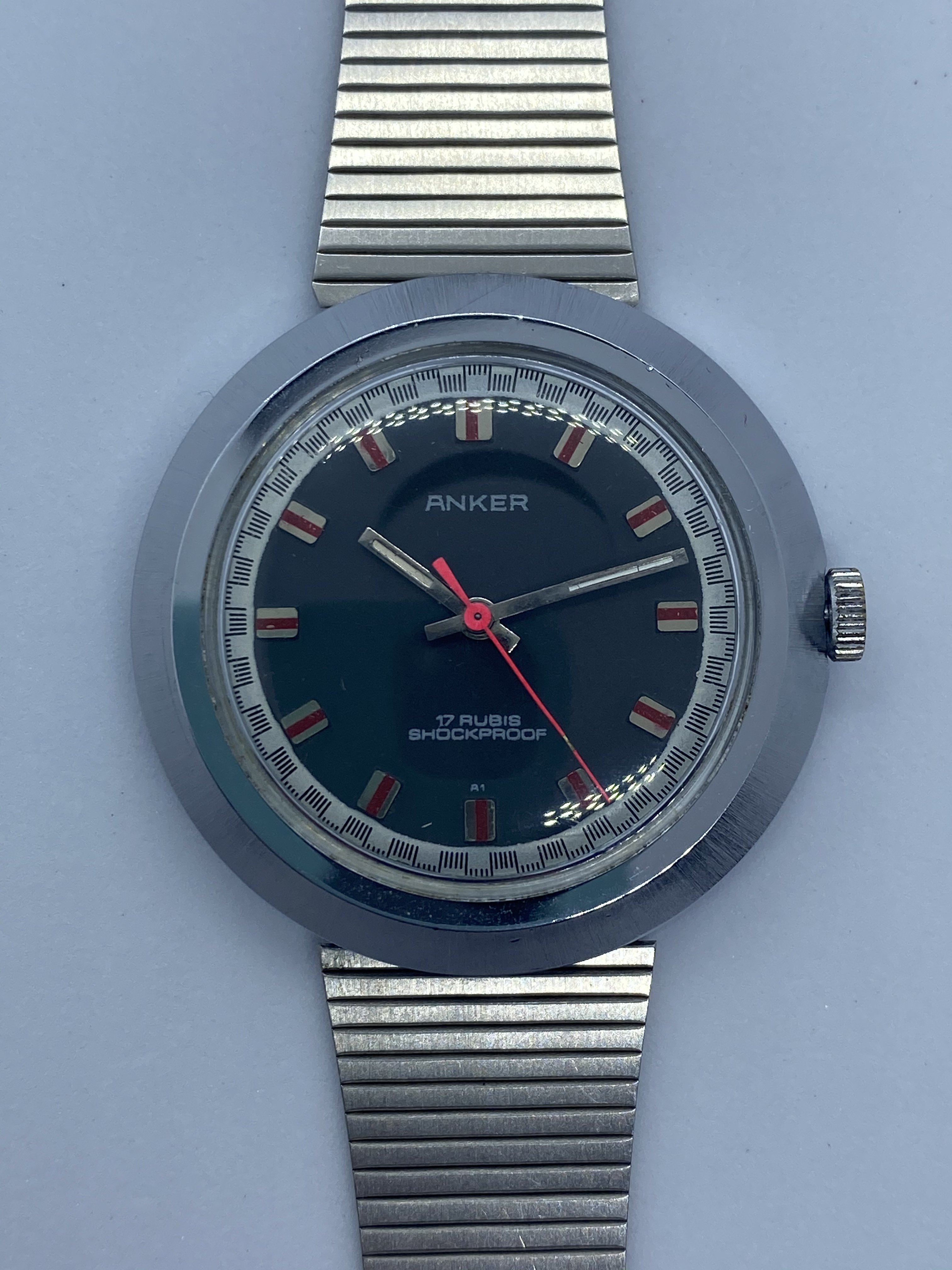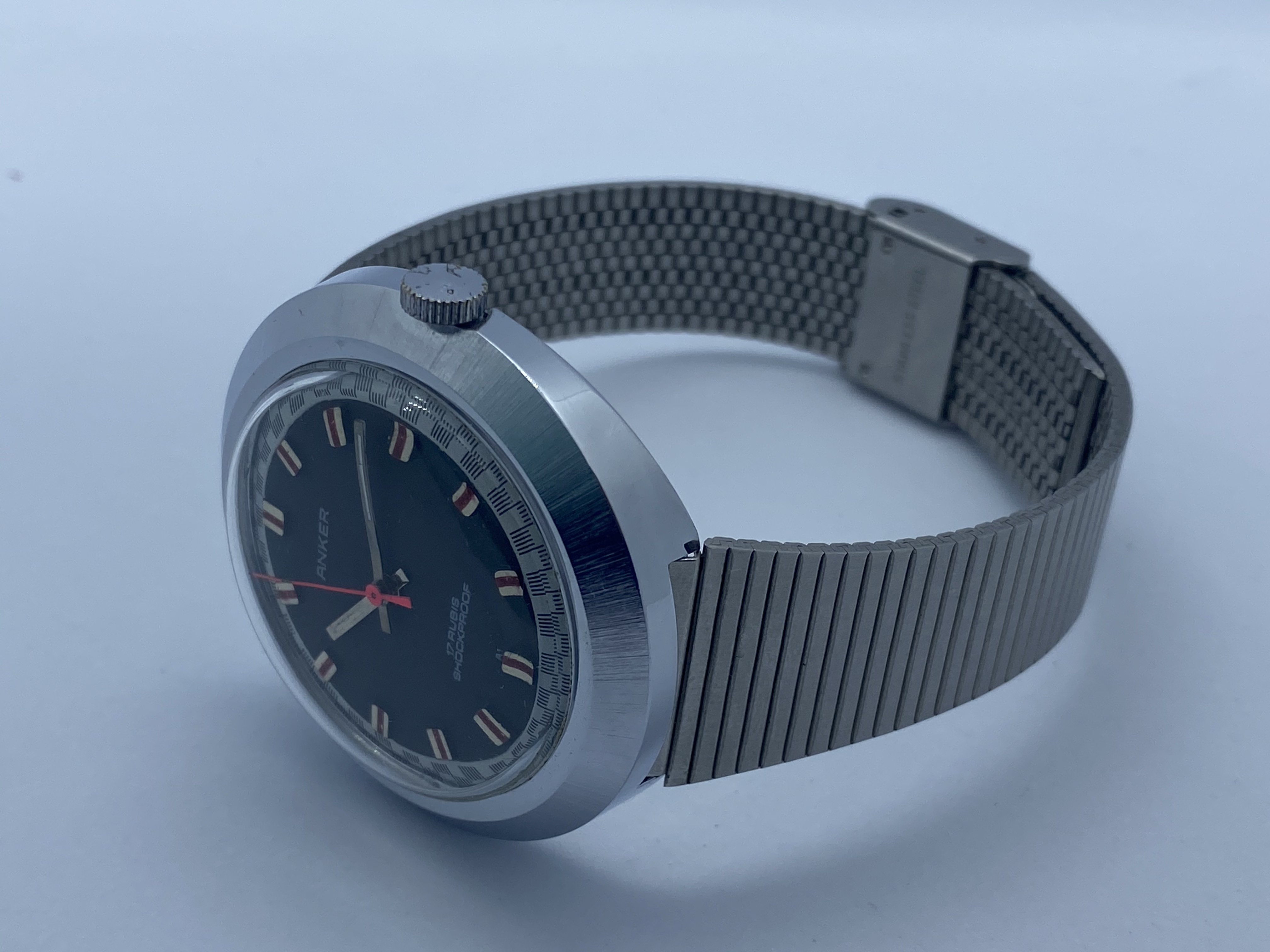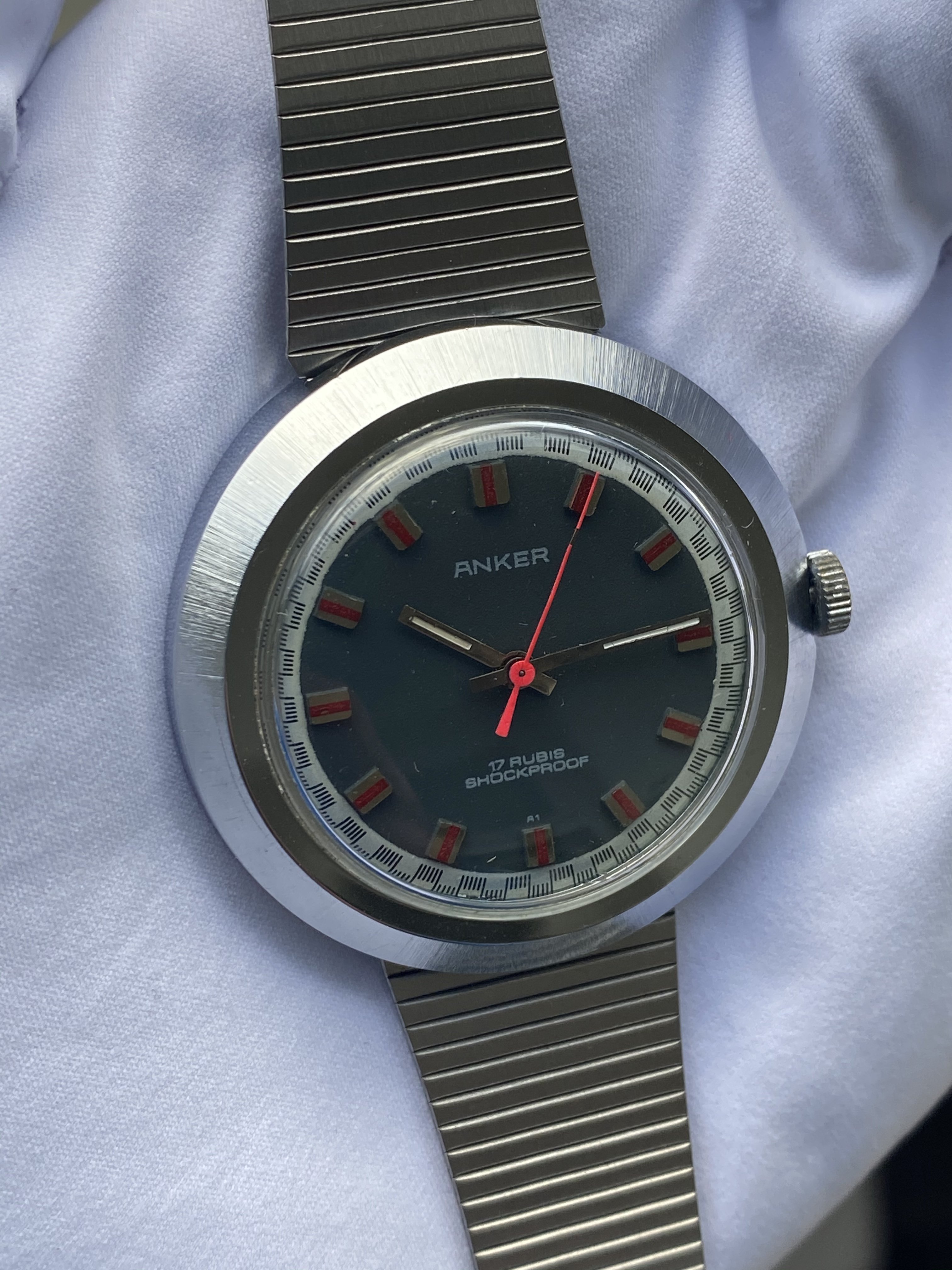 It's made by Anker, a small German company that ceased to exist ages ago. The movement is a manual, 17 rubis, and most importantly: It's 70s as f... ...Farrah Fawcett in Charlie's Angels. I mean, look at this dial: