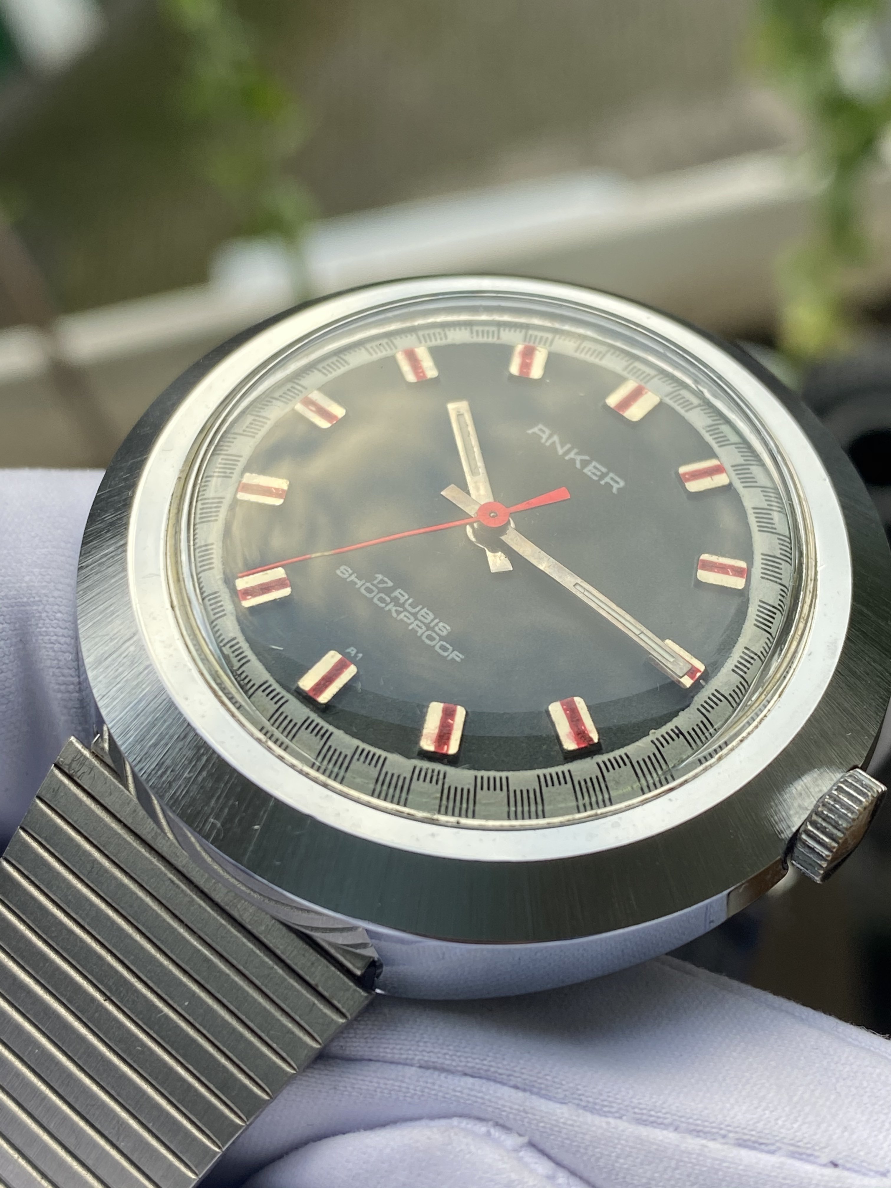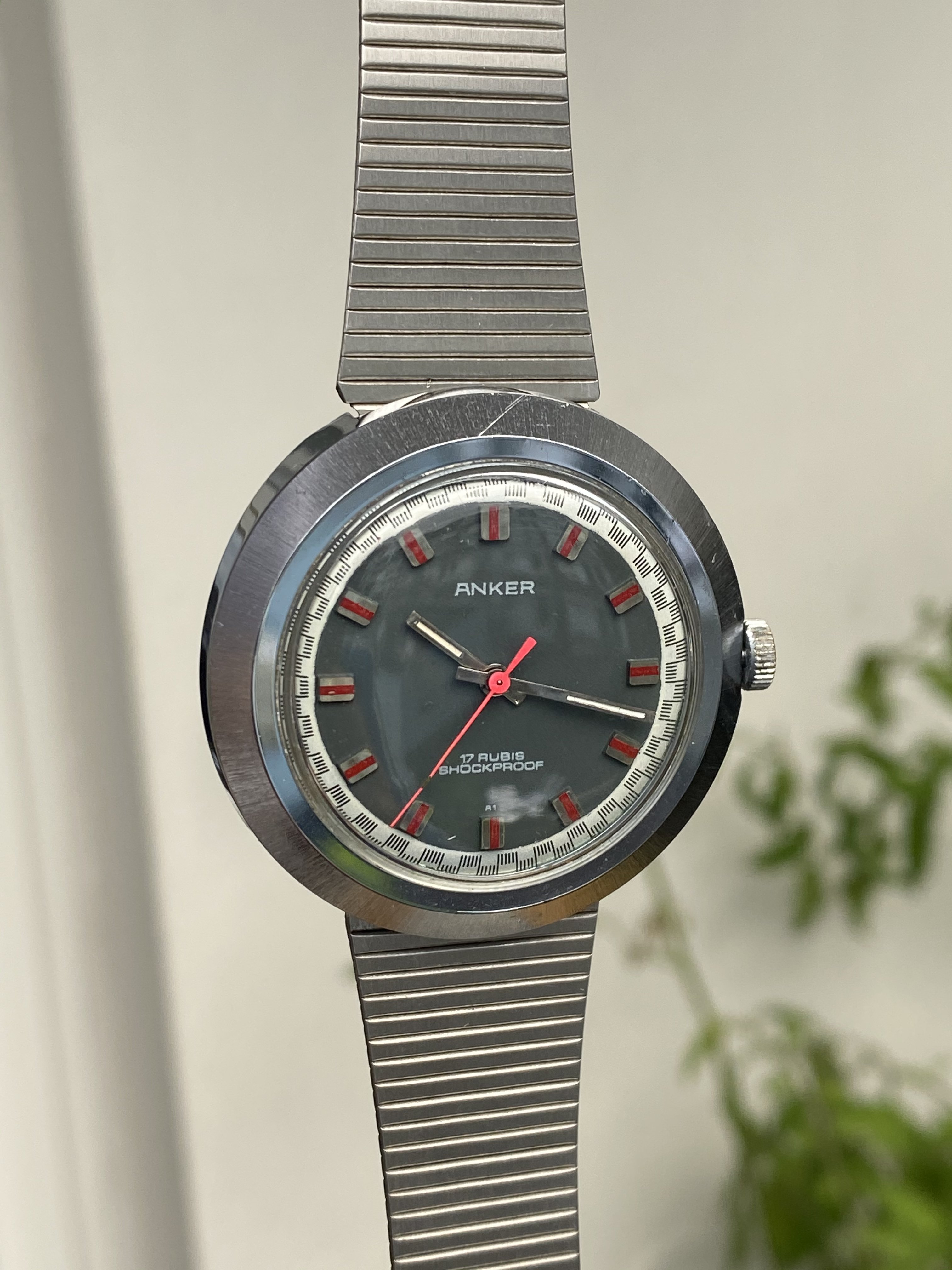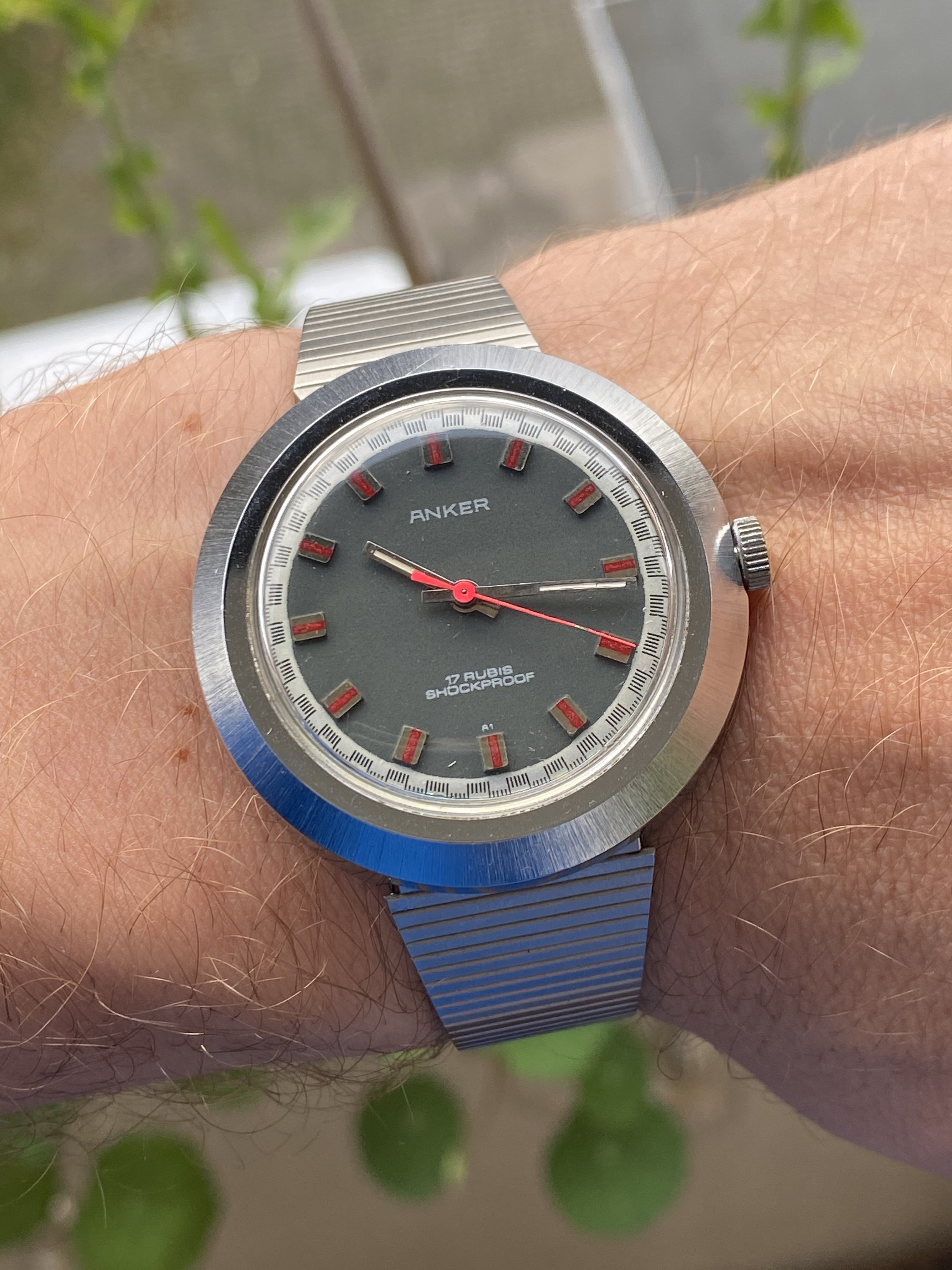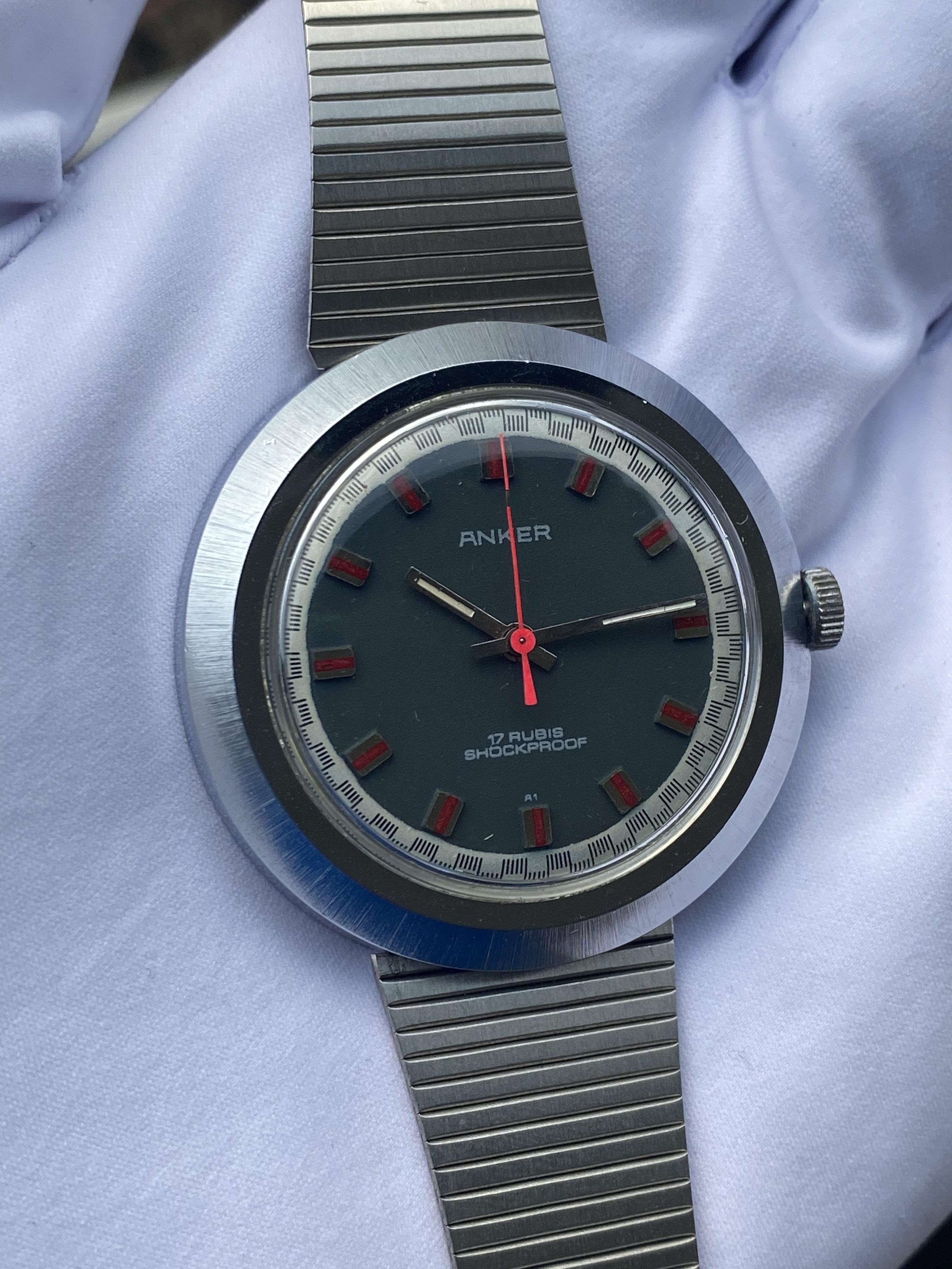 It's made by Anker, a small German company that ceased to exist ages ago. The movement is a manual, 17 rubis, and most importantly: It's 70s as f... ...Farrah Fawcett in Charlie's Angels. I mean, look at this dial: