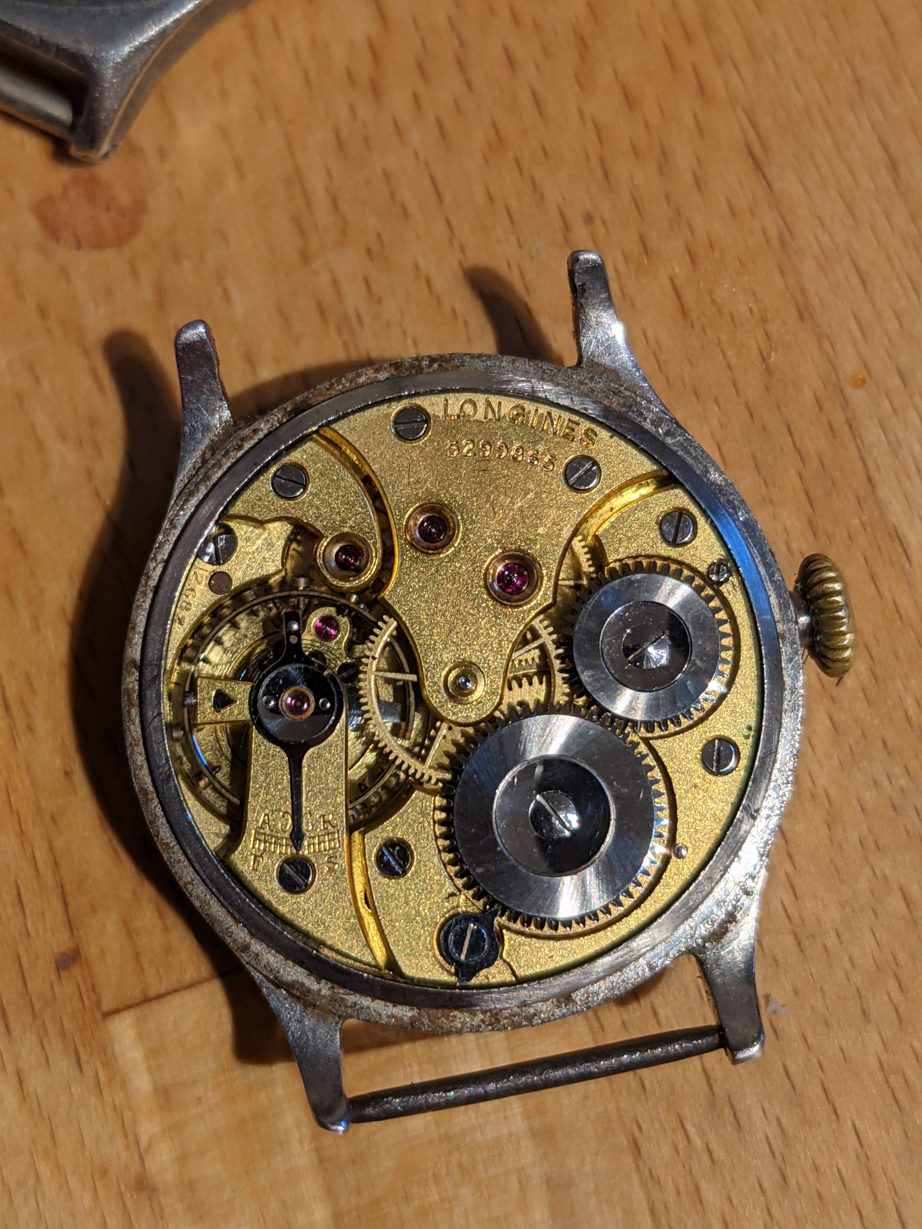 ·According to Patrick Linder's book, the 12.91 was introduced in 1906. The version shown below differs from my example as it features a separate, fourth wheel cock. Mine has a central bridge like the one on the 17.25, shown below. The 12.91 is not commonly found in watches from the mid-1930s, or later, but I think that my piece just pre-dates the introduction of the central-seconds version of the 12.68Z (i.e. the cal. 12.68N) so it was thus employed.