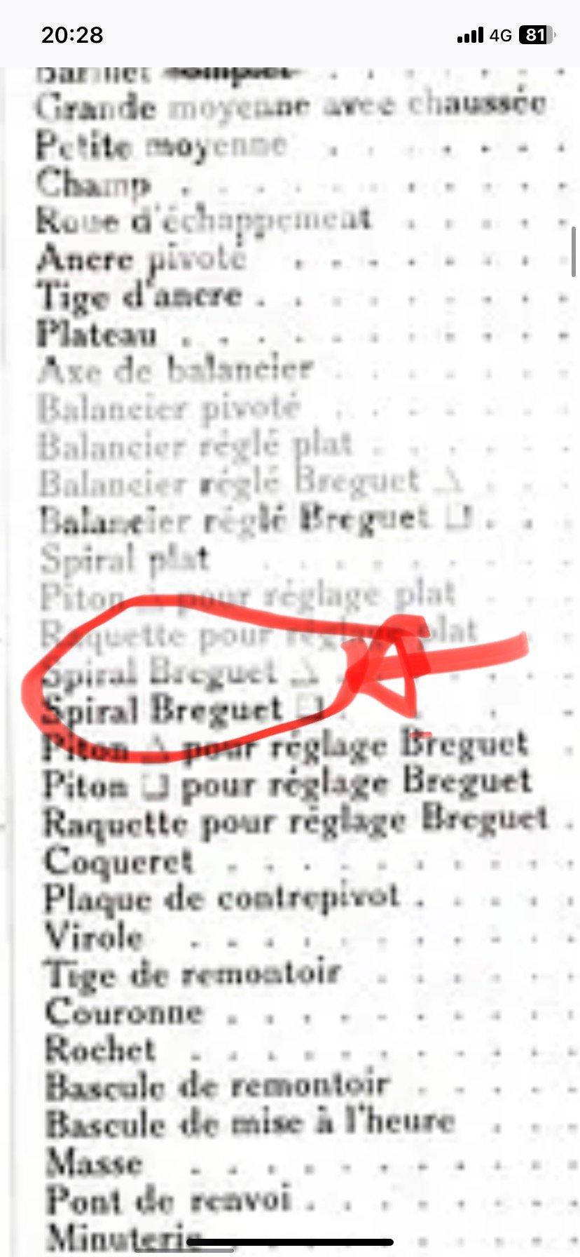 You’ll note in that O&P thread Nowhere Man linked another one, posted by a real Longines expert, Maurizio username MSX, one of the top Longines collectors IMHO- he posted a complete list of parts of the 12.68 which confirms of course that some 12.68 movements had Breguet hairsprings (« spiral » in French). (See below circled in red).