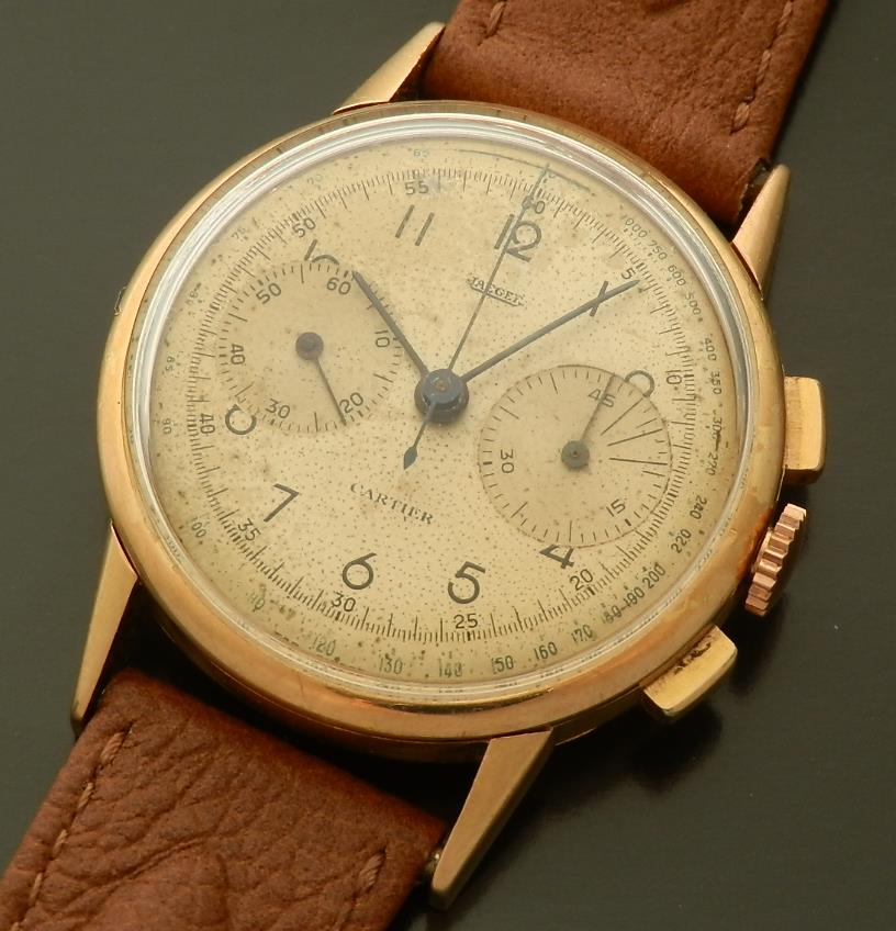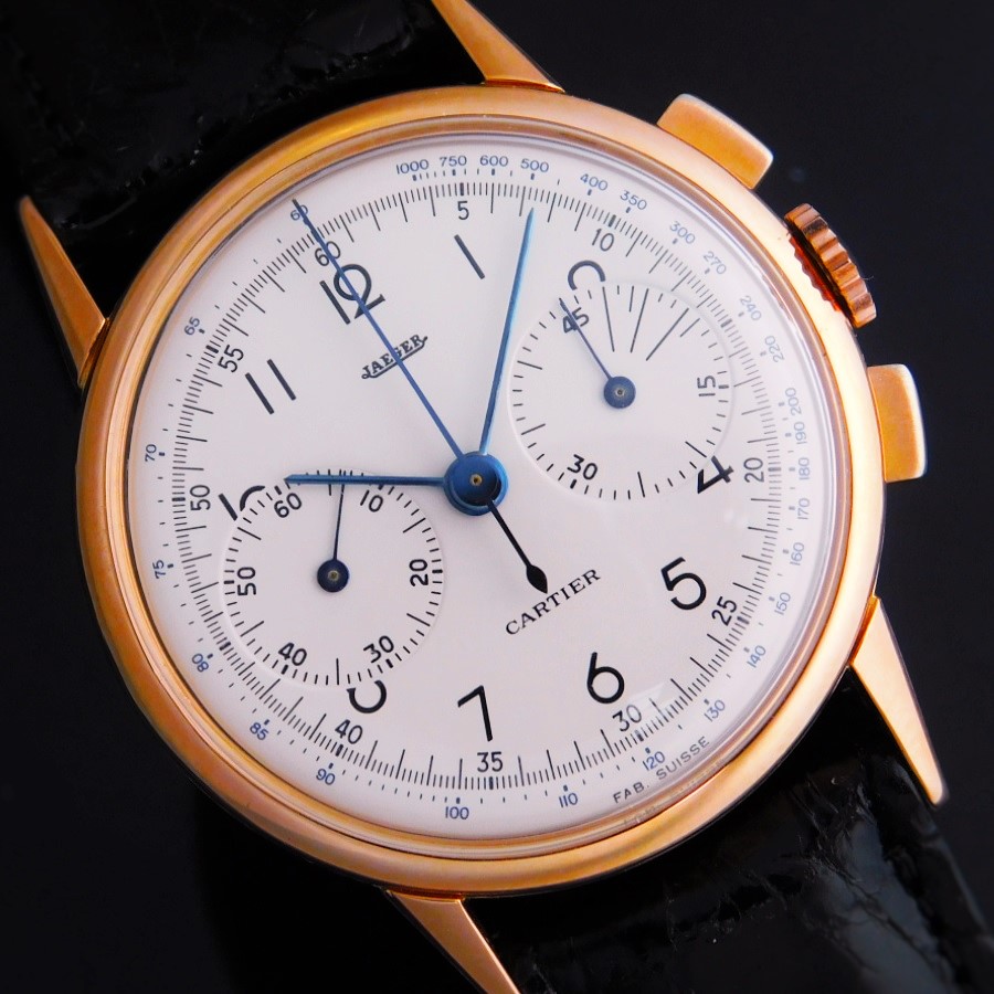 ··not the sharpest pencil in the ΩF drawerAgreed. Another one: https://mb.nawcc.org/threads/1940s-cartier-chronograph-w-lecoultre-movement.77643/ Don't have a login for NAWCC so can't download higher res images