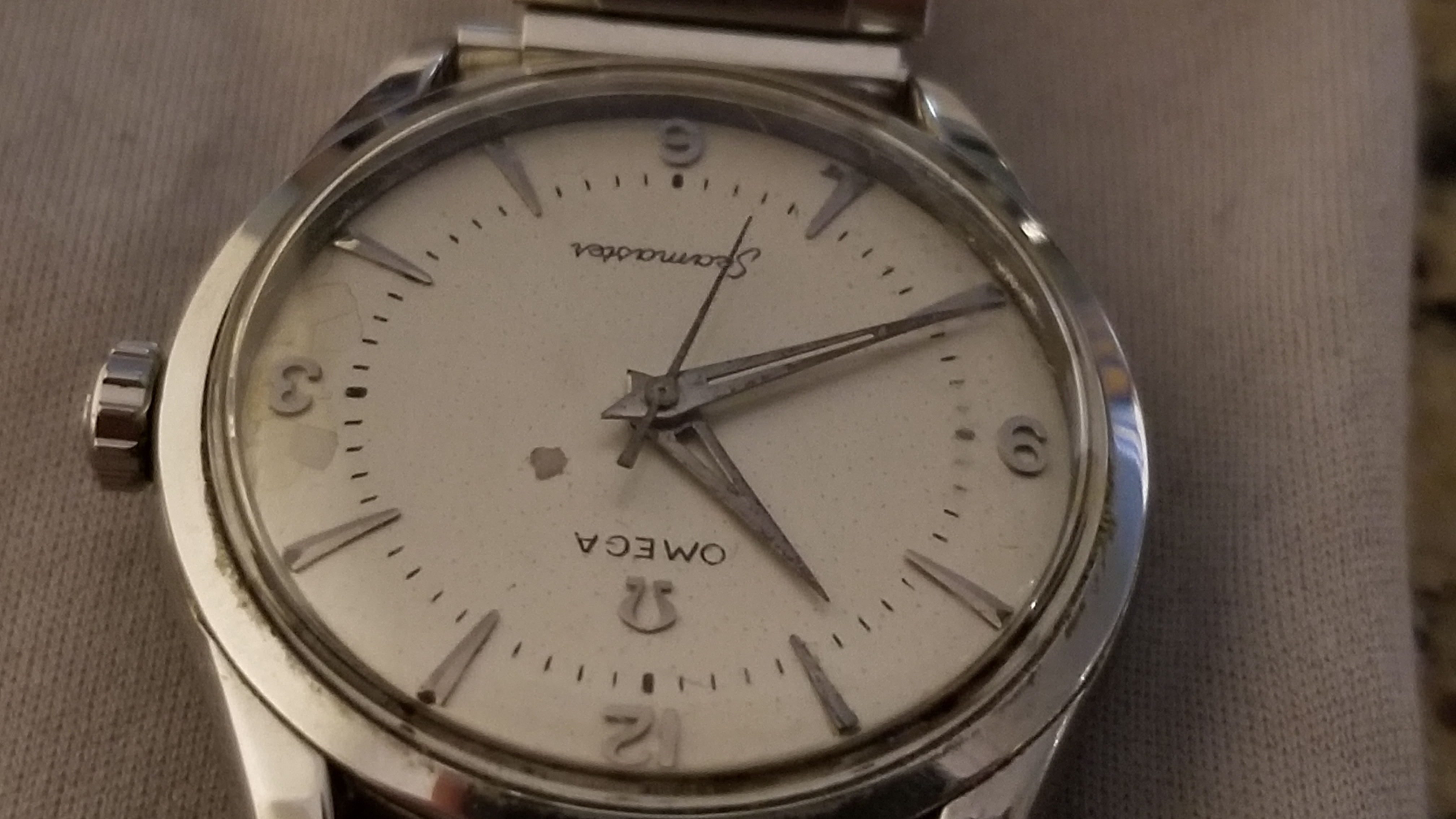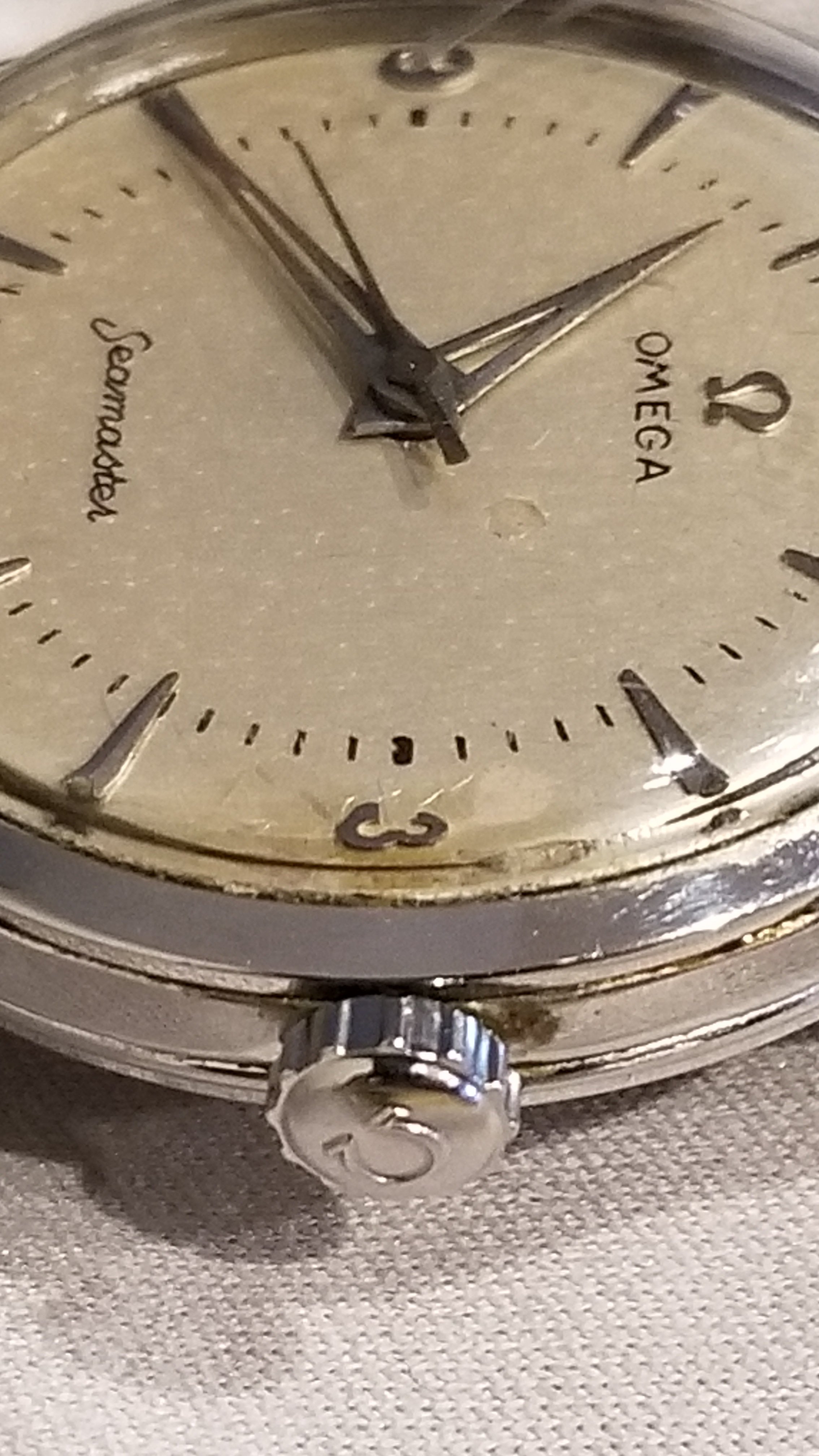 He took it to a watchmaker either in Cresskill or Englewood NJ for repair. Months later he got the watch back with the wrong crystal, the second hand broke, and a repainted dial.