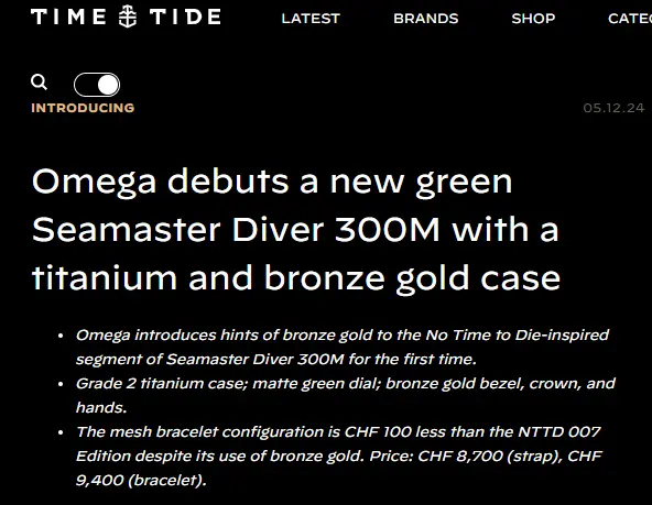 Thread 'The New Seamaster Pro 300M Diver in Titanium Bronze Gold, Green Dial & Bezel, Cal 8806 Non-Date' ·
