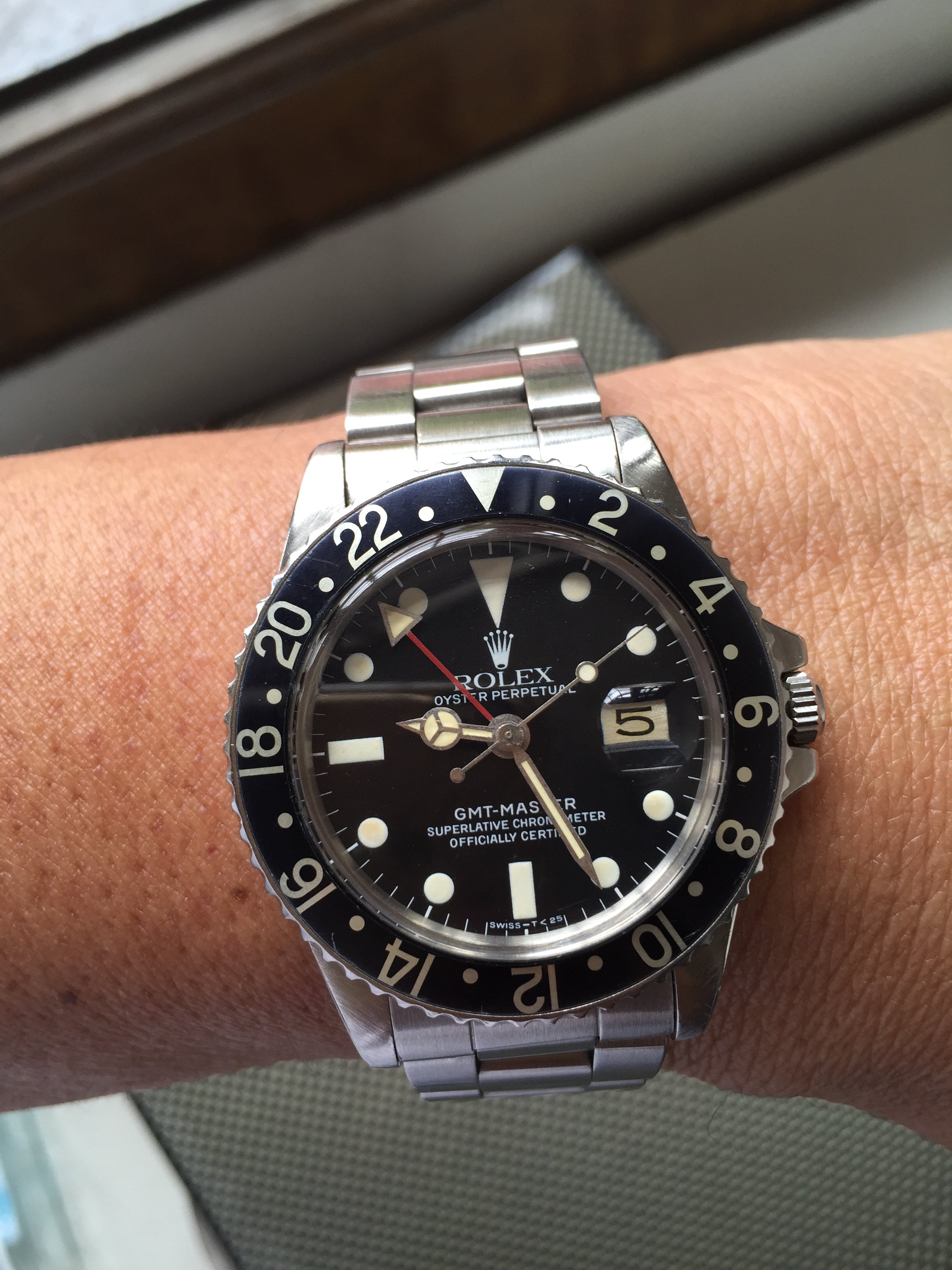 ·With some sense of normalcy coming back after the covid pandemic put a complete stop to our daily routine, I called some of my favorite watch dealers for new finds. One offered me this very clean and unmolested 1978 Rolex GMT 1675 with mk6 dial and black bezel insert. We struck a deal and the watch was delivered to my door step just a few days ago. The condition is very good from the case, dial and single clasp oyster bracelet. Serial is in the 5.6m range and i understand that the black bezel GMT came out towards the end of the 1675 production. A great addition tonmy watch collection.