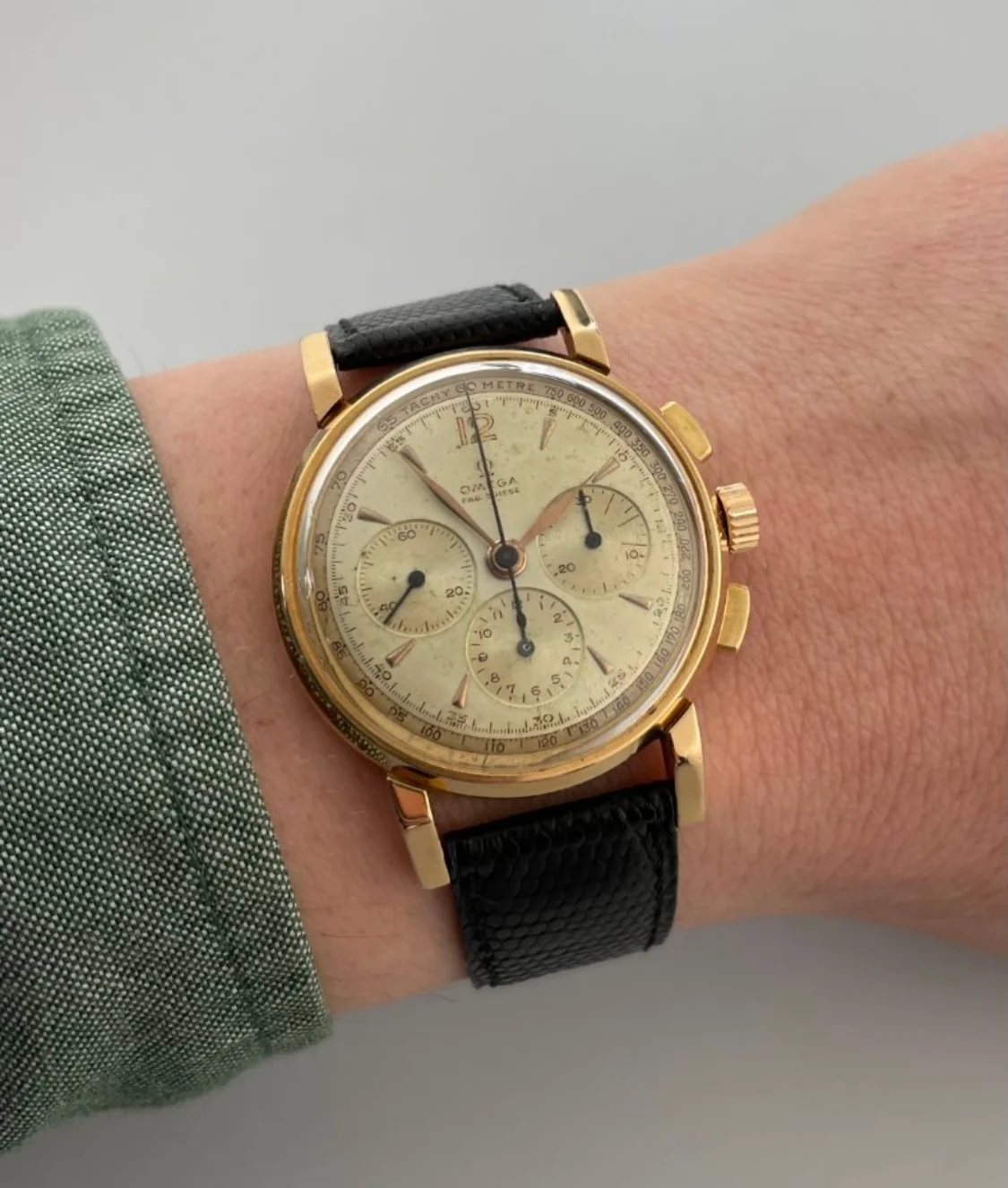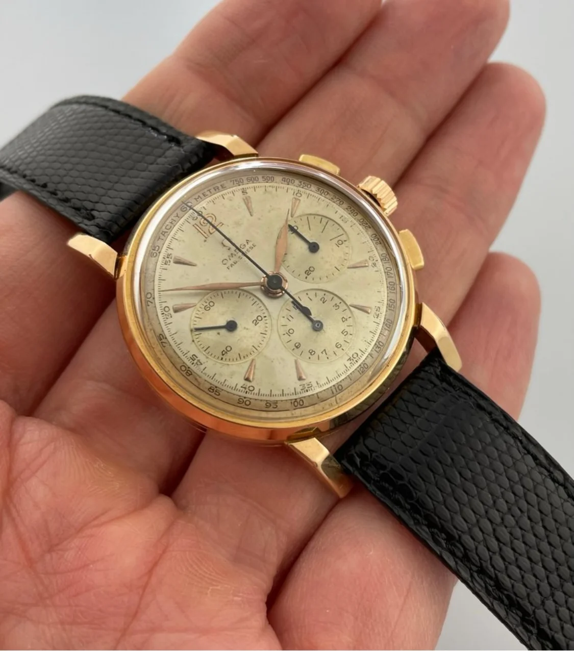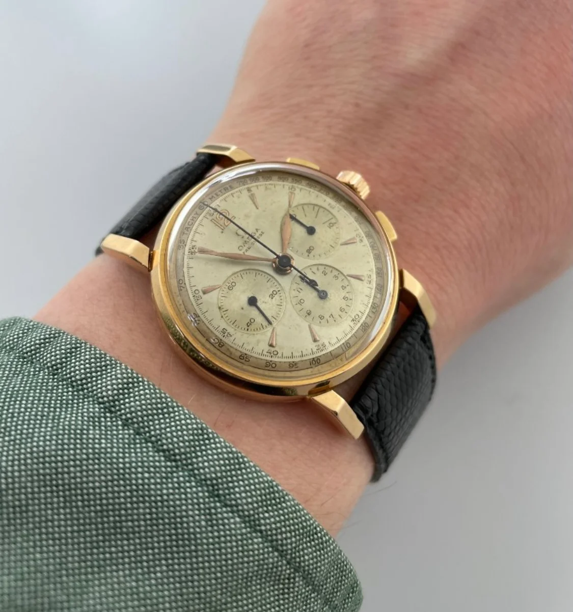 ·Hi. I'm being offered another Omega "Dress" 311 Chronograph in solid 18k. It's a French made case in 34.5mm. The dial looks honestly worn and the case has some polish. Any red flags? I have another one, but this is 18k and an earlier model with a unique dial. I know the crown may not be original. Doesn't look like a redial, but it's very faded.