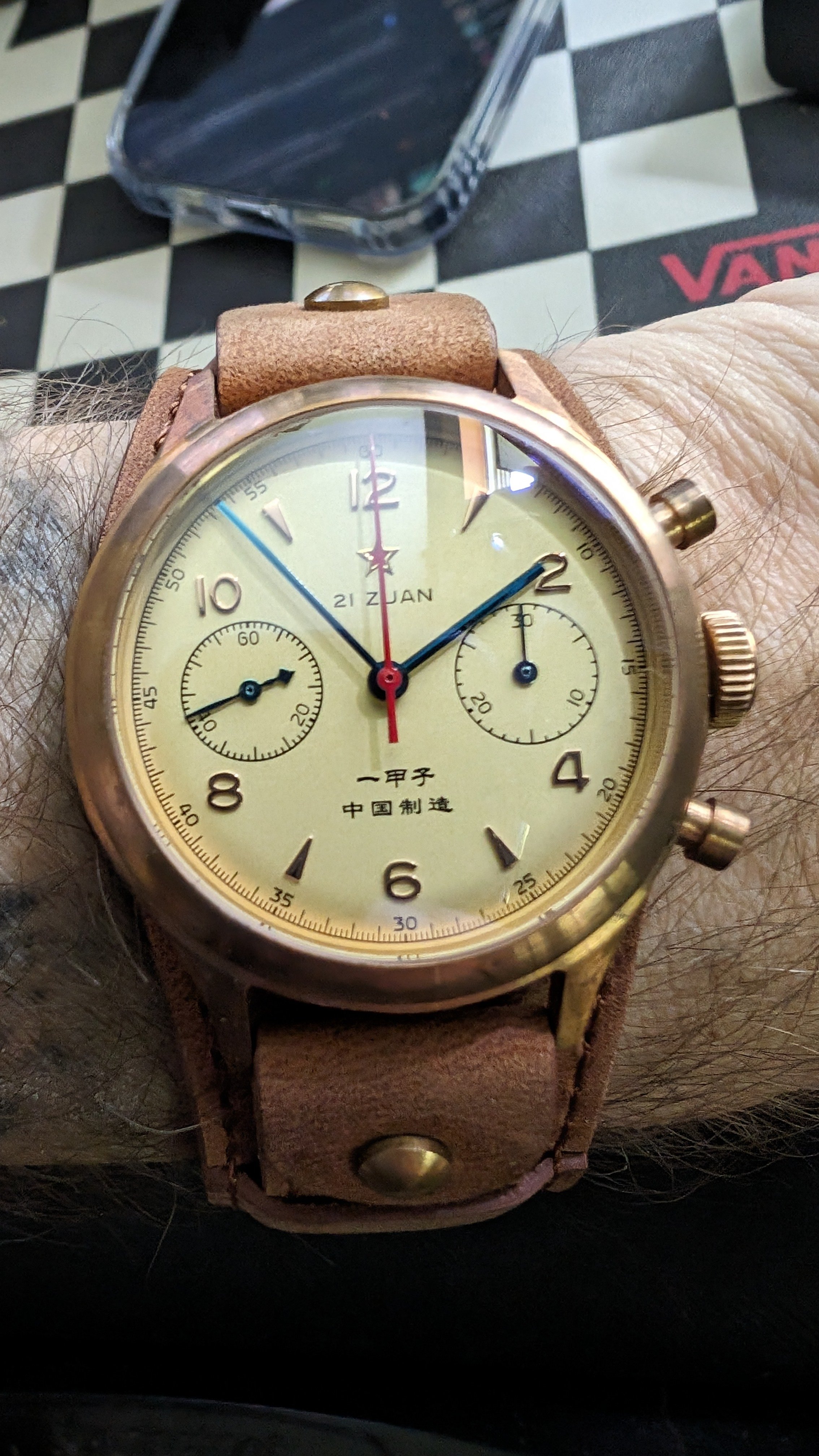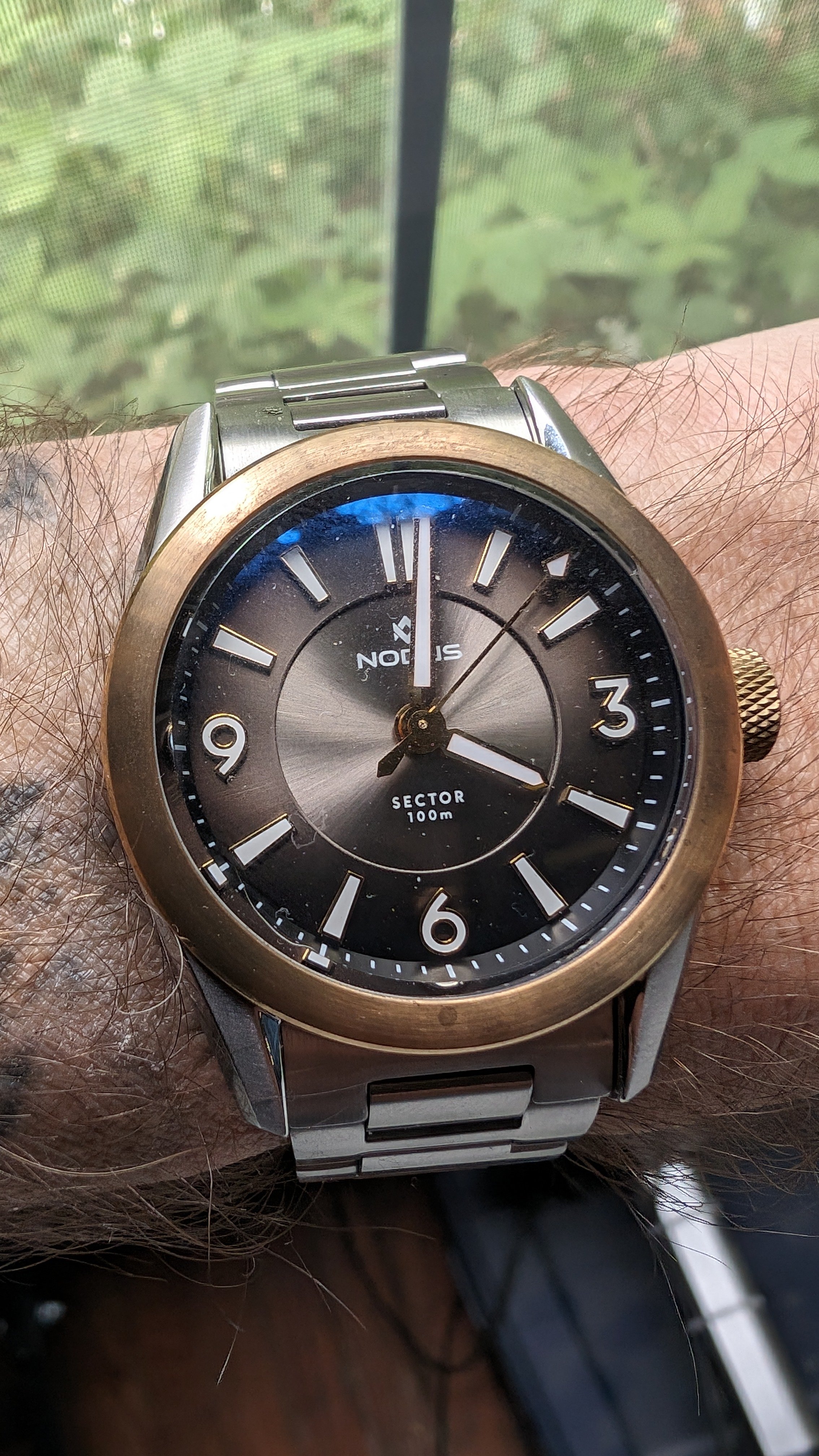 Posts 2,074 Likes 4,231 RevZMan123 路May 14, 2024 SOG53 Which one right or left? Both? 馃榾 Just the left for now ... I'm having a bronze week, so removed the seagull 1963 Chrono and threw on the Nodus Sector Sport 2 tone, which I'll probably wear as my 4pm watch all week.