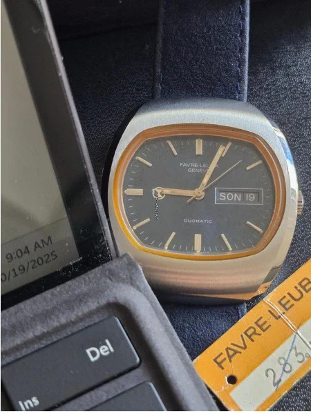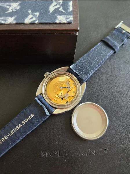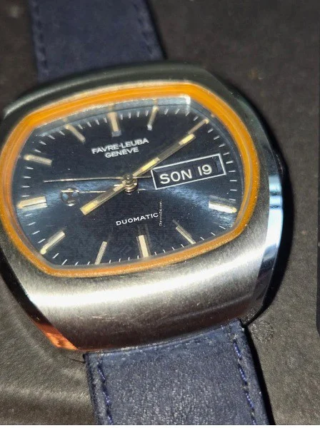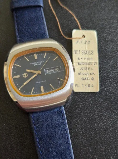 I spotted a very rare 1970 Favre Leuba for sale on Chrono 24 via a private seller based in the US, and my choice proved to be the right one, as it is a very rare Favre Leuba Duomatic with cal. 1164, featuring a beautiful blue textured dial, a back with original stickern original Favre Leuba leather strap, Favre Leuba buckle, and vintage hang tag. Needless to say, I have never seen one like it in Europe in over 35 years.